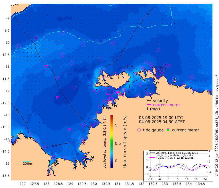 22cm/s 82T +4cm/s rms + 6cm/s 51T. Darwin_C1 52m 51cm/s 92T +4cm/s rms + 7cm/s -161T. Darwin_CW1 22m 2cm/s 103T +4cm/s rms + 8cm/s 61T. Darwin_CW2 34m 19cm/s 33T +3cm/s rms + 9cm/s 98T. Darwin_CW3 22m 20cm/s 93T +5cm/s rms + 7cm/s 88T. Darwin_C3 56m 9cm/s 72T +2cm/s rms + 9cm/s -126T. Darwin_CTbW 22m 2cm/s 30T +9cm/s rms + 2cm/s -110T. NWSLYN 196m 2cm/s -49T +1cm/s rms + 1cm/s -47T. DARBGF 30m 1cm/s 97T +7cm/s rms + 2cm/s -137T. ITFTIS 464m 4cm/s 162T +9cm/s rms + 1cm/s 74T. ITFMHB 146m 4cm/s -20T +4cm/s rms + 1cm/s -134T. ITFJBG 61m 2cm/s 9T +6cm/s rms + 4cm/s 121T. ITFFTB 108m 3cm/s -83T +4cm/s rms + 3cm/s 80T. NRSDAR 19m 74cm Carronade Island 76cm Guy Point 74cm Napier Broome Bay 77cm Lesueur Island 59cm Reveley Island 28cm Rocky Island 72cm Cape Domett 81cm Lacrosse Island 75cm Adolphus Island 92cm Pender Point 106cm Wyndham 31cm The Boxers 18cm Unnamed Shoal 21cm Loxton Shoal 68cm Pelican Island 27cm Calder Shoal 17cm Evans Shoal 98cm Quoin Island 47cm Port Keats 52cm Jones Point 166cm Catfish Island 43cm Cape Scott Offshore 42cm Cape Ford 36cm Anson Bay 8cm Goodrich Bank 34cm Peron Island North 31cm Point Jenny 28cm Native Point 37cm Fish Reef 31cm Tapa Bay 30cm Point Fawcett (Offshore) 28cm Burge Point 16cm Munkunuwa 34cm Beagle A 13cm Parsons Bank 34cm Fenton Patches 7cm Lynedoch Bank 24cm Hancox Shoal Area 29cm Nightcliff 27cm Darwin 29cm Charles Point Patches 40cm Glyde Point 57cm Chambers Bay 63cm Point Stuart 44cm Cape Hotham 49cm Christine Reef 71cm West Alligator Head 82cm East Field Island 46cm Two Hills Bay 33cm Newby Shoal 43cm Camp Point 26cm Medina Inlet South 7cm South Barlow Point 16cm St. Asaph Bay 7cm Cape Van Dieman 2cm Snake Bay 14cm Cache Point 35cm Echo Shoal 13cm Point Jahleel (Off) 16cm Cape Don 3cm Port Essington 3cm Smith Point - West -1cm NW Peacock Island 6cm North Of Jones Shoal 1cm Peacock Island -10cm Point David -4cm D'urville Point -3cm Money Shoal -10cm Copeland Island -9cm Cape Cockburn -6cm One Tree Point -5cm Hogmany Shoal -4cm New Year Island - West -9cm Grant Island -5cm Aurari Bay -8cm Cuthbert Point -9cm North Goulburn Island -3cm Paxie Shoal -11cm Entrance Island -9cm Yabooma Island