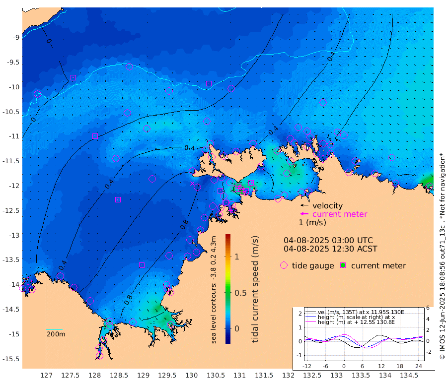 48cm/s 77T +4cm/s rms + 6cm/s 51T. Darwin_C1 52m 7cm/s 74T +4cm/s rms + 7cm/s -161T. Darwin_CW1 22m 25cm/s 75T +4cm/s rms + 8cm/s 61T. Darwin_CW2 34m 21cm/s 46T +3cm/s rms + 9cm/s 98T. Darwin_CW3 22m 36cm/s 90T +5cm/s rms + 7cm/s 88T. Darwin_C3 56m 38cm/s 64T +2cm/s rms + 9cm/s -126T. Darwin_CTbW 22m 2cm/s 41T +9cm/s rms + 2cm/s -110T. NWSLYN 196m 4cm/s 64T +1cm/s rms + 1cm/s -47T. DARBGF 30m 5cm/s -30T +7cm/s rms + 2cm/s -137T. ITFTIS 464m 8cm/s -8T +9cm/s rms + 1cm/s 74T. ITFMHB 146m 4cm/s -59T +4cm/s rms + 1cm/s -134T. ITFJBG 61m 7cm/s -48T +6cm/s rms + 4cm/s 121T. ITFFTB 108m 3cm/s 26T +4cm/s rms + 3cm/s 80T. NRSDAR 19m 1cm Carronade Island -1cm Guy Point 8cm Napier Broome Bay 32cm Lesueur Island 47cm Reveley Island 18cm Rocky Island 65cm Cape Domett 60cm Lacrosse Island 70cm Adolphus Island 53cm Pender Point 58cm Wyndham 21cm The Boxers 43cm Unnamed Shoal 1cm Loxton Shoal 66cm Pelican Island 14cm Calder Shoal 2cm Evans Shoal 86cm Quoin Island 66cm Port Keats 57cm Jones Point 81cm Catfish Island 53cm Cape Scott Offshore -7cm Cape Ford 63cm Anson Bay 12cm Goodrich Bank 53cm Peron Island North 47cm Point Jenny 47cm Native Point 47cm Fish Reef 54cm Tapa Bay 26cm Point Fawcett (Offshore) 58cm Burge Point 44cm Munkunuwa 38cm Beagle A 66cm Parsons Bank 54cm Fenton Patches 15cm Lynedoch Bank 66cm Hancox Shoal Area 71cm Nightcliff 71cm Darwin 61cm Charles Point Patches 58cm Glyde Point 54cm Chambers Bay 52cm Point Stuart 55cm Cape Hotham 51cm Christine Reef 54cm West Alligator Head 50cm East Field Island 53cm Two Hills Bay 42cm Newby Shoal 49cm Camp Point 55cm Medina Inlet South 30cm South Barlow Point 16cm St. Asaph Bay 13cm Cape Van Dieman 24cm Snake Bay 16cm Cache Point -8cm Echo Shoal 23cm Point Jahleel (Off) 42cm Cape Don 31cm Port Essington 32cm Smith Point - West 35cm NW Peacock Island 29cm North Of Jones Shoal 12cm Peacock Island 54cm Point David 39cm D'urville Point 37cm Money Shoal 53cm Copeland Island 70cm Cape Cockburn 52cm One Tree Point 62cm Hogmany Shoal 56cm New Year Island - West 57cm Grant Island 65cm Aurari Bay 71cm Cuthbert Point 64cm North Goulburn Island 75cm Paxie Shoal 82cm Entrance Island 91cm Yabooma Island