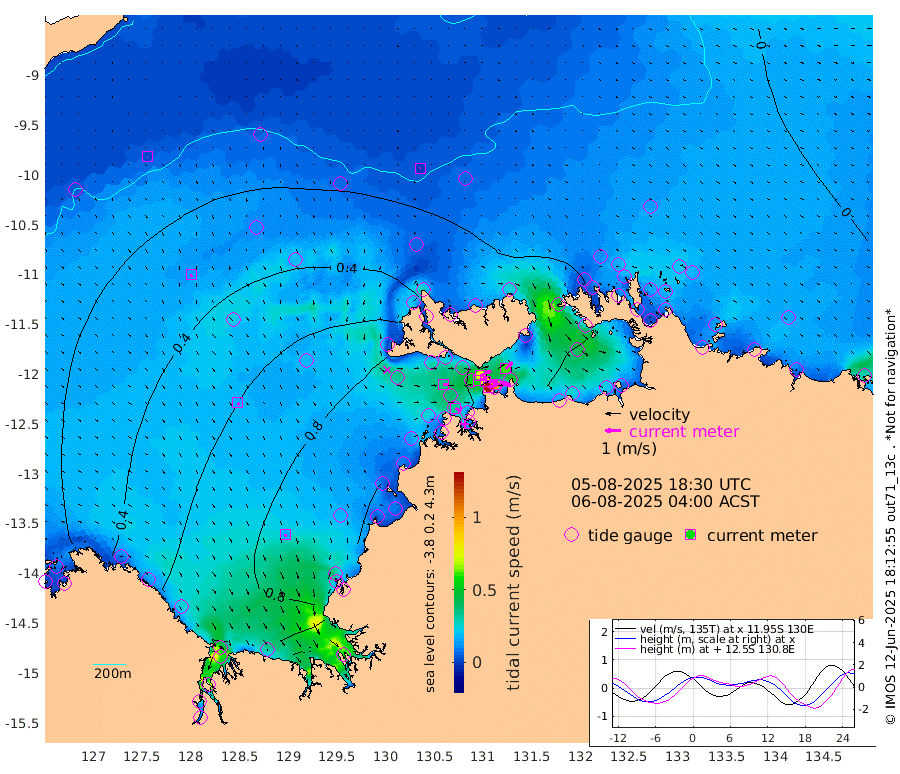 126cm/s 77T +4cm/s rms + 6cm/s 51T. Darwin_C1 52m 100cm/s 91T +4cm/s rms + 7cm/s -161T. Darwin_CW1 22m 56cm/s 74T +4cm/s rms + 8cm/s 61T. Darwin_CW2 34m 60cm/s 47T +3cm/s rms + 9cm/s 98T. Darwin_CW3 22m 78cm/s 89T +5cm/s rms + 7cm/s 88T. Darwin_C3 56m 75cm/s 66T +2cm/s rms + 9cm/s -126T. Darwin_CTbW 22m 1cm/s 73T +9cm/s rms + 2cm/s -110T. NWSLYN 196m 34cm/s 87T +1cm/s rms + 1cm/s -47T. DARBGF 30m 2cm/s 141T +7cm/s rms + 2cm/s -137T. ITFTIS 464m 14cm/s 175T +9cm/s rms + 1cm/s 74T. ITFMHB 146m 17cm/s 163T +4cm/s rms + 1cm/s -134T. ITFJBG 61m 17cm/s 142T +6cm/s rms + 4cm/s 121T. ITFFTB 108m 33cm/s 115T +4cm/s rms + 3cm/s 80T. NRSDAR 19m 23cm Carronade Island 25cm Guy Point 24cm Napier Broome Bay 58cm Lesueur Island 79cm Reveley Island 55cm Rocky Island 102cm Cape Domett 104cm Lacrosse Island 93cm Adolphus Island 52cm Pender Point 45cm Wyndham 48cm The Boxers 37cm Unnamed Shoal 15cm Loxton Shoal 116cm Pelican Island 42cm Calder Shoal 19cm Evans Shoal 102cm Quoin Island 120cm Port Keats 109cm Jones Point 134cm Catfish Island 114cm Cape Scott Offshore 99cm Cape Ford 123cm Anson Bay 22cm Goodrich Bank 103cm Peron Island North 118cm Point Jenny 115cm Native Point 115cm Fish Reef 122cm Tapa Bay 80cm Point Fawcett (Offshore) 115cm Burge Point 105cm Munkunuwa 109cm Beagle A 101cm Parsons Bank 122cm Fenton Patches 12cm Lynedoch Bank 109cm Hancox Shoal Area 128cm Nightcliff 114cm Darwin 114cm Charles Point Patches 82cm Glyde Point 62cm Chambers Bay 46cm Point Stuart 62cm Cape Hotham 61cm Christine Reef 50cm West Alligator Head 41cm East Field Island 48cm Two Hills Bay 83cm Newby Shoal 50cm Camp Point 111cm Medina Inlet South 59cm South Barlow Point 54cm St. Asaph Bay 24cm Cape Van Dieman 21cm Snake Bay 28cm Cache Point 14cm Echo Shoal 29cm Point Jahleel (Off) 39cm Cape Don 21cm Port Essington 27cm Smith Point - West 18cm NW Peacock Island 20cm North Of Jones Shoal 6cm Peacock Island 4cm Point David 20cm D'urville Point 9cm Money Shoal 5cm Copeland Island 8cm Cape Cockburn 9cm One Tree Point 4cm Hogmany Shoal 10cm New Year Island - West 7cm Grant Island 11cm Aurari Bay 8cm Cuthbert Point 6cm North Goulburn Island 6cm Paxie Shoal -1cm Entrance Island -8cm Yabooma Island