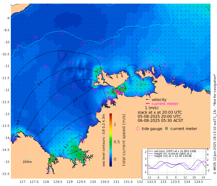 103cm/s 79T +4cm/s rms + 6cm/s 51T. Darwin_C1 52m 108cm/s 92T +4cm/s rms + 7cm/s -161T. Darwin_CW1 22m 54cm/s 72T +4cm/s rms + 8cm/s 61T. Darwin_CW2 34m 60cm/s 44T +3cm/s rms + 9cm/s 98T. Darwin_CW3 22m 88cm/s 90T +5cm/s rms + 7cm/s 88T. Darwin_C3 56m 55cm/s 66T +2cm/s rms + 9cm/s -126T. Darwin_CTbW 22m 3cm/s 33T +9cm/s rms + 2cm/s -110T. NWSLYN 196m 18cm/s 77T +1cm/s rms + 1cm/s -47T. DARBGF 30m 2cm/s 9T +7cm/s rms + 2cm/s -137T. ITFTIS 464m 5cm/s 178T +9cm/s rms + 1cm/s 74T. ITFMHB 146m 6cm/s -173T +4cm/s rms + 1cm/s -134T. ITFJBG 61m 2cm/s 147T +6cm/s rms + 4cm/s 121T. ITFFTB 108m 11cm/s 112T +4cm/s rms + 3cm/s 80T. NRSDAR 19m 46cm Carronade Island 48cm Guy Point 48cm Napier Broome Bay 92cm Lesueur Island 113cm Reveley Island 69cm Rocky Island 156cm Cape Domett 153cm Lacrosse Island 158cm Adolphus Island 136cm Pender Point 134cm Wyndham 54cm The Boxers 41cm Unnamed Shoal 20cm Loxton Shoal 162cm Pelican Island 44cm Calder Shoal 19cm Evans Shoal 185cm Quoin Island 153cm Port Keats 146cm Jones Point 208cm Catfish Island 124cm Cape Scott Offshore 129cm Cape Ford 129cm Anson Bay 21cm Goodrich Bank 112cm Peron Island North 116cm Point Jenny 114cm Native Point 122cm Fish Reef 126cm Tapa Bay 77cm Point Fawcett (Offshore) 127cm Burge Point 106cm Munkunuwa 110cm Beagle A 108cm Parsons Bank 131cm Fenton Patches 14cm Lynedoch Bank 117cm Hancox Shoal Area 131cm Nightcliff 133cm Darwin 130cm Charles Point Patches 106cm Glyde Point 96cm Chambers Bay 88cm Point Stuart 90cm Cape Hotham 87cm Christine Reef 96cm West Alligator Head 97cm East Field Island 76cm Two Hills Bay 87cm Newby Shoal 82cm Camp Point 119cm Medina Inlet South 53cm South Barlow Point 49cm St. Asaph Bay 20cm Cape Van Dieman 18cm Snake Bay 26cm Cache Point 22cm Echo Shoal 30cm Point Jahleel (Off) 46cm Cape Don 22cm Port Essington 22cm Smith Point - West 15cm NW Peacock Island 18cm North Of Jones Shoal 5cm Peacock Island 5cm Point David 15cm D'urville Point 11cm Money Shoal 5cm Copeland Island 10cm Cape Cockburn 11cm One Tree Point 10cm Hogmany Shoal 13cm New Year Island - West 8cm Grant Island 14cm Aurari Bay 14cm Cuthbert Point 11cm North Goulburn Island 19cm Paxie Shoal 12cm Entrance Island 9cm Yabooma Island
