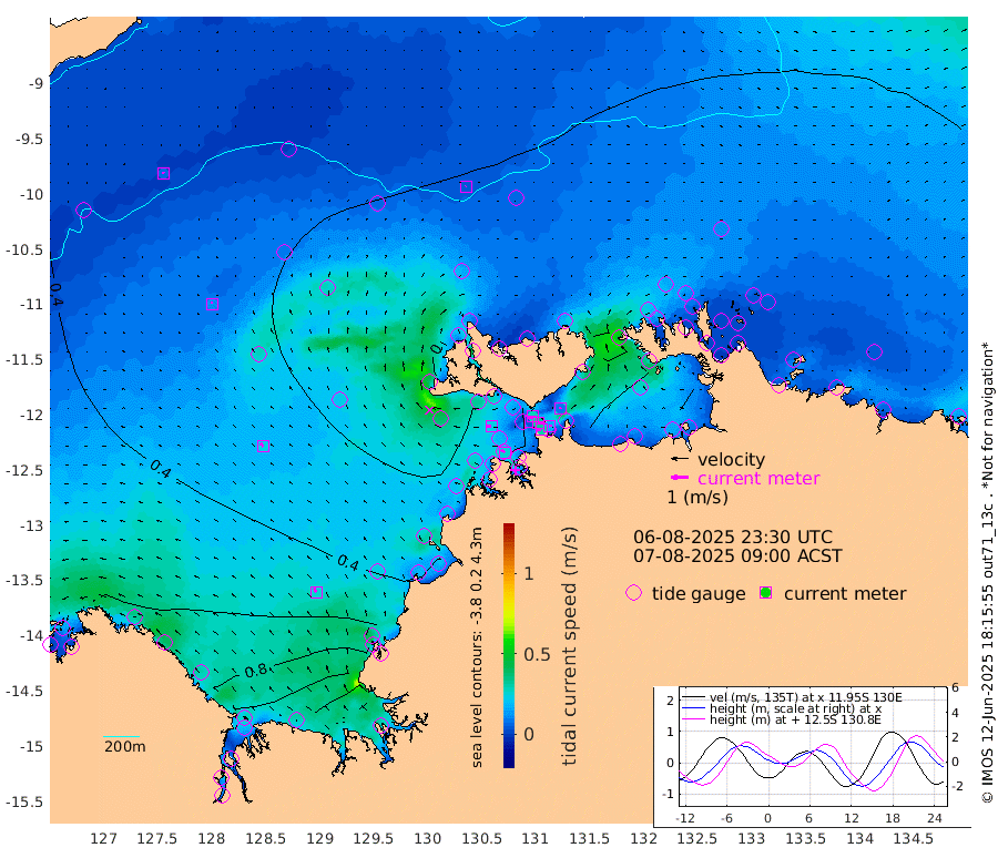 30cm/s -104T +4cm/s rms + 6cm/s 51T. Darwin_C1 52m 17cm/s 83T +4cm/s rms + 7cm/s -161T. Darwin_CW1 22m 4cm/s -170T +4cm/s rms + 8cm/s 61T. Darwin_CW2 34m 10cm/s -9T +3cm/s rms + 9cm/s 98T. Darwin_CW3 22m 34cm/s 93T +5cm/s rms + 7cm/s 88T. Darwin_C3 56m 28cm/s -117T +2cm/s rms + 9cm/s -126T. Darwin_CTbW 22m 4cm/s 47T +9cm/s rms + 2cm/s -110T. NWSLYN 196m 24cm/s -81T +1cm/s rms + 1cm/s -47T. DARBGF 30m 6cm/s -13T +7cm/s rms + 2cm/s -137T. ITFTIS 464m 12cm/s -4T +9cm/s rms + 1cm/s 74T. ITFMHB 146m 26cm/s -30T +4cm/s rms + 1cm/s -134T. ITFJBG 61m 24cm/s -39T +6cm/s rms + 4cm/s 121T. ITFFTB 108m 26cm/s -53T +4cm/s rms + 3cm/s 80T. NRSDAR 19m 84cm Carronade Island 89cm Guy Point 90cm Napier Broome Bay 98cm Lesueur Island 91cm Reveley Island 64cm Rocky Island 132cm Cape Domett 119cm Lacrosse Island 158cm Adolphus Island 195cm Pender Point 206cm Wyndham 44cm The Boxers 22cm Unnamed Shoal 45cm Loxton Shoal 114cm Pelican Island 36cm Calder Shoal 30cm Evans Shoal 188cm Quoin Island 83cm Port Keats 82cm Jones Point 173cm Catfish Island 42cm Cape Scott Offshore 72cm Cape Ford 33cm Anson Bay 21cm Goodrich Bank 37cm Peron Island North 23cm Point Jenny 23cm Native Point 32cm Fish Reef 31cm Tapa Bay 20cm Point Fawcett (Offshore) 39cm Burge Point 18cm Munkunuwa 23cm Beagle A 29cm Parsons Bank 34cm Fenton Patches 26cm Lynedoch Bank 36cm Hancox Shoal Area 27cm Nightcliff 52cm Darwin 52cm Charles Point Patches 60cm Glyde Point 81cm Chambers Bay 86cm Point Stuart 61cm Cape Hotham 69cm Christine Reef 95cm West Alligator Head 112cm East Field Island 65cm Two Hills Bay 40cm Newby Shoal 70cm Camp Point 35cm Medina Inlet South 13cm South Barlow Point 16cm St. Asaph Bay 16cm Cape Van Dieman 17cm Snake Bay 21cm Cache Point 48cm Echo Shoal 22cm Point Jahleel (Off) 30cm Cape Don 20cm Port Essington 13cm Smith Point - West 14cm NW Peacock Island 16cm North Of Jones Shoal 4cm Peacock Island 9cm Point David 9cm D'urville Point 17cm Money Shoal 7cm Copeland Island 14cm Cape Cockburn 14cm One Tree Point 24cm Hogmany Shoal 16cm New Year Island - West 15cm Grant Island 7cm Aurari Bay 17cm Cuthbert Point 15cm North Goulburn Island 24cm Paxie Shoal 23cm Entrance Island 23cm Yabooma Island
