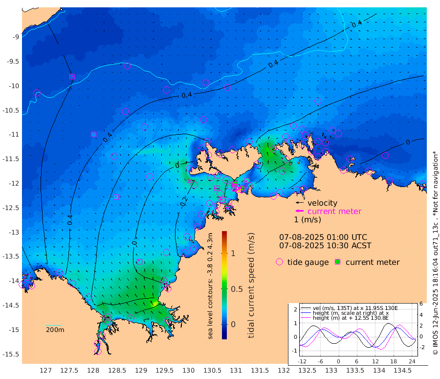 84cm/s -103T +4cm/s rms + 6cm/s 51T. Darwin_C1 52m 52cm/s -88T +4cm/s rms + 7cm/s -161T. Darwin_CW1 22m 33cm/s -111T +4cm/s rms + 8cm/s 61T. Darwin_CW2 34m 28cm/s -127T +3cm/s rms + 9cm/s 98T. Darwin_CW3 22m 20cm/s -92T +5cm/s rms + 7cm/s 88T. Darwin_C3 56m 55cm/s -115T +2cm/s rms + 9cm/s -126T. Darwin_CTbW 22m 4cm/s 110T +9cm/s rms + 2cm/s -110T. NWSLYN 196m 30cm/s -86T +1cm/s rms + 1cm/s -47T. DARBGF 30m 6cm/s 5T +7cm/s rms + 2cm/s -137T. ITFTIS 464m 12cm/s 9T +9cm/s rms + 1cm/s 74T. ITFMHB 146m 25cm/s -24T +4cm/s rms + 1cm/s -134T. ITFJBG 61m 19cm/s -28T +6cm/s rms + 4cm/s 121T. ITFFTB 108m 29cm/s -61T +4cm/s rms + 3cm/s 80T. NRSDAR 19m 97cm Carronade Island 100cm Guy Point 104cm Napier Broome Bay 73cm Lesueur Island 31cm Reveley Island 30cm Rocky Island 32cm Cape Domett 27cm Lacrosse Island 47cm Adolphus Island 99cm Pender Point 114cm Wyndham 45cm The Boxers 30cm Unnamed Shoal 67cm Loxton Shoal 7cm Pelican Island 44cm Calder Shoal 48cm Evans Shoal 47cm Quoin Island -14cm Port Keats -10cm Jones Point 40cm Catfish Island -20cm Cape Scott Offshore 19cm Cape Ford -36cm Anson Bay 38cm Goodrich Bank -17cm Peron Island North -30cm Point Jenny -28cm Native Point -29cm Fish Reef -32cm Tapa Bay 2cm Point Fawcett (Offshore) -30cm Burge Point -38cm Munkunuwa -22cm Beagle A -33cm Parsons Bank -34cm Fenton Patches 44cm Lynedoch Bank -31cm Hancox Shoal Area -47cm Nightcliff -26cm Darwin -18cm Charles Point Patches -2cm Glyde Point 19cm Chambers Bay 27cm Point Stuart 6cm Cape Hotham 16cm Christine Reef 29cm West Alligator Head 43cm East Field Island 20cm Two Hills Bay 19cm Newby Shoal 21cm Camp Point -28cm Medina Inlet South 5cm South Barlow Point 14cm St. Asaph Bay 34cm Cape Van Dieman 34cm Snake Bay 36cm Cache Point 70cm Echo Shoal 29cm Point Jahleel (Off) 18cm Cape Don 27cm Port Essington 22cm Smith Point - West 26cm NW Peacock Island 29cm North Of Jones Shoal 9cm Peacock Island 20cm Point David 21cm D'urville Point 30cm Money Shoal 17cm Copeland Island 24cm Cape Cockburn 22cm One Tree Point 37cm Hogmany Shoal 25cm New Year Island - West 25cm Grant Island 6cm Aurari Bay 13cm Cuthbert Point 17cm North Goulburn Island 14cm Paxie Shoal 12cm Entrance Island 2cm Yabooma Island