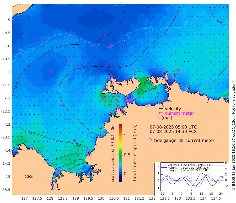 26cm/s 78T +4cm/s rms + 6cm/s 51T. Darwin_C1 52m 15cm/s -72T +4cm/s rms + 7cm/s -161T. Darwin_CW1 22m 7cm/s -115T +4cm/s rms + 8cm/s 61T. Darwin_CW2 34m 12cm/s -156T +3cm/s rms + 9cm/s 98T. Darwin_CW3 22m 27cm/s -92T +5cm/s rms + 7cm/s 88T. Darwin_C3 56m 32cm/s 60T +2cm/s rms + 9cm/s -126T. Darwin_CTbW 22m 6cm/s 142T +9cm/s rms + 2cm/s -110T. NWSLYN 196m 19cm/s 98T +1cm/s rms + 1cm/s -47T. DARBGF 30m 7cm/s 20T +7cm/s rms + 2cm/s -137T. ITFTIS 464m 8cm/s 43T +9cm/s rms + 1cm/s 74T. ITFMHB 146m 15cm/s 128T +4cm/s rms + 1cm/s -134T. ITFJBG 61m 15cm/s 110T +6cm/s rms + 4cm/s 121T. ITFFTB 108m 19cm/s 129T +4cm/s rms + 3cm/s 80T. NRSDAR 19m 8cm Carronade Island 4cm Guy Point 10cm Napier Broome Bay 12cm Lesueur Island -11cm Reveley Island -34cm Rocky Island -44cm Cape Domett -32cm Lacrosse Island -71cm Adolphus Island -88cm Pender Point -90cm Wyndham 37cm The Boxers 71cm Unnamed Shoal 24cm Loxton Shoal -36cm Pelican Island 35cm Calder Shoal 26cm Evans Shoal -100cm Quoin Island -12cm Port Keats -9cm Jones Point -82cm Catfish Island 18cm Cape Scott Offshore 24cm Cape Ford 27cm Anson Bay 41cm Goodrich Bank 24cm Peron Island North 35cm Point Jenny 37cm Native Point 24cm Fish Reef 33cm Tapa Bay 40cm Point Fawcett (Offshore) 23cm Burge Point 23cm Munkunuwa 34cm Beagle A 27cm Parsons Bank 25cm Fenton Patches 36cm Lynedoch Bank 24cm Hancox Shoal Area 25cm Nightcliff 19cm Darwin 25cm Charles Point Patches 7cm Glyde Point -19cm Chambers Bay -21cm Point Stuart 3cm Cape Hotham -11cm Christine Reef -30cm West Alligator Head -43cm East Field Island -2cm Two Hills Bay 42cm Newby Shoal 0cm Camp Point 24cm Medina Inlet South 43cm South Barlow Point 39cm St. Asaph Bay 45cm Cape Van Dieman 50cm Snake Bay 43cm Cache Point 17cm Echo Shoal 39cm Point Jahleel (Off) 32cm Cape Don 44cm Port Essington 46cm Smith Point - West 49cm NW Peacock Island 42cm North Of Jones Shoal 16cm Peacock Island 61cm Point David 52cm D'urville Point 50cm Money Shoal 59cm Copeland Island 70cm Cape Cockburn 54cm One Tree Point 73cm Hogmany Shoal 60cm New Year Island - West 61cm Grant Island 57cm Aurari Bay 55cm Cuthbert Point 57cm North Goulburn Island 52cm Paxie Shoal 50cm Entrance Island 41cm Yabooma Island
