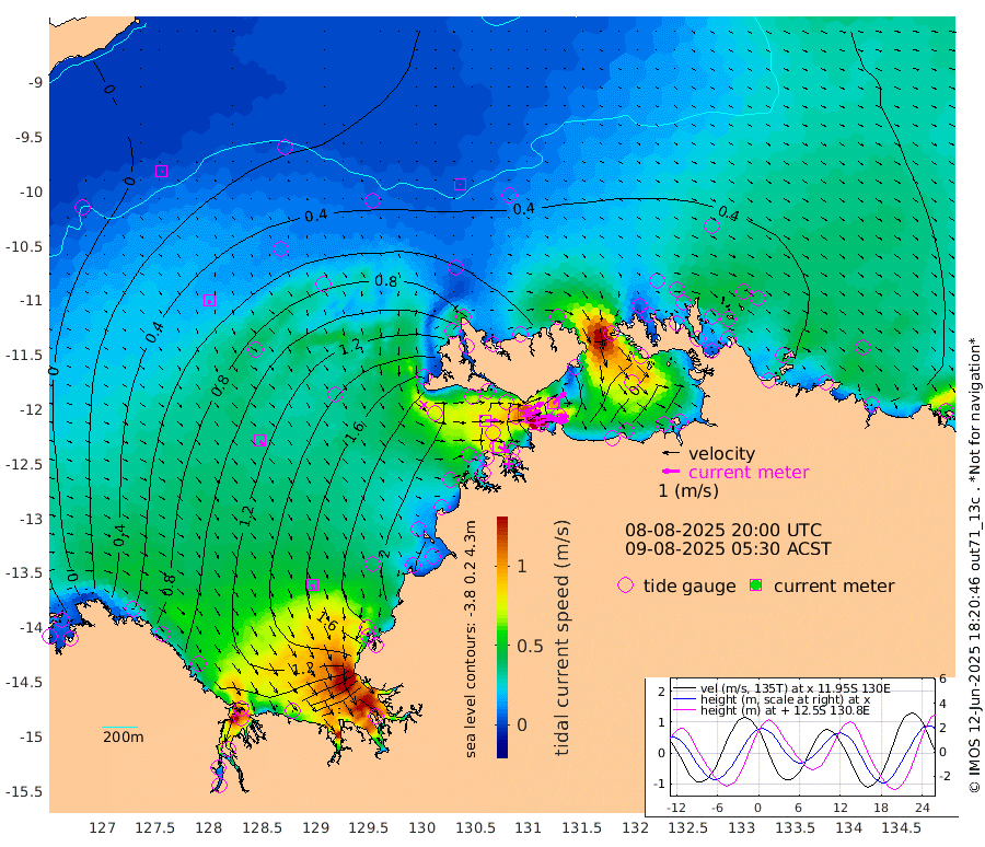 209cm/s 77T +4cm/s rms + 6cm/s 51T. Darwin_C1 52m 150cm/s 91T +4cm/s rms + 7cm/s -161T. Darwin_CW1 22m 103cm/s 74T +4cm/s rms + 8cm/s 61T. Darwin_CW2 34m 98cm/s 48T +3cm/s rms + 9cm/s 98T. Darwin_CW3 22m 136cm/s 89T +5cm/s rms + 7cm/s 88T. Darwin_C3 56m 115cm/s 65T +2cm/s rms + 9cm/s -126T. Darwin_CTbW 22m 2cm/s 65T +9cm/s rms + 2cm/s -110T. NWSLYN 196m 71cm/s 88T +1cm/s rms + 1cm/s -47T. DARBGF 30m 3cm/s 82T +7cm/s rms + 2cm/s -137T. ITFTIS 464m 19cm/s 171T +9cm/s rms + 1cm/s 74T. ITFMHB 146m 38cm/s 163T +4cm/s rms + 1cm/s -134T. ITFJBG 61m 33cm/s 140T +6cm/s rms + 4cm/s 121T. ITFFTB 108m 71cm/s 116T +4cm/s rms + 3cm/s 80T. NRSDAR 19m -34cm Carronade Island -34cm Guy Point -33cm Napier Broome Bay 43cm Lesueur Island 113cm Reveley Island 82cm Rocky Island 144cm Cape Domett 138cm Lacrosse Island 109cm Adolphus Island 9cm Pender Point -31cm Wyndham 75cm The Boxers 77cm Unnamed Shoal 17cm Loxton Shoal 166cm Pelican Island 73cm Calder Shoal 30cm Evans Shoal 90cm Quoin Island 217cm Port Keats 192cm Jones Point 19cm Catfish Island 196cm Cape Scott Offshore 245cm Cape Ford 222cm Anson Bay 48cm Goodrich Bank 196cm Peron Island North 223cm Point Jenny 222cm Native Point 221cm Fish Reef 233cm Tapa Bay 148cm Point Fawcett (Offshore) 242cm Burge Point 227cm Munkunuwa 210cm Beagle A 220cm Parsons Bank 240cm Fenton Patches 27cm Lynedoch Bank 210cm Hancox Shoal Area 244cm Nightcliff 230cm Darwin 224cm Charles Point Patches 136cm Glyde Point 57cm Chambers Bay 27cm Point Stuart 91cm Cape Hotham 65cm Christine Reef 23cm West Alligator Head -11cm East Field Island 52cm Two Hills Bay 159cm Newby Shoal 61cm Camp Point 225cm Medina Inlet South 132cm South Barlow Point 108cm St. Asaph Bay 55cm Cape Van Dieman 55cm Snake Bay 53cm Cache Point -6cm Echo Shoal 55cm Point Jahleel (Off) 70cm Cape Don 48cm Port Essington 55cm Smith Point - West 42cm NW Peacock Island 39cm North Of Jones Shoal 13cm Peacock Island 25cm Point David 48cm D'urville Point 27cm Money Shoal 24cm Copeland Island 36cm Cape Cockburn 29cm One Tree Point 17cm Hogmany Shoal 28cm New Year Island - West 28cm Grant Island 25cm Aurari Bay 19cm Cuthbert Point 26cm North Goulburn Island 12cm Paxie Shoal 7cm Entrance Island -16cm Yabooma Island