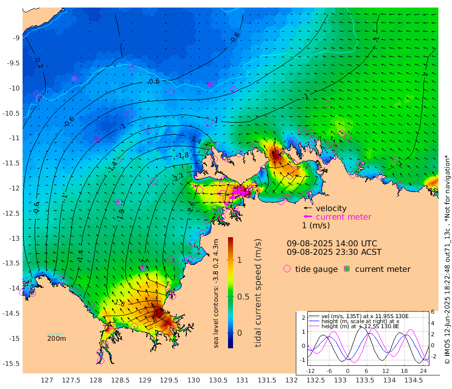207cm/s -103T +4cm/s rms + 6cm/s 51T. Darwin_C1 52m 145cm/s -89T +4cm/s rms + 7cm/s -161T. Darwin_CW1 22m 115cm/s -108T +4cm/s rms + 8cm/s 61T. Darwin_CW2 34m 89cm/s -129T +3cm/s rms + 9cm/s 98T. Darwin_CW3 22m 143cm/s -91T +5cm/s rms + 7cm/s 88T. Darwin_C3 56m 121cm/s -115T +2cm/s rms + 9cm/s -126T. Darwin_CTbW 22m 8cm/s -58T +9cm/s rms + 2cm/s -110T. NWSLYN 196m 71cm/s -93T +1cm/s rms + 1cm/s -47T. DARBGF 30m 10cm/s -161T +7cm/s rms + 2cm/s -137T. ITFTIS 464m 6cm/s -51T +9cm/s rms + 1cm/s 74T. ITFMHB 146m 35cm/s -24T +4cm/s rms + 1cm/s -134T. ITFJBG 61m 27cm/s -52T +6cm/s rms + 4cm/s 121T. ITFFTB 108m 58cm/s -63T +4cm/s rms + 3cm/s 80T. NRSDAR 19m 10cm Carronade Island 11cm Guy Point 5cm Napier Broome Bay -81cm Lesueur Island -141cm Reveley Island -73cm Rocky Island -170cm Cape Domett -161cm Lacrosse Island -126cm Adolphus Island -32cm Pender Point 10cm Wyndham -116cm The Boxers -135cm Unnamed Shoal -45cm Loxton Shoal -195cm Pelican Island -104cm Calder Shoal -56cm Evans Shoal -102cm Quoin Island -250cm Port Keats -231cm Jones Point -33cm Catfish Island -227cm Cape Scott Offshore -316cm Cape Ford -259cm Anson Bay -86cm Goodrich Bank -232cm Peron Island North -259cm Point Jenny -261cm Native Point -255cm Fish Reef -274cm Tapa Bay -183cm Point Fawcett (Offshore) -280cm Burge Point -255cm Munkunuwa -242cm Beagle A -260cm Parsons Bank -274cm Fenton Patches -62cm Lynedoch Bank -250cm Hancox Shoal Area -273cm Nightcliff -277cm Darwin -276cm Charles Point Patches -173cm Glyde Point -81cm Chambers Bay -53cm Point Stuart -123cm Cape Hotham -87cm Christine Reef -44cm West Alligator Head -7cm East Field Island -81cm Two Hills Bay -198cm Newby Shoal -97cm Camp Point -262cm Medina Inlet South -168cm South Barlow Point -139cm St. Asaph Bay -94cm Cape Van Dieman -97cm Snake Bay -92cm Cache Point -13cm Echo Shoal -92cm Point Jahleel (Off) -111cm Cape Don -95cm Port Essington -97cm Smith Point - West -89cm NW Peacock Island -77cm North Of Jones Shoal -28cm Peacock Island -86cm Point David -96cm D'urville Point -80cm Money Shoal -82cm Copeland Island -107cm Cape Cockburn -85cm One Tree Point -100cm Hogmany Shoal -89cm New Year Island - West -90cm Grant Island -82cm Aurari Bay -86cm Cuthbert Point -89cm North Goulburn Island -83cm Paxie Shoal -76cm Entrance Island -52cm Yabooma Island