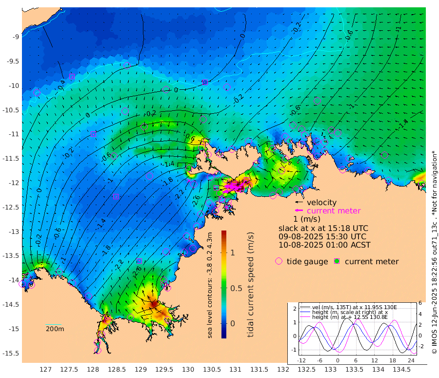 199cm/s -102T +4cm/s rms + 6cm/s 51T. Darwin_C1 52m 156cm/s -90T +4cm/s rms + 7cm/s -161T. Darwin_CW1 22m 106cm/s -106T +4cm/s rms + 8cm/s 61T. Darwin_CW2 34m 105cm/s -136T +3cm/s rms + 9cm/s 98T. Darwin_CW3 22m 161cm/s -90T +5cm/s rms + 7cm/s 88T. Darwin_C3 56m 112cm/s -115T +2cm/s rms + 9cm/s -126T. Darwin_CTbW 22m 5cm/s -109T +9cm/s rms + 2cm/s -110T. NWSLYN 196m 31cm/s -103T +1cm/s rms + 1cm/s -47T. DARBGF 30m 11cm/s 156T +7cm/s rms + 2cm/s -137T. ITFTIS 464m 12cm/s 161T +9cm/s rms + 1cm/s 74T. ITFMHB 146m 11cm/s 23T +4cm/s rms + 1cm/s -134T. ITFJBG 61m 10cm/s 119T +6cm/s rms + 4cm/s 121T. ITFFTB 108m 22cm/s -83T +4cm/s rms + 3cm/s 80T. NRSDAR 19m 32cm Carronade Island 30cm Guy Point 29cm Napier Broome Bay -94cm Lesueur Island -198cm Reveley Island -81cm Rocky Island -288cm Cape Domett -260cm Lacrosse Island -288cm Adolphus Island -218cm Pender Point -193cm Wyndham -60cm The Boxers -80cm Unnamed Shoal 21cm Loxton Shoal -315cm Pelican Island -34cm Calder Shoal 9cm Evans Shoal -330cm Quoin Island -317cm Port Keats -303cm Jones Point -251cm Catfish Island -234cm Cape Scott Offshore -255cm Cape Ford -266cm Anson Bay -20cm Goodrich Bank -224cm Peron Island North -233cm Point Jenny -233cm Native Point -239cm Fish Reef -266cm Tapa Bay -122cm Point Fawcett (Offshore) -280cm Burge Point -235cm Munkunuwa -200cm Beagle A -270cm Parsons Bank -269cm Fenton Patches -8cm Lynedoch Bank -274cm Hancox Shoal Area -287cm Nightcliff -306cm Darwin -285cm Charles Point Patches -225cm Glyde Point -180cm Chambers Bay -163cm Point Stuart -186cm Cape Hotham -166cm Christine Reef -169cm West Alligator Head -156cm East Field Island -150cm Two Hills Bay -141cm Newby Shoal -166cm Camp Point -254cm Medina Inlet South -104cm South Barlow Point -69cm St. Asaph Bay -25cm Cape Van Dieman -33cm Snake Bay -29cm Cache Point 49cm Echo Shoal -47cm Point Jahleel (Off) -103cm Cape Don -59cm Port Essington -56cm Smith Point - West -53cm NW Peacock Island -34cm North Of Jones Shoal -14cm Peacock Island -80cm Point David -60cm D'urville Point -54cm Money Shoal -81cm Copeland Island -100cm Cape Cockburn -75cm One Tree Point -102cm Hogmany Shoal -81cm New Year Island - West -85cm Grant Island -102cm Aurari Bay -122cm Cuthbert Point -104cm North Goulburn Island -138cm Paxie Shoal -147cm Entrance Island -161cm Yabooma Island