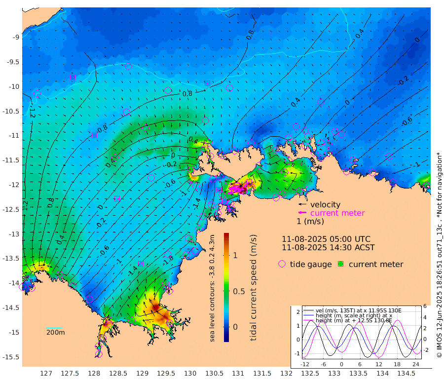 171cm/s -101T +4cm/s rms + 6cm/s 51T. Darwin_C1 52m 132cm/s -91T +4cm/s rms + 7cm/s -161T. Darwin_CW1 22m 87cm/s -107T +4cm/s rms + 8cm/s 61T. Darwin_CW2 34m 92cm/s -136T +3cm/s rms + 9cm/s 98T. Darwin_CW3 22m 139cm/s -91T +5cm/s rms + 7cm/s 88T. Darwin_C3 56m 91cm/s -115T +2cm/s rms + 9cm/s -126T. Darwin_CTbW 22m 13cm/s 158T +9cm/s rms + 2cm/s -110T. NWSLYN 196m 11cm/s -125T +1cm/s rms + 1cm/s -47T. DARBGF 30m 10cm/s 62T +7cm/s rms + 2cm/s -137T. ITFTIS 464m 12cm/s 83T +9cm/s rms + 1cm/s 74T. ITFMHB 146m 16cm/s 49T +4cm/s rms + 1cm/s -134T. ITFJBG 61m 22cm/s 94T +6cm/s rms + 4cm/s 121T. ITFFTB 108m 11cm/s -135T +4cm/s rms + 3cm/s 80T. NRSDAR 19m 109cm Carronade Island 108cm Guy Point 119cm Napier Broome Bay -13cm Lesueur Island -142cm Reveley Island -57cm Rocky Island -234cm Cape Domett -209cm Lacrosse Island -257cm Adolphus Island -182cm Pender Point -162cm Wyndham 41cm The Boxers 19cm Unnamed Shoal 100cm Loxton Shoal -262cm Pelican Island 51cm Calder Shoal 79cm Evans Shoal -312cm Quoin Island -244cm Port Keats -235cm Jones Point -203cm Catfish Island -154cm Cape Scott Offshore -121cm Cape Ford -177cm Anson Bay 59cm Goodrich Bank -147cm Peron Island North -139cm Point Jenny -137cm Native Point -154cm Fish Reef -172cm Tapa Bay -29cm Point Fawcett (Offshore) -192cm Burge Point -165cm Munkunuwa -112cm Beagle A -195cm Parsons Bank -187cm Fenton Patches 65cm Lynedoch Bank -199cm Hancox Shoal Area -214cm Nightcliff -218cm Darwin -178cm Charles Point Patches -164cm Glyde Point -148cm Chambers Bay -142cm Point Stuart -146cm Cape Hotham -132cm Christine Reef -157cm West Alligator Head -151cm East Field Island -116cm Two Hills Bay -36cm Newby Shoal -115cm Camp Point -167cm Medina Inlet South -19cm South Barlow Point 14cm St. Asaph Bay 56cm Cape Van Dieman 47cm Snake Bay 52cm Cache Point 118cm Echo Shoal 22cm Point Jahleel (Off) -33cm Cape Don 19cm Port Essington 15cm Smith Point - West 18cm NW Peacock Island 37cm North Of Jones Shoal 11cm Peacock Island -11cm Point David 11cm D'urville Point 26cm Money Shoal -17cm Copeland Island -21cm Cape Cockburn -5cm One Tree Point -12cm Hogmany Shoal -8cm New Year Island - West -14cm Grant Island -46cm Aurari Bay -57cm Cuthbert Point -38cm North Goulburn Island -69cm Paxie Shoal -97cm Entrance Island -128cm Yabooma Island