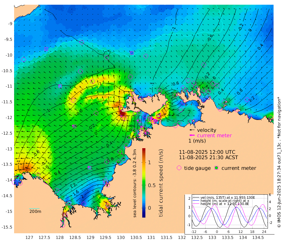 84cm/s 80T +4cm/s rms + 6cm/s 51T. Darwin_C1 52m 59cm/s 92T +4cm/s rms + 7cm/s -161T. Darwin_CW1 22m 52cm/s 68T +4cm/s rms + 8cm/s 61T. Darwin_CW2 34m 69cm/s 43T +3cm/s rms + 9cm/s 98T. Darwin_CW3 22m 88cm/s 89T +5cm/s rms + 7cm/s 88T. Darwin_C3 56m 36cm/s 65T +2cm/s rms + 9cm/s -126T. Darwin_CTbW 22m 10cm/s -21T +9cm/s rms + 2cm/s -110T. NWSLYN 196m 44cm/s -80T +1cm/s rms + 1cm/s -47T. DARBGF 30m 14cm/s -103T +7cm/s rms + 2cm/s -137T. ITFTIS 464m 22cm/s -49T +9cm/s rms + 1cm/s 74T. ITFMHB 146m 31cm/s -55T +4cm/s rms + 1cm/s -134T. ITFJBG 61m 48cm/s -61T +6cm/s rms + 4cm/s 121T. ITFFTB 108m 62cm/s -52T +4cm/s rms + 3cm/s 80T. NRSDAR 19m -81cm Carronade Island -74cm Guy Point -92cm Napier Broome Bay 12cm Lesueur Island 119cm Reveley Island 7cm Rocky Island 219cm Cape Domett 189cm Lacrosse Island 277cm Adolphus Island 262cm Pender Point 273cm Wyndham -85cm The Boxers -69cm Unnamed Shoal -127cm Loxton Shoal 243cm Pelican Island -108cm Calder Shoal -110cm Evans Shoal 366cm Quoin Island 176cm Port Keats 178cm Jones Point 316cm Catfish Island 75cm Cape Scott Offshore -7cm Cape Ford 88cm Anson Bay -97cm Goodrich Bank 57cm Peron Island North 37cm Point Jenny 35cm Native Point 49cm Fish Reef 72cm Tapa Bay -54cm Point Fawcett (Offshore) 83cm Burge Point 49cm Munkunuwa 3cm Beagle A 101cm Parsons Bank 78cm Fenton Patches -90cm Lynedoch Bank 122cm Hancox Shoal Area 112cm Nightcliff 128cm Darwin 90cm Charles Point Patches 131cm Glyde Point 177cm Chambers Bay 185cm Point Stuart 137cm Cape Hotham 152cm Christine Reef 208cm West Alligator Head 227cm East Field Island 131cm Two Hills Bay -52cm Newby Shoal 129cm Camp Point 62cm Medina Inlet South -62cm South Barlow Point -84cm St. Asaph Bay -99cm Cape Van Dieman -91cm Snake Bay -89cm Cache Point -132cm Echo Shoal -55cm Point Jahleel (Off) 12cm Cape Don -39cm Port Essington -41cm Smith Point - West -35cm NW Peacock Island -60cm North Of Jones Shoal -17cm Peacock Island 18cm Point David -30cm D'urville Point -28cm Money Shoal 27cm Copeland Island 25cm Cape Cockburn 7cm One Tree Point 39cm Hogmany Shoal 12cm New Year Island - West 21cm Grant Island 64cm Aurari Bay 93cm Cuthbert Point 56cm North Goulburn Island 118cm Paxie Shoal 153cm Entrance Island 215cm Yabooma Island