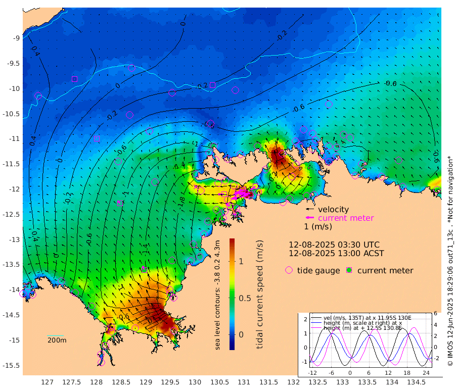 195cm/s -102T +4cm/s rms + 6cm/s 51T. Darwin_C1 52m 141cm/s -89T +4cm/s rms + 7cm/s -161T. Darwin_CW1 22m 114cm/s -109T +4cm/s rms + 8cm/s 61T. Darwin_CW2 34m 75cm/s -127T +3cm/s rms + 9cm/s 98T. Darwin_CW3 22m 133cm/s -92T +5cm/s rms + 7cm/s 88T. Darwin_C3 56m 109cm/s -116T +2cm/s rms + 9cm/s -126T. Darwin_CTbW 22m 2cm/s -138T +9cm/s rms + 2cm/s -110T. NWSLYN 196m 77cm/s -91T +1cm/s rms + 1cm/s -47T. DARBGF 30m 1cm/s -22T +7cm/s rms + 2cm/s -137T. ITFTIS 464m 15cm/s 0T +9cm/s rms + 1cm/s 74T. ITFMHB 146m 50cm/s -20T +4cm/s rms + 1cm/s -134T. ITFJBG 61m 35cm/s -37T +6cm/s rms + 4cm/s 121T. ITFFTB 108m 66cm/s -62T +4cm/s rms + 3cm/s 80T. NRSDAR 19m 134cm Carronade Island 139cm Guy Point 150cm Napier Broome Bay 21cm Lesueur Island -65cm Reveley Island -3cm Rocky Island -76cm Cape Domett -74cm Lacrosse Island -27cm Adolphus Island 113cm Pender Point 169cm Wyndham -38cm The Boxers -78cm Unnamed Shoal 22cm Loxton Shoal -123cm Pelican Island -43cm Calder Shoal -10cm Evans Shoal 10cm Quoin Island -184cm Port Keats -179cm Jones Point 119cm Catfish Island -175cm Cape Scott Offshore -282cm Cape Ford -208cm Anson Bay -44cm Goodrich Bank -197cm Peron Island North -209cm Point Jenny -210cm Native Point -216cm Fish Reef -228cm Tapa Bay -139cm Point Fawcett (Offshore) -232cm Burge Point -232cm Munkunuwa -195cm Beagle A -230cm Parsons Bank -229cm Fenton Patches -17cm Lynedoch Bank -212cm Hancox Shoal Area -231cm Nightcliff -231cm Darwin -222cm Charles Point Patches -121cm Glyde Point -16cm Chambers Bay 6cm Point Stuart -81cm Cape Hotham -19cm Christine Reef 18cm West Alligator Head 65cm East Field Island -31cm Two Hills Bay -118cm Newby Shoal -33cm Camp Point -220cm Medina Inlet South -132cm South Barlow Point -100cm St. Asaph Bay -55cm Cape Van Dieman -60cm Snake Bay -49cm Cache Point 55cm Echo Shoal -55cm Point Jahleel (Off) -66cm Cape Don -60cm Port Essington -67cm Smith Point - West -59cm NW Peacock Island -43cm North Of Jones Shoal -17cm Peacock Island -66cm Point David -70cm D'urville Point -42cm Money Shoal -66cm Copeland Island -82cm Cape Cockburn -58cm One Tree Point -68cm Hogmany Shoal -58cm New Year Island - West -63cm Grant Island -67cm Aurari Bay -58cm Cuthbert Point -66cm North Goulburn Island -44cm Paxie Shoal -52cm Entrance Island -38cm Yabooma Island