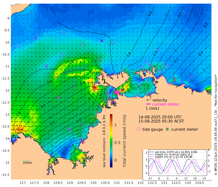 78cm/s -101T +4cm/s rms + 6cm/s 51T. Darwin_C1 52m 57cm/s -92T +4cm/s rms + 7cm/s -161T. Darwin_CW1 22m 41cm/s -107T +4cm/s rms + 8cm/s 61T. Darwin_CW2 34m 59cm/s -136T +3cm/s rms + 9cm/s 98T. Darwin_CW3 22m 90cm/s -90T +5cm/s rms + 7cm/s 88T. Darwin_C3 56m 37cm/s -116T +2cm/s rms + 9cm/s -126T. Darwin_CTbW 22m 6cm/s 147T +9cm/s rms + 2cm/s -110T. NWSLYN 196m 39cm/s 101T +1cm/s rms + 1cm/s -47T. DARBGF 30m 12cm/s 73T +7cm/s rms + 2cm/s -137T. ITFTIS 464m 17cm/s 117T +9cm/s rms + 1cm/s 74T. ITFMHB 146m 30cm/s 123T +4cm/s rms + 1cm/s -134T. ITFJBG 61m 42cm/s 115T +6cm/s rms + 4cm/s 121T. ITFFTB 108m 47cm/s 133T +4cm/s rms + 3cm/s 80T. NRSDAR 19m 50cm Carronade Island 44cm Guy Point 47cm Napier Broome Bay 1cm Lesueur Island -109cm Reveley Island -48cm Rocky Island -193cm Cape Domett -160cm Lacrosse Island -232cm Adolphus Island -250cm Pender Point -256cm Wyndham 73cm The Boxers 69cm Unnamed Shoal 109cm Loxton Shoal -201cm Pelican Island 94cm Calder Shoal 97cm Evans Shoal -312cm Quoin Island -144cm Port Keats -143cm Jones Point -282cm Catfish Island -59cm Cape Scott Offshore 24cm Cape Ford -68cm Anson Bay 93cm Goodrich Bank -41cm Peron Island North -33cm Point Jenny -30cm Native Point -37cm Fish Reef -55cm Tapa Bay 52cm Point Fawcett (Offshore) -71cm Burge Point -45cm Munkunuwa 6cm Beagle A -86cm Parsons Bank -56cm Fenton Patches 85cm Lynedoch Bank -96cm Hancox Shoal Area -88cm Nightcliff -100cm Darwin -63cm Charles Point Patches -106cm Glyde Point -152cm Chambers Bay -163cm Point Stuart -111cm Cape Hotham -138cm Christine Reef -185cm West Alligator Head -198cm East Field Island -114cm Two Hills Bay 44cm Newby Shoal -105cm Camp Point -50cm Medina Inlet South 60cm South Barlow Point 80cm St. Asaph Bay 94cm Cape Van Dieman 89cm Snake Bay 86cm Cache Point 119cm Echo Shoal 57cm Point Jahleel (Off) -9cm Cape Don 43cm Port Essington 45cm Smith Point - West 42cm NW Peacock Island 63cm North Of Jones Shoal 19cm Peacock Island 1cm Point David 38cm D'urville Point 38cm Money Shoal -5cm Copeland Island -4cm Cape Cockburn 7cm One Tree Point -15cm Hogmany Shoal 7cm New Year Island - West -4cm Grant Island -31cm Aurari Bay -68cm Cuthbert Point -33cm North Goulburn Island -92cm Paxie Shoal -119cm Entrance Island -168cm Yabooma Island