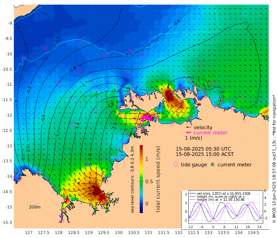 205cm/s -102T +4cm/s rms + 6cm/s 51T. Darwin_C1 52m 146cm/s -90T +4cm/s rms + 7cm/s -161T. Darwin_CW1 22m 127cm/s -107T +4cm/s rms + 8cm/s 61T. Darwin_CW2 34m 81cm/s -129T +3cm/s rms + 9cm/s 98T. Darwin_CW3 22m 168cm/s -92T +5cm/s rms + 7cm/s 88T. Darwin_C3 56m 118cm/s -115T +2cm/s rms + 9cm/s -126T. Darwin_CTbW 22m 5cm/s -86T +9cm/s rms + 2cm/s -110T. NWSLYN 196m 73cm/s -93T +1cm/s rms + 1cm/s -47T. DARBGF 30m 1cm/s 172T +7cm/s rms + 2cm/s -137T. ITFTIS 464m 14cm/s 1T +9cm/s rms + 1cm/s 74T. ITFMHB 146m 40cm/s -16T +4cm/s rms + 1cm/s -134T. ITFJBG 61m 28cm/s -36T +6cm/s rms + 4cm/s 121T. ITFFTB 108m 60cm/s -65T +4cm/s rms + 3cm/s 80T. NRSDAR 19m 76cm Carronade Island 76cm Guy Point 85cm Napier Broome Bay -38cm Lesueur Island -120cm Reveley Island -51cm Rocky Island -153cm Cape Domett -140cm Lacrosse Island -119cm Adolphus Island 11cm Pender Point 60cm Wyndham -83cm The Boxers -101cm Unnamed Shoal -26cm Loxton Shoal -192cm Pelican Island -85cm Calder Shoal -52cm Evans Shoal -99cm Quoin Island -238cm Port Keats -226cm Jones Point 2cm Catfish Island -218cm Cape Scott Offshore -329cm Cape Ford -246cm Anson Bay -77cm Goodrich Bank -241cm Peron Island North -241cm Point Jenny -241cm Native Point -253cm Fish Reef -261cm Tapa Bay -177cm Point Fawcett (Offshore) -267cm Burge Point -259cm Munkunuwa -223cm Beagle A -267cm Parsons Bank -258cm Fenton Patches -52cm Lynedoch Bank -248cm Hancox Shoal Area -261cm Nightcliff -277cm Darwin -272cm Charles Point Patches -163cm Glyde Point -65cm Chambers Bay -42cm Point Stuart -121cm Cape Hotham -63cm Christine Reef -33cm West Alligator Head 12cm East Field Island -77cm Two Hills Bay -164cm Newby Shoal -73cm Camp Point -260cm Medina Inlet South -165cm South Barlow Point -133cm St. Asaph Bay -86cm Cape Van Dieman -93cm Snake Bay -85cm Cache Point 10cm Echo Shoal -89cm Point Jahleel (Off) -106cm Cape Don -98cm Port Essington -103cm Smith Point - West -95cm NW Peacock Island -81cm North Of Jones Shoal -30cm Peacock Island -94cm Point David -104cm D'urville Point -77cm Money Shoal -92cm Copeland Island -123cm Cape Cockburn -93cm One Tree Point -110cm Hogmany Shoal -89cm New Year Island - West -96cm Grant Island -90cm Aurari Bay -93cm Cuthbert Point -99cm North Goulburn Island -76cm Paxie Shoal -83cm Entrance Island -66cm Yabooma Island