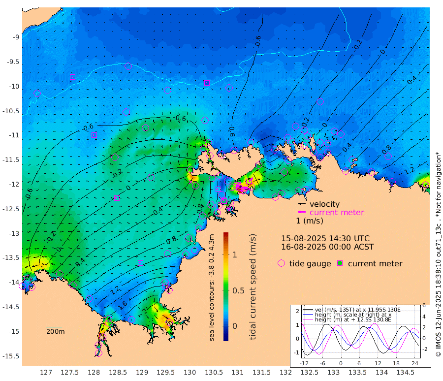 122cm/s 79T +4cm/s rms + 6cm/s 51T. Darwin_C1 52m 89cm/s 91T +4cm/s rms + 7cm/s -161T. Darwin_CW1 22m 63cm/s 71T +4cm/s rms + 8cm/s 61T. Darwin_CW2 34m 71cm/s 47T +3cm/s rms + 9cm/s 98T. Darwin_CW3 22m 110cm/s 89T +5cm/s rms + 7cm/s 88T. Darwin_C3 56m 65cm/s 65T +2cm/s rms + 9cm/s -126T. Darwin_CTbW 22m 5cm/s -10T +9cm/s rms + 2cm/s -110T. NWSLYN 196m 21cm/s -69T +1cm/s rms + 1cm/s -47T. DARBGF 30m 11cm/s -117T +7cm/s rms + 2cm/s -137T. ITFTIS 464m 13cm/s -99T +9cm/s rms + 1cm/s 74T. ITFMHB 146m 21cm/s -64T +4cm/s rms + 1cm/s -134T. ITFJBG 61m 29cm/s -70T +6cm/s rms + 4cm/s 121T. ITFFTB 108m 37cm/s -47T +4cm/s rms + 3cm/s 80T. NRSDAR 19m -3cm Carronade Island 7cm Guy Point -6cm Napier Broome Bay 52cm Lesueur Island 139cm Reveley Island 53cm Rocky Island 220cm Cape Domett 195cm Lacrosse Island 256cm Adolphus Island 245cm Pender Point 254cm Wyndham -26cm The Boxers -35cm Unnamed Shoal -67cm Loxton Shoal 233cm Pelican Island -43cm Calder Shoal -52cm Evans Shoal 319cm Quoin Island 182cm Port Keats 174cm Jones Point 308cm Catfish Island 107cm Cape Scott Offshore 61cm Cape Ford 114cm Anson Bay -50cm Goodrich Bank 94cm Peron Island North 90cm Point Jenny 84cm Native Point 91cm Fish Reef 108cm Tapa Bay 7cm Point Fawcett (Offshore) 119cm Burge Point 86cm Munkunuwa 56cm Beagle A 125cm Parsons Bank 110cm Fenton Patches -51cm Lynedoch Bank 140cm Hancox Shoal Area 137cm Nightcliff 141cm Darwin 114cm Charles Point Patches 138cm Glyde Point 172cm Chambers Bay 176cm Point Stuart 138cm Cape Hotham 162cm Christine Reef 197cm West Alligator Head 205cm East Field Island 136cm Two Hills Bay 19cm Newby Shoal 124cm Camp Point 97cm Medina Inlet South -12cm South Barlow Point -28cm St. Asaph Bay -51cm Cape Van Dieman -50cm Snake Bay -38cm Cache Point -74cm Echo Shoal -14cm Point Jahleel (Off) 44cm Cape Don -6cm Port Essington -2cm Smith Point - West -3cm NW Peacock Island -21cm North Of Jones Shoal -5cm Peacock Island 24cm Point David 1cm D'urville Point -5cm Money Shoal 31cm Copeland Island 41cm Cape Cockburn 21cm One Tree Point 51cm Hogmany Shoal 22cm New Year Island - West 32cm Grant Island 54cm Aurari Bay 88cm Cuthbert Point 57cm North Goulburn Island 101cm Paxie Shoal 127cm Entrance Island 168cm Yabooma Island