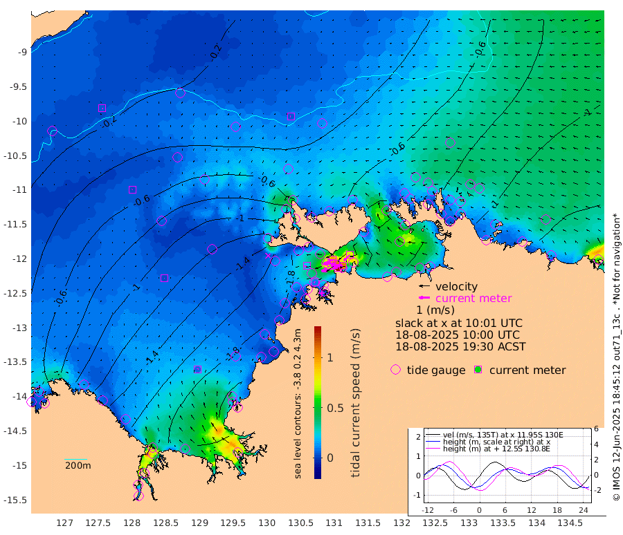 157cm/s -102T +4cm/s rms + 6cm/s 51T. Darwin_C1 52m 106cm/s -90T +4cm/s rms + 7cm/s -161T. Darwin_CW1 22m 67cm/s -106T +4cm/s rms + 8cm/s 61T. Darwin_CW2 34m 76cm/s -134T +3cm/s rms + 9cm/s 98T. Darwin_CW3 22m 107cm/s -90T +5cm/s rms + 7cm/s 88T. Darwin_C3 56m 98cm/s -115T +2cm/s rms + 9cm/s -126T. Darwin_CTbW 22m 4cm/s -110T +9cm/s rms + 2cm/s -110T. NWSLYN 196m 20cm/s -104T +1cm/s rms + 1cm/s -47T. DARBGF 30m 5cm/s 142T +7cm/s rms + 2cm/s -137T. ITFTIS 464m 2cm/s 66T +9cm/s rms + 1cm/s 74T. ITFMHB 146m 6cm/s 40T +4cm/s rms + 1cm/s -134T. ITFJBG 61m 3cm/s 85T +6cm/s rms + 4cm/s 121T. ITFFTB 108m 10cm/s -88T +4cm/s rms + 3cm/s 80T. NRSDAR 19m -62cm Carronade Island -62cm Guy Point -68cm Napier Broome Bay -119cm Lesueur Island -155cm Reveley Island -83cm Rocky Island -208cm Cape Domett -196cm Lacrosse Island -209cm Adolphus Island -174cm Pender Point -177cm Wyndham -77cm The Boxers -81cm Unnamed Shoal -23cm Loxton Shoal -213cm Pelican Island -60cm Calder Shoal -31cm Evans Shoal -231cm Quoin Island -205cm Port Keats -197cm Jones Point -261cm Catfish Island -165cm Cape Scott Offshore -179cm Cape Ford -176cm Anson Bay -40cm Goodrich Bank -169cm Peron Island North -169cm Point Jenny -164cm Native Point -174cm Fish Reef -178cm Tapa Bay -110cm Point Fawcett (Offshore) -189cm Burge Point -150cm Munkunuwa -152cm Beagle A -181cm Parsons Bank -183cm Fenton Patches -32cm Lynedoch Bank -182cm Hancox Shoal Area -189cm Nightcliff -198cm Darwin -186cm Charles Point Patches -167cm Glyde Point -154cm Chambers Bay -154cm Point Stuart -154cm Cape Hotham -149cm Christine Reef -163cm West Alligator Head -157cm East Field Island -144cm Two Hills Bay -137cm Newby Shoal -132cm Camp Point -171cm Medina Inlet South -87cm South Barlow Point -69cm St. Asaph Bay -43cm Cape Van Dieman -47cm Snake Bay -56cm Cache Point -10cm Echo Shoal -64cm Point Jahleel (Off) -103cm Cape Don -71cm Port Essington -73cm Smith Point - West -71cm NW Peacock Island -58cm North Of Jones Shoal -22cm Peacock Island -81cm Point David -75cm D'urville Point -65cm Money Shoal -82cm Copeland Island -115cm Cape Cockburn -83cm One Tree Point -111cm Hogmany Shoal -87cm New Year Island - West -91cm Grant Island -96cm Aurari Bay -119cm Cuthbert Point -103cm North Goulburn Island -118cm Paxie Shoal -128cm Entrance Island -135cm Yabooma Island
