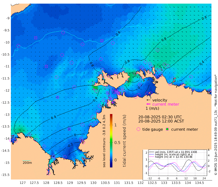 13cm/s -99T +4cm/s rms + 6cm/s 51T. Darwin_C1 52m 39cm/s -90T +4cm/s rms + 7cm/s -161T. Darwin_CW1 22m 8cm/s -118T +4cm/s rms + 8cm/s 61T. Darwin_CW2 34m 21cm/s -140T +3cm/s rms + 9cm/s 98T. Darwin_CW3 22m 13cm/s -95T +5cm/s rms + 7cm/s 88T. Darwin_C3 56m 3cm/s 45T +2cm/s rms + 9cm/s -126T. Darwin_CTbW 22m 9cm/s 138T +9cm/s rms + 2cm/s -110T. NWSLYN 196m 15cm/s 98T +1cm/s rms + 1cm/s -47T. DARBGF 30m 7cm/s 27T +7cm/s rms + 2cm/s -137T. ITFTIS 464m 7cm/s 49T +9cm/s rms + 1cm/s 74T. ITFMHB 146m 6cm/s 77T +4cm/s rms + 1cm/s -134T. ITFJBG 61m 10cm/s 94T +6cm/s rms + 4cm/s 121T. ITFFTB 108m 13cm/s 130T +4cm/s rms + 3cm/s 80T. NRSDAR 19m 39cm Carronade Island 37cm Guy Point 46cm Napier Broome Bay 25cm Lesueur Island -21cm Reveley Island -12cm Rocky Island -48cm Cape Domett -42cm Lacrosse Island -57cm Adolphus Island -63cm Pender Point -58cm Wyndham 59cm The Boxers 65cm Unnamed Shoal 70cm Loxton Shoal -50cm Pelican Island 61cm Calder Shoal 66cm Evans Shoal -73cm Quoin Island -36cm Port Keats -38cm Jones Point -29cm Catfish Island 3cm Cape Scott Offshore -3cm Cape Ford 3cm Anson Bay 66cm Goodrich Bank 16cm Peron Island North 5cm Point Jenny 5cm Native Point 5cm Fish Reef -2cm Tapa Bay 47cm Point Fawcett (Offshore) -12cm Burge Point -6cm Munkunuwa 10cm Beagle A -2cm Parsons Bank -14cm Fenton Patches 67cm Lynedoch Bank -8cm Hancox Shoal Area -15cm Nightcliff -5cm Darwin 10cm Charles Point Patches -11cm Glyde Point -27cm Chambers Bay -29cm Point Stuart -11cm Cape Hotham -25cm Christine Reef -39cm West Alligator Head -49cm East Field Island -3cm Two Hills Bay 44cm Newby Shoal -11cm Camp Point 6cm Medina Inlet South 53cm South Barlow Point 54cm St. Asaph Bay 67cm Cape Van Dieman 73cm Snake Bay 67cm Cache Point 66cm Echo Shoal 57cm Point Jahleel (Off) 43cm Cape Don 66cm Port Essington 65cm Smith Point - West 69cm NW Peacock Island 73cm North Of Jones Shoal 26cm Peacock Island 65cm Point David 69cm D'urville Point 71cm Money Shoal 62cm Copeland Island 84cm Cape Cockburn 69cm One Tree Point 78cm Hogmany Shoal 68cm New Year Island - West 67cm Grant Island 54cm Aurari Bay 53cm Cuthbert Point 61cm North Goulburn Island 44cm Paxie Shoal 34cm Entrance Island 20cm Yabooma Island