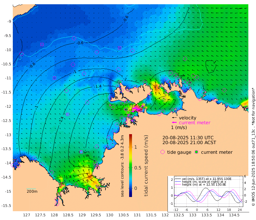 170cm/s -102T +4cm/s rms + 6cm/s 51T. Darwin_C1 52m 113cm/s -89T +4cm/s rms + 7cm/s -161T. Darwin_CW1 22m 77cm/s -107T +4cm/s rms + 8cm/s 61T. Darwin_CW2 34m 71cm/s -130T +3cm/s rms + 9cm/s 98T. Darwin_CW3 22m 103cm/s -90T +5cm/s rms + 7cm/s 88T. Darwin_C3 56m 106cm/s -115T +2cm/s rms + 9cm/s -126T. Darwin_CTbW 22m 8cm/s -60T +9cm/s rms + 2cm/s -110T. NWSLYN 196m 52cm/s -93T +1cm/s rms + 1cm/s -47T. DARBGF 30m 7cm/s -161T +7cm/s rms + 2cm/s -137T. ITFTIS 464m 8cm/s -36T +9cm/s rms + 1cm/s 74T. ITFMHB 146m 23cm/s -26T +4cm/s rms + 1cm/s -134T. ITFJBG 61m 22cm/s -52T +6cm/s rms + 4cm/s 121T. ITFFTB 108m 42cm/s -62T +4cm/s rms + 3cm/s 80T. NRSDAR 19m -53cm Carronade Island -50cm Guy Point -62cm Napier Broome Bay -104cm Lesueur Island -124cm Reveley Island -66cm Rocky Island -146cm Cape Domett -146cm Lacrosse Island -110cm Adolphus Island -61cm Pender Point -46cm Wyndham -109cm The Boxers -121cm Unnamed Shoal -55cm Loxton Shoal -155cm Pelican Island -99cm Calder Shoal -64cm Evans Shoal -109cm Quoin Island -182cm Port Keats -175cm Jones Point -150cm Catfish Island -180cm Cape Scott Offshore -223cm Cape Ford -196cm Anson Bay -76cm Goodrich Bank -188cm Peron Island North -195cm Point Jenny -192cm Native Point -199cm Fish Reef -199cm Tapa Bay -156cm Point Fawcett (Offshore) -204cm Burge Point -181cm Munkunuwa -182cm Beagle A -189cm Parsons Bank -196cm Fenton Patches -61cm Lynedoch Bank -180cm Hancox Shoal Area -196cm Nightcliff -201cm Darwin -202cm Charles Point Patches -144cm Glyde Point -94cm Chambers Bay -86cm Point Stuart -120cm Cape Hotham -92cm Christine Reef -84cm West Alligator Head -62cm East Field Island -100cm Two Hills Bay -165cm Newby Shoal -94cm Camp Point -195cm Medina Inlet South -130cm South Barlow Point -114cm St. Asaph Bay -82cm Cape Van Dieman -85cm Snake Bay -89cm Cache Point -39cm Echo Shoal -87cm Point Jahleel (Off) -107cm Cape Don -90cm Port Essington -91cm Smith Point - West -85cm NW Peacock Island -82cm North Of Jones Shoal -29cm Peacock Island -82cm Point David -89cm D'urville Point -78cm Money Shoal -79cm Copeland Island -113cm Cape Cockburn -87cm One Tree Point -102cm Hogmany Shoal -87cm New Year Island - West -88cm Grant Island -83cm Aurari Bay -90cm Cuthbert Point -91cm North Goulburn Island -88cm Paxie Shoal -78cm Entrance Island -65cm Yabooma Island