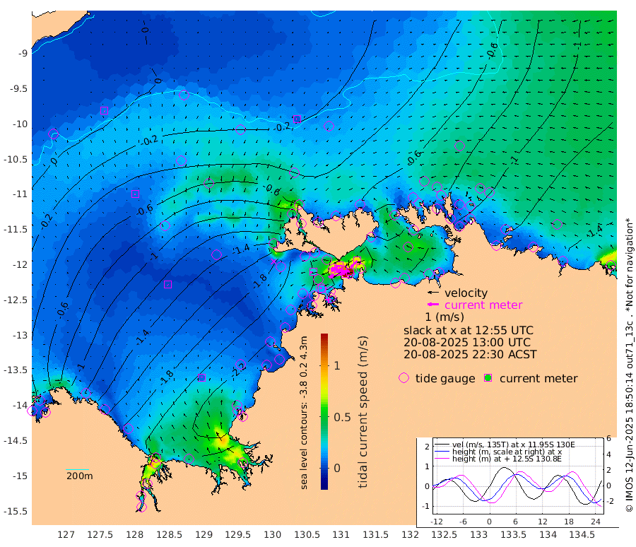 152cm/s -102T +4cm/s rms + 6cm/s 51T. Darwin_C1 52m 125cm/s -90T +4cm/s rms + 7cm/s -161T. Darwin_CW1 22m 68cm/s -106T +4cm/s rms + 8cm/s 61T. Darwin_CW2 34m 82cm/s -137T +3cm/s rms + 9cm/s 98T. Darwin_CW3 22m 107cm/s -90T +5cm/s rms + 7cm/s 88T. Darwin_C3 56m 88cm/s -115T +2cm/s rms + 9cm/s -126T. Darwin_CTbW 22m 5cm/s -101T +9cm/s rms + 2cm/s -110T. NWSLYN 196m 25cm/s -101T +1cm/s rms + 1cm/s -47T. DARBGF 30m 10cm/s 167T +7cm/s rms + 2cm/s -137T. ITFTIS 464m 7cm/s 180T +9cm/s rms + 1cm/s 74T. ITFMHB 146m 8cm/s -1T +4cm/s rms + 1cm/s -134T. ITFJBG 61m 2cm/s 164T +6cm/s rms + 4cm/s 121T. ITFFTB 108m 17cm/s -73T +4cm/s rms + 3cm/s 80T. NRSDAR 19m -41cm Carronade Island -39cm Guy Point -46cm Napier Broome Bay -115cm Lesueur Island -164cm Reveley Island -64cm Rocky Island -224cm Cape Domett -213cm Lacrosse Island -211cm Adolphus Island -175cm Pender Point -168cm Wyndham -74cm The Boxers -89cm Unnamed Shoal -5cm Loxton Shoal -232cm Pelican Island -54cm Calder Shoal -15cm Evans Shoal -235cm Quoin Island -237cm Port Keats -234cm Jones Point -243cm Catfish Island -185cm Cape Scott Offshore -231cm Cape Ford -204cm Anson Bay -33cm Goodrich Bank -185cm Peron Island North -193cm Point Jenny -189cm Native Point -201cm Fish Reef -206cm Tapa Bay -118cm Point Fawcett (Offshore) -226cm Burge Point -178cm Munkunuwa -174cm Beagle A -206cm Parsons Bank -216cm Fenton Patches -22cm Lynedoch Bank -206cm Hancox Shoal Area -218cm Nightcliff -231cm Darwin -218cm Charles Point Patches -185cm Glyde Point -159cm Chambers Bay -157cm Point Stuart -165cm Cape Hotham -149cm Christine Reef -164cm West Alligator Head -157cm East Field Island -143cm Two Hills Bay -143cm Newby Shoal -145cm Camp Point -198cm Medina Inlet South -91cm South Barlow Point -70cm St. Asaph Bay -37cm Cape Van Dieman -41cm Snake Bay -47cm Cache Point 9cm Echo Shoal -57cm Point Jahleel (Off) -101cm Cape Don -64cm Port Essington -61cm Smith Point - West -59cm NW Peacock Island -47cm North Of Jones Shoal -18cm Peacock Island -77cm Point David -64cm D'urville Point -60cm Money Shoal -77cm Copeland Island -106cm Cape Cockburn -77cm One Tree Point -102cm Hogmany Shoal -81cm New Year Island - West -83cm Grant Island -94cm Aurari Bay -113cm Cuthbert Point -99cm North Goulburn Island -124cm Paxie Shoal -128cm Entrance Island -140cm Yabooma Island