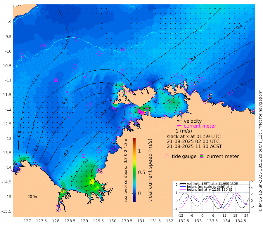 95cm/s -101T +4cm/s rms + 6cm/s 51T. Darwin_C1 52m 83cm/s -90T +4cm/s rms + 7cm/s -161T. Darwin_CW1 22m 44cm/s -108T +4cm/s rms + 8cm/s 61T. Darwin_CW2 34m 48cm/s -135T +3cm/s rms + 9cm/s 98T. Darwin_CW3 22m 54cm/s -92T +5cm/s rms + 7cm/s 88T. Darwin_C3 56m 51cm/s -115T +2cm/s rms + 9cm/s -126T. Darwin_CTbW 22m 9cm/s 139T +9cm/s rms + 2cm/s -110T. NWSLYN 196m 14cm/s -96T +1cm/s rms + 1cm/s -47T. DARBGF 30m 7cm/s 34T +7cm/s rms + 2cm/s -137T. ITFTIS 464m 10cm/s 35T +9cm/s rms + 1cm/s 74T. ITFMHB 146m 18cm/s -3T +4cm/s rms + 1cm/s -134T. ITFJBG 61m 10cm/s 22T +6cm/s rms + 4cm/s 121T. ITFFTB 108m 16cm/s -70T +4cm/s rms + 3cm/s 80T. NRSDAR 19m 91cm Carronade Island 96cm Guy Point 101cm Napier Broome Bay 35cm Lesueur Island -43cm Reveley Island -23cm Rocky Island -79cm Cape Domett -71cm Lacrosse Island -72cm Adolphus Island -28cm Pender Point -8cm Wyndham 48cm The Boxers 33cm Unnamed Shoal 89cm Loxton Shoal -101cm Pelican Island 54cm Calder Shoal 69cm Evans Shoal -84cm Quoin Island -102cm Port Keats -110cm Jones Point -53cm Catfish Island -60cm Cape Scott Offshore -91cm Cape Ford -73cm Anson Bay 55cm Goodrich Bank -59cm Peron Island North -70cm Point Jenny -68cm Native Point -79cm Fish Reef -81cm Tapa Bay -2cm Point Fawcett (Offshore) -95cm Burge Point -85cm Munkunuwa -59cm Beagle A -88cm Parsons Bank -96cm Fenton Patches 64cm Lynedoch Bank -86cm Hancox Shoal Area -95cm Nightcliff -92cm Darwin -72cm Charles Point Patches -66cm Glyde Point -49cm Chambers Bay -52cm Point Stuart -55cm Cape Hotham -44cm Christine Reef -59cm West Alligator Head -53cm East Field Island -35cm Two Hills Bay 2cm Newby Shoal -33cm Camp Point -74cm Medina Inlet South 9cm South Barlow Point 25cm St. Asaph Bay 51cm Cape Van Dieman 54cm Snake Bay 51cm Cache Point 96cm Echo Shoal 36cm Point Jahleel (Off) 9cm Cape Don 37cm Port Essington 34cm Smith Point - West 39cm NW Peacock Island 53cm North Of Jones Shoal 17cm Peacock Island 28cm Point David 34cm D'urville Point 47cm Money Shoal 23cm Copeland Island 32cm Cape Cockburn 34cm One Tree Point 34cm Hogmany Shoal 33cm New Year Island - West 30cm Grant Island 8cm Aurari Bay 4cm Cuthbert Point 17cm North Goulburn Island 4cm Paxie Shoal -14cm Entrance Island -27cm Yabooma Island