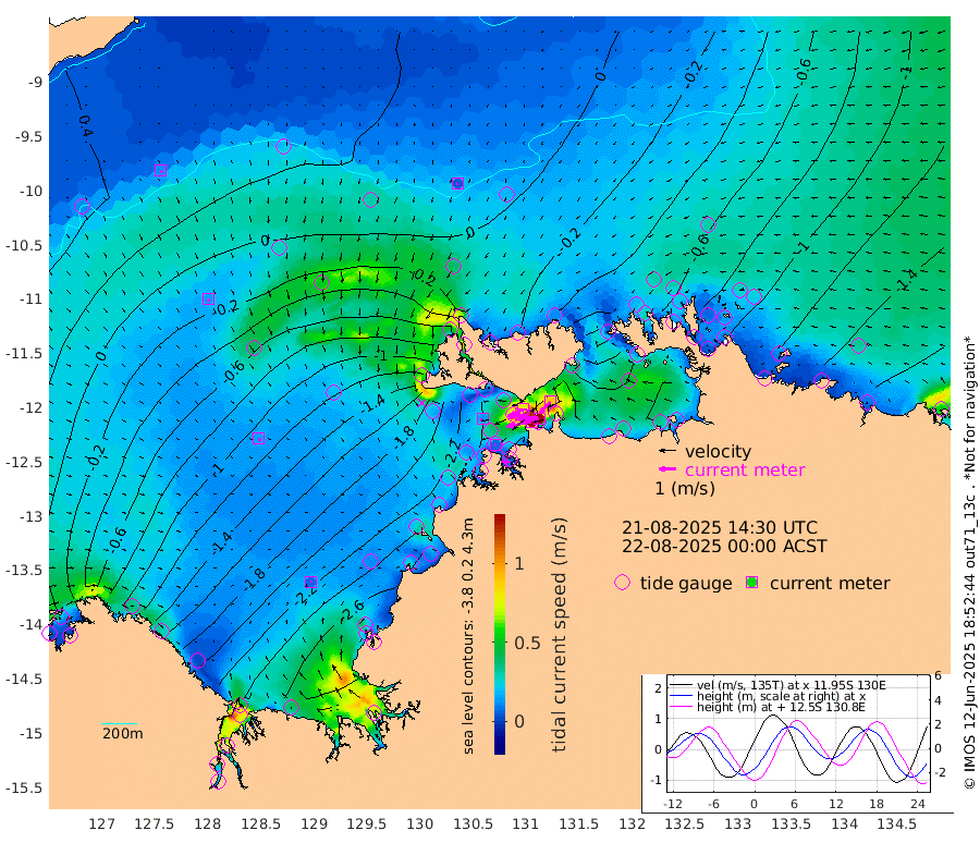 147cm/s -101T +4cm/s rms + 6cm/s 51T. Darwin_C1 52m 131cm/s -92T +4cm/s rms + 7cm/s -161T. Darwin_CW1 22m 74cm/s -106T +4cm/s rms + 8cm/s 61T. Darwin_CW2 34m 88cm/s -137T +3cm/s rms + 9cm/s 98T. Darwin_CW3 22m 123cm/s -90T +5cm/s rms + 7cm/s 88T. Darwin_C3 56m 78cm/s -116T +2cm/s rms + 9cm/s -126T. Darwin_CTbW 22m 5cm/s -122T +9cm/s rms + 2cm/s -110T. NWSLYN 196m 14cm/s -120T +1cm/s rms + 1cm/s -47T. DARBGF 30m 11cm/s 154T +7cm/s rms + 2cm/s -137T. ITFTIS 464m 14cm/s 165T +9cm/s rms + 1cm/s 74T. ITFMHB 146m 8cm/s 59T +4cm/s rms + 1cm/s -134T. ITFJBG 61m 15cm/s 130T +6cm/s rms + 4cm/s 121T. ITFFTB 108m 7cm/s -119T +4cm/s rms + 3cm/s 80T. NRSDAR 19m -5cm Carronade Island -4cm Guy Point -7cm Napier Broome Bay -101cm Lesueur Island -182cm Reveley Island -61cm Rocky Island -265cm Cape Domett -244cm Lacrosse Island -262cm Adolphus Island -228cm Pender Point -215cm Wyndham -47cm The Boxers -66cm Unnamed Shoal 25cm Loxton Shoal -277cm Pelican Island -25cm Calder Shoal 13cm Evans Shoal -306cm Quoin Island -272cm Port Keats -270cm Jones Point -267cm Catfish Island -193cm Cape Scott Offshore -242cm Cape Ford -215cm Anson Bay -8cm Goodrich Bank -191cm Peron Island North -192cm Point Jenny -189cm Native Point -205cm Fish Reef -216cm Tapa Bay -99cm Point Fawcett (Offshore) -241cm Burge Point -190cm Munkunuwa -166cm Beagle A -225cm Parsons Bank -225cm Fenton Patches 1cm Lynedoch Bank -225cm Hancox Shoal Area -233cm Nightcliff -256cm Darwin -234cm Charles Point Patches -204cm Glyde Point -182cm Chambers Bay -180cm Point Stuart -183cm Cape Hotham -165cm Christine Reef -190cm West Alligator Head -187cm East Field Island -156cm Two Hills Bay -120cm Newby Shoal -163cm Camp Point -209cm Medina Inlet South -75cm South Barlow Point -48cm St. Asaph Bay -12cm Cape Van Dieman -17cm Snake Bay -21cm Cache Point 43cm Echo Shoal -37cm Point Jahleel (Off) -93cm Cape Don -49cm Port Essington -42cm Smith Point - West -42cm NW Peacock Island -26cm North Of Jones Shoal -11cm Peacock Island -70cm Point David -47cm D'urville Point -46cm Money Shoal -72cm Copeland Island -97cm Cape Cockburn -68cm One Tree Point -96cm Hogmany Shoal -72cm New Year Island - West -76cm Grant Island -93cm Aurari Bay -116cm Cuthbert Point -98cm North Goulburn Island -137cm Paxie Shoal -146cm Entrance Island -170cm Yabooma Island