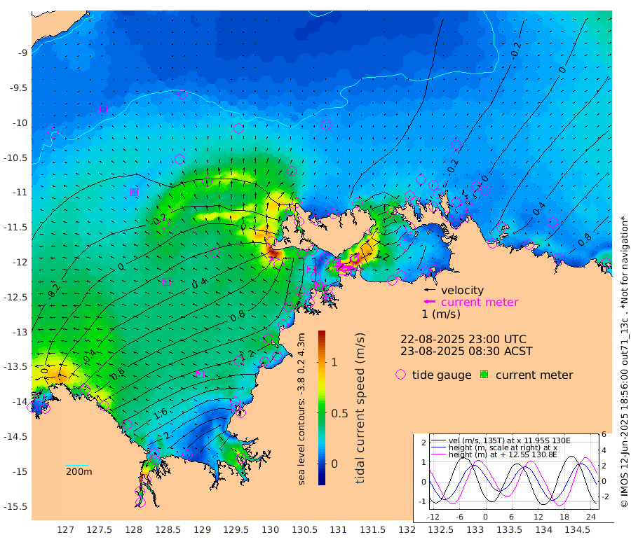 78cm/s 79T +4cm/s rms + 6cm/s 51T. Darwin_C1 52m 86cm/s 90T +4cm/s rms + 7cm/s -161T. Darwin_CW1 22m 61cm/s 72T +4cm/s rms + 8cm/s 61T. Darwin_CW2 34m 66cm/s 43T +3cm/s rms + 9cm/s 98T. Darwin_CW3 22m 112cm/s 90T +5cm/s rms + 7cm/s 88T. Darwin_C3 56m 36cm/s 67T +2cm/s rms + 9cm/s -126T. Darwin_CTbW 22m 9cm/s -7T +9cm/s rms + 2cm/s -110T. NWSLYN 196m 29cm/s -71T +1cm/s rms + 1cm/s -47T. DARBGF 30m 8cm/s -69T +7cm/s rms + 2cm/s -137T. ITFTIS 464m 15cm/s -41T +9cm/s rms + 1cm/s 74T. ITFMHB 146m 29cm/s -50T +4cm/s rms + 1cm/s -134T. ITFJBG 61m 38cm/s -56T +6cm/s rms + 4cm/s 121T. ITFFTB 108m 42cm/s -47T +4cm/s rms + 3cm/s 80T. NRSDAR 19m 26cm Carronade Island 33cm Guy Point 34cm Napier Broome Bay 96cm Lesueur Island 181cm Reveley Island 109cm Rocky Island 281cm Cape Domett 247cm Lacrosse Island 314cm Adolphus Island 334cm Pender Point 333cm Wyndham 3cm The Boxers -5cm Unnamed Shoal -36cm Loxton Shoal 270cm Pelican Island -15cm Calder Shoal -40cm Evans Shoal 379cm Quoin Island 225cm Port Keats 220cm Jones Point 287cm Catfish Island 121cm Cape Scott Offshore 130cm Cape Ford 125cm Anson Bay -37cm Goodrich Bank 105cm Peron Island North 98cm Point Jenny 97cm Native Point 108cm Fish Reef 123cm Tapa Bay 14cm Point Fawcett (Offshore) 150cm Burge Point 109cm Munkunuwa 74cm Beagle A 138cm Parsons Bank 136cm Fenton Patches -35cm Lynedoch Bank 146cm Hancox Shoal Area 147cm Nightcliff 170cm Darwin 139cm Charles Point Patches 155cm Glyde Point 176cm Chambers Bay 181cm Point Stuart 146cm Cape Hotham 159cm Christine Reef 203cm West Alligator Head 219cm East Field Island 135cm Two Hills Bay 47cm Newby Shoal 141cm Camp Point 121cm Medina Inlet South 0cm South Barlow Point -17cm St. Asaph Bay -41cm Cape Van Dieman -37cm Snake Bay -34cm Cache Point -46cm Echo Shoal -13cm Point Jahleel (Off) 37cm Cape Don -14cm Port Essington -21cm Smith Point - West -21cm NW Peacock Island -33cm North Of Jones Shoal -11cm Peacock Island -3cm Point David -22cm D'urville Point -20cm Money Shoal -1cm Copeland Island 1cm Cape Cockburn -4cm One Tree Point 10cm Hogmany Shoal 0cm New Year Island - West 5cm Grant Island 16cm Aurari Bay 39cm Cuthbert Point 21cm North Goulburn Island 63cm Paxie Shoal 79cm Entrance Island 100cm Yabooma Island