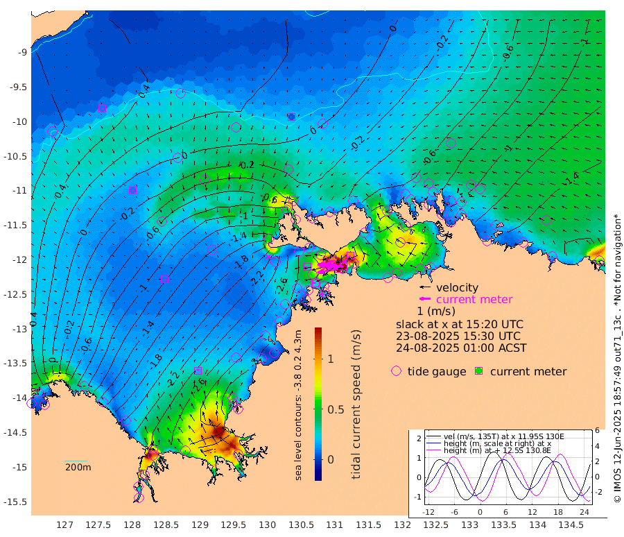 197cm/s -101T +4cm/s rms + 6cm/s 51T. Darwin_C1 52m 160cm/s -91T +4cm/s rms + 7cm/s -161T. Darwin_CW1 22m 110cm/s -106T +4cm/s rms + 8cm/s 61T. Darwin_CW2 34m 102cm/s -135T +3cm/s rms + 9cm/s 98T. Darwin_CW3 22m 176cm/s -91T +5cm/s rms + 7cm/s 88T. Darwin_C3 56m 105cm/s -116T +2cm/s rms + 9cm/s -126T. Darwin_CTbW 22m 5cm/s -110T +9cm/s rms + 2cm/s -110T. NWSLYN 196m 34cm/s -103T +1cm/s rms + 1cm/s -47T. DARBGF 30m 10cm/s 148T +7cm/s rms + 2cm/s -137T. ITFTIS 464m 9cm/s 145T +9cm/s rms + 1cm/s 74T. ITFMHB 146m 16cm/s 17T +4cm/s rms + 1cm/s -134T. ITFJBG 61m 9cm/s 99T +6cm/s rms + 4cm/s 121T. ITFFTB 108m 25cm/s -80T +4cm/s rms + 3cm/s 80T. NRSDAR 19m 57cm Carronade Island 58cm Guy Point 55cm Napier Broome Bay -73cm Lesueur Island -195cm Reveley Island -75cm Rocky Island -285cm Cape Domett -259cm Lacrosse Island -267cm Adolphus Island -206cm Pender Point -172cm Wyndham -45cm The Boxers -74cm Unnamed Shoal 37cm Loxton Shoal -311cm Pelican Island -25cm Calder Shoal 17cm Evans Shoal -322cm Quoin Island -313cm Port Keats -314cm Jones Point -258cm Catfish Island -236cm Cape Scott Offshore -284cm Cape Ford -267cm Anson Bay -9cm Goodrich Bank -237cm Peron Island North -231cm Point Jenny -229cm Native Point -251cm Fish Reef -265cm Tapa Bay -127cm Point Fawcett (Offshore) -286cm Burge Point -250cm Munkunuwa -194cm Beagle A -278cm Parsons Bank -264cm Fenton Patches 4cm Lynedoch Bank -271cm Hancox Shoal Area -280cm Nightcliff -312cm Darwin -285cm Charles Point Patches -225cm Glyde Point -175cm Chambers Bay -170cm Point Stuart -193cm Cape Hotham -152cm Christine Reef -178cm West Alligator Head -158cm East Field Island -155cm Two Hills Bay -124cm Newby Shoal -158cm Camp Point -263cm Medina Inlet South -101cm South Barlow Point -64cm St. Asaph Bay -15cm Cape Van Dieman -25cm Snake Bay -20cm Cache Point 66cm Echo Shoal -40cm Point Jahleel (Off) -100cm Cape Don -54cm Port Essington -47cm Smith Point - West -43cm NW Peacock Island -27cm North Of Jones Shoal -12cm Peacock Island -74cm Point David -51cm D'urville Point -42cm Money Shoal -75cm Copeland Island -98cm Cape Cockburn -72cm One Tree Point -96cm Hogmany Shoal -71cm New Year Island - West -77cm Grant Island -94cm Aurari Bay -113cm Cuthbert Point -100cm North Goulburn Island -134cm Paxie Shoal -142cm Entrance Island -160cm Yabooma Island