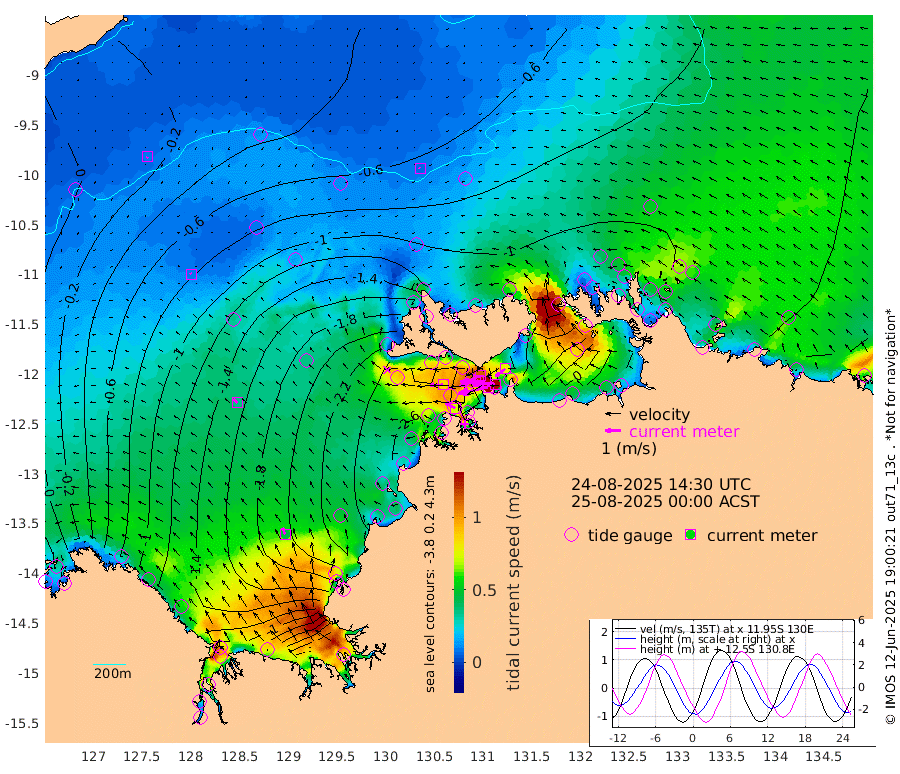 196cm/s -102T +4cm/s rms + 6cm/s 51T. Darwin_C1 52m 149cm/s -89T +4cm/s rms + 7cm/s -161T. Darwin_CW1 22m 125cm/s -107T +4cm/s rms + 8cm/s 61T. Darwin_CW2 34m 77cm/s -127T +3cm/s rms + 9cm/s 98T. Darwin_CW3 22m 162cm/s -91T +5cm/s rms + 7cm/s 88T. Darwin_C3 56m 111cm/s -115T +2cm/s rms + 9cm/s -126T. Darwin_CTbW 22m 8cm/s -51T +9cm/s rms + 2cm/s -110T. NWSLYN 196m 84cm/s -92T +1cm/s rms + 1cm/s -47T. DARBGF 30m 9cm/s -152T +7cm/s rms + 2cm/s -137T. ITFTIS 464m 9cm/s -30T +9cm/s rms + 1cm/s 74T. ITFMHB 146m 44cm/s -24T +4cm/s rms + 1cm/s -134T. ITFJBG 61m 34cm/s -47T +6cm/s rms + 4cm/s 121T. ITFFTB 108m 74cm/s -63T +4cm/s rms + 3cm/s 80T. NRSDAR 19m 72cm Carronade Island 78cm Guy Point 67cm Napier Broome Bay -33cm Lesueur Island -106cm Reveley Island -55cm Rocky Island -128cm Cape Domett -123cm Lacrosse Island -66cm Adolphus Island 34cm Pender Point 89cm Wyndham -95cm The Boxers -129cm Unnamed Shoal -29cm Loxton Shoal -163cm Pelican Island -89cm Calder Shoal -46cm Evans Shoal -60cm Quoin Island -218cm Port Keats -215cm Jones Point -16cm Catfish Island -219cm Cape Scott Offshore -287cm Cape Ford -253cm Anson Bay -74cm Goodrich Bank -229cm Peron Island North -237cm Point Jenny -239cm Native Point -248cm Fish Reef -257cm Tapa Bay -181cm Point Fawcett (Offshore) -257cm Burge Point -256cm Munkunuwa -217cm Beagle A -247cm Parsons Bank -245cm Fenton Patches -52cm Lynedoch Bank -227cm Hancox Shoal Area -250cm Nightcliff -264cm Darwin -262cm Charles Point Patches -147cm Glyde Point -43cm Chambers Bay -19cm Point Stuart -100cm Cape Hotham -34cm Christine Reef -7cm West Alligator Head 39cm East Field Island -55cm Two Hills Bay -158cm Newby Shoal -61cm Camp Point -257cm Medina Inlet South -163cm South Barlow Point -133cm St. Asaph Bay -84cm Cape Van Dieman -92cm Snake Bay -79cm Cache Point 4cm Echo Shoal -79cm Point Jahleel (Off) -93cm Cape Don -84cm Port Essington -82cm Smith Point - West -73cm NW Peacock Island -69cm North Of Jones Shoal -25cm Peacock Island -72cm Point David -80cm D'urville Point -62cm Money Shoal -68cm Copeland Island -88cm Cape Cockburn -74cm One Tree Point -75cm Hogmany Shoal -71cm New Year Island - West -71cm Grant Island -67cm Aurari Bay -57cm Cuthbert Point -71cm North Goulburn Island -58cm Paxie Shoal -43cm Entrance Island -17cm Yabooma Island