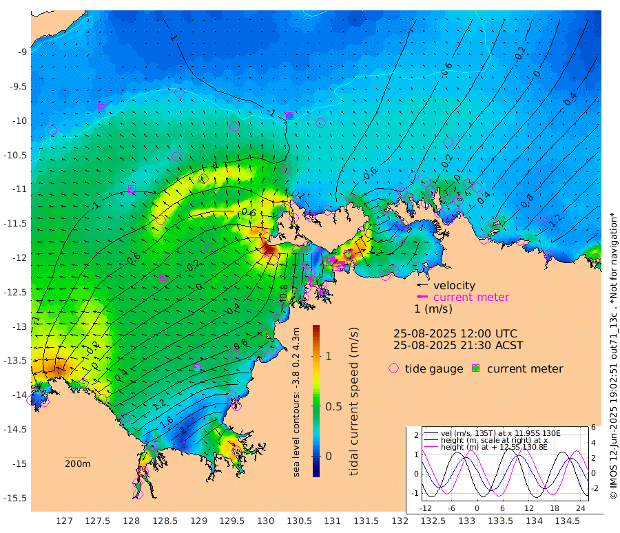 88cm/s 80T +4cm/s rms + 6cm/s 51T. Darwin_C1 52m 71cm/s 90T +4cm/s rms + 7cm/s -161T. Darwin_CW1 22m 56cm/s 70T +4cm/s rms + 8cm/s 61T. Darwin_CW2 34m 64cm/s 45T +3cm/s rms + 9cm/s 98T. Darwin_CW3 22m 99cm/s 90T +5cm/s rms + 7cm/s 88T. Darwin_C3 56m 37cm/s 65T +2cm/s rms + 9cm/s -126T. Darwin_CTbW 22m 9cm/s -17T +9cm/s rms + 2cm/s -110T. NWSLYN 196m 37cm/s -77T +1cm/s rms + 1cm/s -47T. DARBGF 30m 14cm/s -105T +7cm/s rms + 2cm/s -137T. ITFTIS 464m 19cm/s -59T +9cm/s rms + 1cm/s 74T. ITFMHB 146m 28cm/s -58T +4cm/s rms + 1cm/s -134T. ITFJBG 61m 44cm/s -63T +6cm/s rms + 4cm/s 121T. ITFFTB 108m 57cm/s -51T +4cm/s rms + 3cm/s 80T. NRSDAR 19m -62cm Carronade Island -58cm Guy Point -71cm Napier Broome Bay 21cm Lesueur Island 131cm Reveley Island 27cm Rocky Island 230cm Cape Domett 200cm Lacrosse Island 276cm Adolphus Island 267cm Pender Point 275cm Wyndham -69cm The Boxers -62cm Unnamed Shoal -109cm Loxton Shoal 245cm Pelican Island -86cm Calder Shoal -89cm Evans Shoal 368cm Quoin Island 185cm Port Keats 191cm Jones Point 336cm Catfish Island 89cm Cape Scott Offshore 51cm Cape Ford 99cm Anson Bay -84cm Goodrich Bank 84cm Peron Island North 55cm Point Jenny 50cm Native Point 78cm Fish Reef 84cm Tapa Bay -26cm Point Fawcett (Offshore) 108cm Burge Point 72cm Munkunuwa 23cm Beagle A 121cm Parsons Bank 92cm Fenton Patches -78cm Lynedoch Bank 129cm Hancox Shoal Area 118cm Nightcliff 145cm Darwin 107cm Charles Point Patches 142cm Glyde Point 180cm Chambers Bay 198cm Point Stuart 151cm Cape Hotham 155cm Christine Reef 221cm West Alligator Head 236cm East Field Island 145cm Two Hills Bay -28cm Newby Shoal 131cm Camp Point 86cm Medina Inlet South -42cm South Barlow Point -64cm St. Asaph Bay -84cm Cape Van Dieman -78cm Snake Bay -71cm Cache Point -116cm Echo Shoal -41cm Point Jahleel (Off) 29cm Cape Don -23cm Port Essington -28cm Smith Point - West -24cm NW Peacock Island -43cm North Of Jones Shoal -12cm Peacock Island 21cm Point David -19cm D'urville Point -19cm Money Shoal 29cm Copeland Island 40cm Cape Cockburn 17cm One Tree Point 45cm Hogmany Shoal 15cm New Year Island - West 25cm Grant Island 60cm Aurari Bay 94cm Cuthbert Point 61cm North Goulburn Island 116cm Paxie Shoal 147cm Entrance Island 206cm Yabooma Island