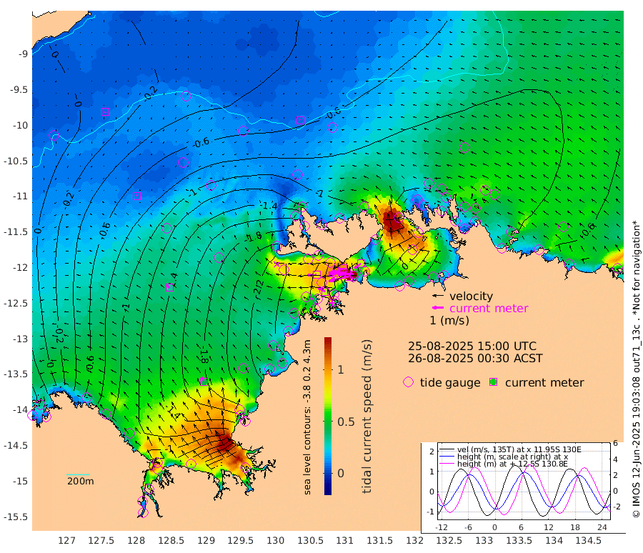 181cm/s -102T +4cm/s rms + 6cm/s 51T. Darwin_C1 52m 140cm/s -89T +4cm/s rms + 7cm/s -161T. Darwin_CW1 22m 125cm/s -108T +4cm/s rms + 8cm/s 61T. Darwin_CW2 34m 71cm/s -126T +3cm/s rms + 9cm/s 98T. Darwin_CW3 22m 161cm/s -91T +5cm/s rms + 7cm/s 88T. Darwin_C3 56m 103cm/s -115T +2cm/s rms + 9cm/s -126T. Darwin_CTbW 22m 6cm/s -49T +9cm/s rms + 2cm/s -110T. NWSLYN 196m 82cm/s -91T +1cm/s rms + 1cm/s -47T. DARBGF 30m 7cm/s -150T +7cm/s rms + 2cm/s -137T. ITFTIS 464m 8cm/s -26T +9cm/s rms + 1cm/s 74T. ITFMHB 146m 44cm/s -24T +4cm/s rms + 1cm/s -134T. ITFJBG 61m 33cm/s -45T +6cm/s rms + 4cm/s 121T. ITFFTB 108m 71cm/s -63T +4cm/s rms + 3cm/s 80T. NRSDAR 19m 96cm Carronade Island 102cm Guy Point 92cm Napier Broome Bay -10cm Lesueur Island -86cm Reveley Island -49cm Rocky Island -106cm Cape Domett -99cm Lacrosse Island -48cm Adolphus Island 57cm Pender Point 115cm Wyndham -81cm The Boxers -116cm Unnamed Shoal -20cm Loxton Shoal -144cm Pelican Island -77cm Calder Shoal -38cm Evans Shoal -38cm Quoin Island -200cm Port Keats -196cm Jones Point 24cm Catfish Island -202cm Cape Scott Offshore -264cm Cape Ford -236cm Anson Bay -67cm Goodrich Bank -211cm Peron Island North -220cm Point Jenny -222cm Native Point -230cm Fish Reef -241cm Tapa Bay -165cm Point Fawcett (Offshore) -238cm Burge Point -243cm Munkunuwa -201cm Beagle A -233cm Parsons Bank -229cm Fenton Patches -46cm Lynedoch Bank -213cm Hancox Shoal Area -234cm Nightcliff -248cm Darwin -246cm Charles Point Patches -130cm Glyde Point -24cm Chambers Bay 3cm Point Stuart -81cm Cape Hotham -16cm Christine Reef 16cm West Alligator Head 63cm East Field Island -36cm Two Hills Bay -140cm Newby Shoal -44cm Camp Point -241cm Medina Inlet South -154cm South Barlow Point -123cm St. Asaph Bay -77cm Cape Van Dieman -86cm Snake Bay -69cm Cache Point 14cm Echo Shoal -70cm Point Jahleel (Off) -81cm Cape Don -75cm Port Essington -75cm Smith Point - West -65cm NW Peacock Island -61cm North Of Jones Shoal -22cm Peacock Island -65cm Point David -73cm D'urville Point -54cm Money Shoal -60cm Copeland Island -75cm Cape Cockburn -65cm One Tree Point -63cm Hogmany Shoal -62cm New Year Island - West -62cm Grant Island -59cm Aurari Bay -47cm Cuthbert Point -61cm North Goulburn Island -45cm Paxie Shoal -33cm Entrance Island -5cm Yabooma Island