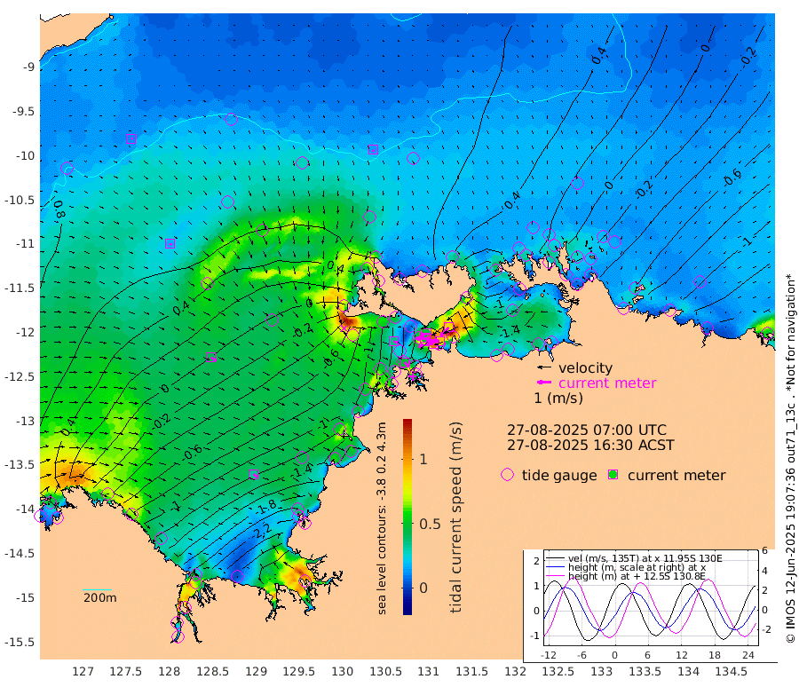 109cm/s -101T +4cm/s rms + 6cm/s 51T. Darwin_C1 52m 92cm/s -92T +4cm/s rms + 7cm/s -161T. Darwin_CW1 22m 49cm/s -105T +4cm/s rms + 8cm/s 61T. Darwin_CW2 34m 84cm/s -138T +3cm/s rms + 9cm/s 98T. Darwin_CW3 22m 113cm/s -90T +5cm/s rms + 7cm/s 88T. Darwin_C3 56m 47cm/s -115T +2cm/s rms + 9cm/s -126T. Darwin_CTbW 22m 13cm/s 163T +9cm/s rms + 2cm/s -110T. NWSLYN 196m 36cm/s 105T +1cm/s rms + 1cm/s -47T. DARBGF 30m 12cm/s 75T +7cm/s rms + 2cm/s -137T. ITFTIS 464m 16cm/s 122T +9cm/s rms + 1cm/s 74T. ITFMHB 146m 33cm/s 123T +4cm/s rms + 1cm/s -134T. ITFJBG 61m 43cm/s 118T +6cm/s rms + 4cm/s 121T. ITFFTB 108m 47cm/s 134T +4cm/s rms + 3cm/s 80T. NRSDAR 19m 8cm Carronade Island 9cm Guy Point 7cm Napier Broome Bay -69cm Lesueur Island -155cm Reveley Island -91cm Rocky Island -263cm Cape Domett -232cm Lacrosse Island -317cm Adolphus Island -307cm Pender Point -323cm Wyndham 28cm The Boxers 30cm Unnamed Shoal 69cm Loxton Shoal -263cm Pelican Island 47cm Calder Shoal 59cm Evans Shoal -405cm Quoin Island -206cm Port Keats -203cm Jones Point -395cm Catfish Island -108cm Cape Scott Offshore -48cm Cape Ford -113cm Anson Bay 58cm Goodrich Bank -104cm Peron Island North -74cm Point Jenny -68cm Native Point -99cm Fish Reef -97cm Tapa Bay 2cm Point Fawcett (Offshore) -125cm Burge Point -82cm Munkunuwa -52cm Beagle A -130cm Parsons Bank -115cm Fenton Patches 51cm Lynedoch Bank -137cm Hancox Shoal Area -135cm Nightcliff -159cm Darwin -122cm Charles Point Patches -160cm Glyde Point -196cm Chambers Bay -215cm Point Stuart -165cm Cape Hotham -175cm Christine Reef -239cm West Alligator Head -258cm East Field Island -164cm Two Hills Bay -22cm Newby Shoal -146cm Camp Point -104cm Medina Inlet South 17cm South Barlow Point 39cm St. Asaph Bay 61cm Cape Van Dieman 52cm Snake Bay 46cm Cache Point 75cm Echo Shoal 18cm Point Jahleel (Off) -48cm Cape Don 6cm Port Essington 8cm Smith Point - West 7cm NW Peacock Island 22cm North Of Jones Shoal 5cm Peacock Island -22cm Point David 4cm D'urville Point 7cm Money Shoal -28cm Copeland Island -48cm Cape Cockburn -25cm One Tree Point -40cm Hogmany Shoal -25cm New Year Island - West -31cm Grant Island -62cm Aurari Bay -92cm Cuthbert Point -60cm North Goulburn Island -103cm Paxie Shoal -131cm Entrance Island -175cm Yabooma Island