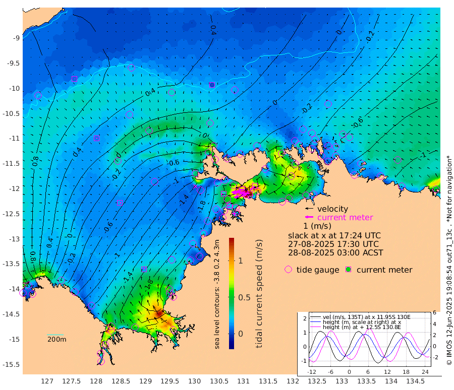 155cm/s -101T +4cm/s rms + 6cm/s 51T. Darwin_C1 52m 125cm/s -90T +4cm/s rms + 7cm/s -161T. Darwin_CW1 22m 106cm/s -106T +4cm/s rms + 8cm/s 61T. Darwin_CW2 34m 73cm/s -133T +3cm/s rms + 9cm/s 98T. Darwin_CW3 22m 168cm/s -91T +5cm/s rms + 7cm/s 88T. Darwin_C3 56m 84cm/s -115T +2cm/s rms + 9cm/s -126T. Darwin_CTbW 22m 3cm/s 169T +9cm/s rms + 2cm/s -110T. NWSLYN 196m 28cm/s -102T +1cm/s rms + 1cm/s -47T. DARBGF 30m 7cm/s 97T +7cm/s rms + 2cm/s -137T. ITFTIS 464m 9cm/s 104T +9cm/s rms + 1cm/s 74T. ITFMHB 146m 15cm/s 26T +4cm/s rms + 1cm/s -134T. ITFJBG 61m 14cm/s 84T +6cm/s rms + 4cm/s 121T. ITFFTB 108m 22cm/s -88T +4cm/s rms + 3cm/s 80T. NRSDAR 19m 127cm Carronade Island 127cm Guy Point 126cm Napier Broome Bay 10cm Lesueur Island -117cm Reveley Island -63cm Rocky Island -191cm Cape Domett -161cm Lacrosse Island -191cm Adolphus Island -123cm Pender Point -88cm Wyndham 8cm The Boxers -18cm Unnamed Shoal 65cm Loxton Shoal -228cm Pelican Island 24cm Calder Shoal 44cm Evans Shoal -246cm Quoin Island -219cm Port Keats -220cm Jones Point -179cm Catfish Island -161cm Cape Scott Offshore -141cm Cape Ford -189cm Anson Bay 21cm Goodrich Bank -159cm Peron Island North -147cm Point Jenny -148cm Native Point -164cm Fish Reef -181cm Tapa Bay -63cm Point Fawcett (Offshore) -187cm Burge Point -178cm Munkunuwa -112cm Beagle A -201cm Parsons Bank -173cm Fenton Patches 29cm Lynedoch Bank -195cm Hancox Shoal Area -197cm Nightcliff -224cm Darwin -198cm Charles Point Patches -149cm Glyde Point -108cm Chambers Bay -100cm Point Stuart -121cm Cape Hotham -88cm Christine Reef -105cm West Alligator Head -84cm East Field Island -94cm Two Hills Bay -43cm Newby Shoal -91cm Camp Point -183cm Medina Inlet South -55cm South Barlow Point -20cm St. Asaph Bay 17cm Cape Van Dieman 5cm Snake Bay 17cm Cache Point 94cm Echo Shoal -4cm Point Jahleel (Off) -53cm Cape Don -20cm Port Essington -18cm Smith Point - West -14cm NW Peacock Island 3cm North Of Jones Shoal -1cm Peacock Island -42cm Point David -22cm D'urville Point -9cm Money Shoal -44cm Copeland Island -52cm Cape Cockburn -38cm One Tree Point -51cm Hogmany Shoal -36cm New Year Island - West -43cm Grant Island -62cm Aurari Bay -77cm Cuthbert Point -61cm North Goulburn Island -87cm Paxie Shoal -100cm Entrance Island -116cm Yabooma Island