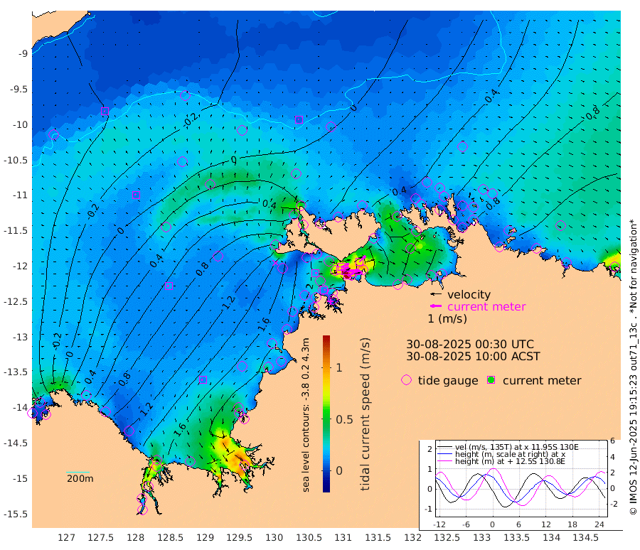 136cm/s 78T +4cm/s rms + 6cm/s 51T. Darwin_C1 52m 92cm/s 90T +4cm/s rms + 7cm/s -161T. Darwin_CW1 22m 83cm/s 74T +4cm/s rms + 8cm/s 61T. Darwin_CW2 34m 81cm/s 44T +3cm/s rms + 9cm/s 98T. Darwin_CW3 22m 137cm/s 89T +5cm/s rms + 7cm/s 88T. Darwin_C3 56m 72cm/s 65T +2cm/s rms + 9cm/s -126T. Darwin_CTbW 22m 6cm/s 0T +9cm/s rms + 2cm/s -110T. NWSLYN 196m 16cm/s 68T +1cm/s rms + 1cm/s -47T. DARBGF 30m 6cm/s -65T +7cm/s rms + 2cm/s -137T. ITFTIS 464m 10cm/s -43T +9cm/s rms + 1cm/s 74T. ITFMHB 146m 12cm/s -108T +4cm/s rms + 1cm/s -134T. ITFJBG 61m 16cm/s -72T +6cm/s rms + 4cm/s 121T. ITFFTB 108m 12cm/s 73T +4cm/s rms + 3cm/s 80T. NRSDAR 19m -64cm Carronade Island -66cm Guy Point -60cm Napier Broome Bay 29cm Lesueur Island 111cm Reveley Island 59cm Rocky Island 179cm Cape Domett 155cm Lacrosse Island 195cm Adolphus Island 134cm Pender Point 120cm Wyndham 14cm The Boxers 37cm Unnamed Shoal -31cm Loxton Shoal 195cm Pelican Island 2cm Calder Shoal -19cm Evans Shoal 237cm Quoin Island 193cm Port Keats 179cm Jones Point 168cm Catfish Island 138cm Cape Scott Offshore 88cm Cape Ford 160cm Anson Bay -1cm Goodrich Bank 139cm Peron Island North 124cm Point Jenny 124cm Native Point 137cm Fish Reef 148cm Tapa Bay 58cm Point Fawcett (Offshore) 163cm Burge Point 140cm Munkunuwa 102cm Beagle A 173cm Parsons Bank 152cm Fenton Patches -2cm Lynedoch Bank 168cm Hancox Shoal Area 177cm Nightcliff 193cm Darwin 168cm Charles Point Patches 139cm Glyde Point 112cm Chambers Bay 105cm Point Stuart 120cm Cape Hotham 101cm Christine Reef 111cm West Alligator Head 99cm East Field Island 101cm Two Hills Bay 70cm Newby Shoal 98cm Camp Point 154cm Medina Inlet South 59cm South Barlow Point 27cm St. Asaph Bay 1cm Cape Van Dieman 17cm Snake Bay 4cm Cache Point -54cm Echo Shoal 22cm Point Jahleel (Off) 66cm Cape Don 37cm Port Essington 36cm Smith Point - West 36cm NW Peacock Island 24cm North Of Jones Shoal 11cm Peacock Island 61cm Point David 43cm D'urville Point 36cm Money Shoal 63cm Copeland Island 85cm Cape Cockburn 61cm One Tree Point 68cm Hogmany Shoal 62cm New Year Island - West 66cm Grant Island 83cm Aurari Bay 96cm Cuthbert Point 83cm North Goulburn Island 102cm Paxie Shoal 115cm Entrance Island 132cm Yabooma Island