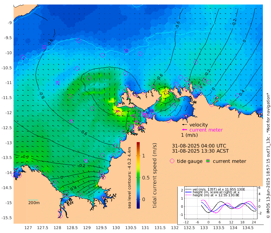 37cm/s -103T +4cm/s rms + 6cm/s 51T. Darwin_C1 52m 19cm/s -82T +4cm/s rms + 7cm/s -161T. Darwin_CW1 22m 33cm/s -106T +4cm/s rms + 8cm/s 61T. Darwin_CW2 34m 4cm/s -62T +3cm/s rms + 9cm/s 98T. Darwin_CW3 22m 30cm/s -96T +5cm/s rms + 7cm/s 88T. Darwin_C3 56m 21cm/s -116T +2cm/s rms + 9cm/s -126T. Darwin_CTbW 22m 7cm/s -43T +9cm/s rms + 2cm/s -110T. NWSLYN 196m 51cm/s -88T +1cm/s rms + 1cm/s -47T. DARBGF 30m 7cm/s -106T +7cm/s rms + 2cm/s -137T. ITFTIS 464m 16cm/s -28T +9cm/s rms + 1cm/s 74T. ITFMHB 146m 29cm/s -29T +4cm/s rms + 1cm/s -134T. ITFJBG 61m 33cm/s -52T +6cm/s rms + 4cm/s 121T. ITFFTB 108m 56cm/s -57T +4cm/s rms + 3cm/s 80T. NRSDAR 19m 13cm Carronade Island 8cm Guy Point 19cm Napier Broome Bay -9cm Lesueur Island -9cm Reveley Island -2cm Rocky Island 22cm Cape Domett 16cm Lacrosse Island 64cm Adolphus Island 121cm Pender Point 158cm Wyndham -70cm The Boxers -67cm Unnamed Shoal -70cm Loxton Shoal 11cm Pelican Island -86cm Calder Shoal -71cm Evans Shoal 124cm Quoin Island -42cm Port Keats -30cm Jones Point 236cm Catfish Island -69cm Cape Scott Offshore -195cm Cape Ford -76cm Anson Bay -79cm Goodrich Bank -80cm Peron Island North -98cm Point Jenny -102cm Native Point -88cm Fish Reef -99cm Tapa Bay -101cm Point Fawcett (Offshore) -91cm Burge Point -108cm Munkunuwa -103cm Beagle A -79cm Parsons Bank -90cm Fenton Patches -61cm Lynedoch Bank -68cm Hancox Shoal Area -78cm Nightcliff -74cm Darwin -91cm Charles Point Patches -8cm Glyde Point 67cm Chambers Bay 92cm Point Stuart 21cm Cape Hotham 52cm Christine Reef 108cm West Alligator Head 139cm East Field Island 49cm Two Hills Bay -90cm Newby Shoal 33cm Camp Point -94cm Medina Inlet South -103cm South Barlow Point -101cm St. Asaph Bay -83cm Cape Van Dieman -80cm Snake Bay -73cm Cache Point -53cm Echo Shoal -59cm Point Jahleel (Off) -25cm Cape Don -48cm Port Essington -52cm Smith Point - West -45cm NW Peacock Island -49cm North Of Jones Shoal -15cm Peacock Island -18cm Point David -45cm D'urville Point -33cm Money Shoal -13cm Copeland Island -13cm Cape Cockburn -17cm One Tree Point -14cm Hogmany Shoal -15cm New Year Island - West -16cm Grant Island 14cm Aurari Bay 31cm Cuthbert Point 5cm North Goulburn Island 44cm Paxie Shoal 58cm Entrance Island 98cm Yabooma Island