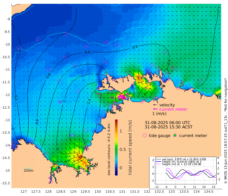 149cm/s -102T +4cm/s rms + 6cm/s 51T. Darwin_C1 52m 92cm/s -89T +4cm/s rms + 7cm/s -161T. Darwin_CW1 22m 91cm/s -108T +4cm/s rms + 8cm/s 61T. Darwin_CW2 34m 59cm/s -126T +3cm/s rms + 9cm/s 98T. Darwin_CW3 22m 119cm/s -92T +5cm/s rms + 7cm/s 88T. Darwin_C3 56m 89cm/s -115T +2cm/s rms + 9cm/s -126T. Darwin_CTbW 22m 5cm/s -84T +9cm/s rms + 2cm/s -110T. NWSLYN 196m 45cm/s -95T +1cm/s rms + 1cm/s -47T. DARBGF 30m 2cm/s -156T +7cm/s rms + 2cm/s -137T. ITFTIS 464m 10cm/s -2T +9cm/s rms + 1cm/s 74T. ITFMHB 146m 20cm/s -11T +4cm/s rms + 1cm/s -134T. ITFJBG 61m 15cm/s -37T +6cm/s rms + 4cm/s 121T. ITFFTB 108m 34cm/s -69T +4cm/s rms + 3cm/s 80T. NRSDAR 19m 22cm Carronade Island 15cm Guy Point 23cm Napier Broome Bay -56cm Lesueur Island -106cm Reveley Island -49cm Rocky Island -131cm Cape Domett -121cm Lacrosse Island -113cm Adolphus Island -38cm Pender Point -7cm Wyndham -73cm The Boxers -82cm Unnamed Shoal -43cm Loxton Shoal -149cm Pelican Island -76cm Calder Shoal -49cm Evans Shoal -106cm Quoin Island -174cm Port Keats -154cm Jones Point 8cm Catfish Island -159cm Cape Scott Offshore -199cm Cape Ford -176cm Anson Bay -64cm Goodrich Bank -162cm Peron Island North -165cm Point Jenny -167cm Native Point -161cm Fish Reef -183cm Tapa Bay -122cm Point Fawcett (Offshore) -179cm Burge Point -177cm Munkunuwa -149cm Beagle A -179cm Parsons Bank -173cm Fenton Patches -49cm Lynedoch Bank -174cm Hancox Shoal Area -187cm Nightcliff -190cm Darwin -186cm Charles Point Patches -111cm Glyde Point -47cm Chambers Bay -24cm Point Stuart -80cm Cape Hotham -51cm Christine Reef -19cm West Alligator Head 10cm East Field Island -50cm Two Hills Bay -121cm Newby Shoal -56cm Camp Point -177cm Medina Inlet South -118cm South Barlow Point -99cm St. Asaph Bay -67cm Cape Van Dieman -75cm Snake Bay -64cm Cache Point -17cm Echo Shoal -67cm Point Jahleel (Off) -71cm Cape Don -64cm Port Essington -69cm Smith Point - West -63cm NW Peacock Island -59cm North Of Jones Shoal -20cm Peacock Island -60cm Point David -67cm D'urville Point -51cm Money Shoal -57cm Copeland Island -70cm Cape Cockburn -58cm One Tree Point -69cm Hogmany Shoal -59cm New Year Island - West -62cm Grant Island -51cm Aurari Bay -47cm Cuthbert Point -57cm North Goulburn Island -44cm Paxie Shoal -41cm Entrance Island -22cm Yabooma Island