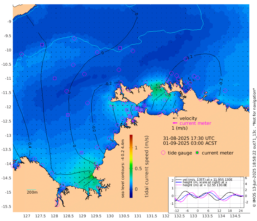 8cm/s -109T +4cm/s rms + 6cm/s 51T. Darwin_C1 52m 23cm/s 91T +4cm/s rms + 7cm/s -161T. Darwin_CW1 22m 22cm/s -113T +4cm/s rms + 8cm/s 61T. Darwin_CW2 34m 8cm/s -1T +3cm/s rms + 9cm/s 98T. Darwin_CW3 22m 12cm/s -100T +5cm/s rms + 7cm/s 88T. Darwin_C3 56m 4cm/s -139T +2cm/s rms + 9cm/s -126T. Darwin_CTbW 22m 1cm/s 66T +9cm/s rms + 2cm/s -110T. NWSLYN 196m 15cm/s -90T +1cm/s rms + 1cm/s -47T. DARBGF 30m 1cm/s 151T +7cm/s rms + 2cm/s -137T. ITFTIS 464m 2cm/s 152T +9cm/s rms + 1cm/s 74T. ITFMHB 146m 13cm/s -16T +4cm/s rms + 1cm/s -134T. ITFJBG 61m 7cm/s -29T +6cm/s rms + 4cm/s 121T. ITFFTB 108m 15cm/s -65T +4cm/s rms + 3cm/s 80T. NRSDAR 19m 101cm Carronade Island 103cm Guy Point 105cm Napier Broome Bay 78cm Lesueur Island 37cm Reveley Island 26cm Rocky Island 47cm Cape Domett 56cm Lacrosse Island 59cm Adolphus Island 102cm Pender Point 130cm Wyndham 23cm The Boxers 5cm Unnamed Shoal 23cm Loxton Shoal 35cm Pelican Island 15cm Calder Shoal 13cm Evans Shoal 85cm Quoin Island 3cm Port Keats 7cm Jones Point 193cm Catfish Island 2cm Cape Scott Offshore -32cm Cape Ford -11cm Anson Bay -1cm Goodrich Bank -11cm Peron Island North -14cm Point Jenny -17cm Native Point -12cm Fish Reef -19cm Tapa Bay -1cm Point Fawcett (Offshore) -26cm Burge Point -37cm Munkunuwa -9cm Beagle A -38cm Parsons Bank -18cm Fenton Patches 3cm Lynedoch Bank -23cm Hancox Shoal Area -22cm Nightcliff -27cm Darwin -22cm Charles Point Patches 13cm Glyde Point 54cm Chambers Bay 64cm Point Stuart 26cm Cape Hotham 46cm Christine Reef 75cm West Alligator Head 95cm East Field Island 41cm Two Hills Bay 7cm Newby Shoal 35cm Camp Point -25cm Medina Inlet South -22cm South Barlow Point -6cm St. Asaph Bay -4cm Cape Van Dieman -10cm Snake Bay 5cm Cache Point 42cm Echo Shoal 3cm Point Jahleel (Off) 4cm Cape Don -7cm Port Essington -7cm Smith Point - West -9cm NW Peacock Island -1cm North Of Jones Shoal -2cm Peacock Island -17cm Point David -13cm D'urville Point -9cm Money Shoal -17cm Copeland Island -19cm Cape Cockburn -13cm One Tree Point -10cm Hogmany Shoal -10cm New Year Island - West -15cm Grant Island -10cm Aurari Bay -10cm Cuthbert Point -14cm North Goulburn Island -4cm Paxie Shoal -12cm Entrance Island -8cm Yabooma Island