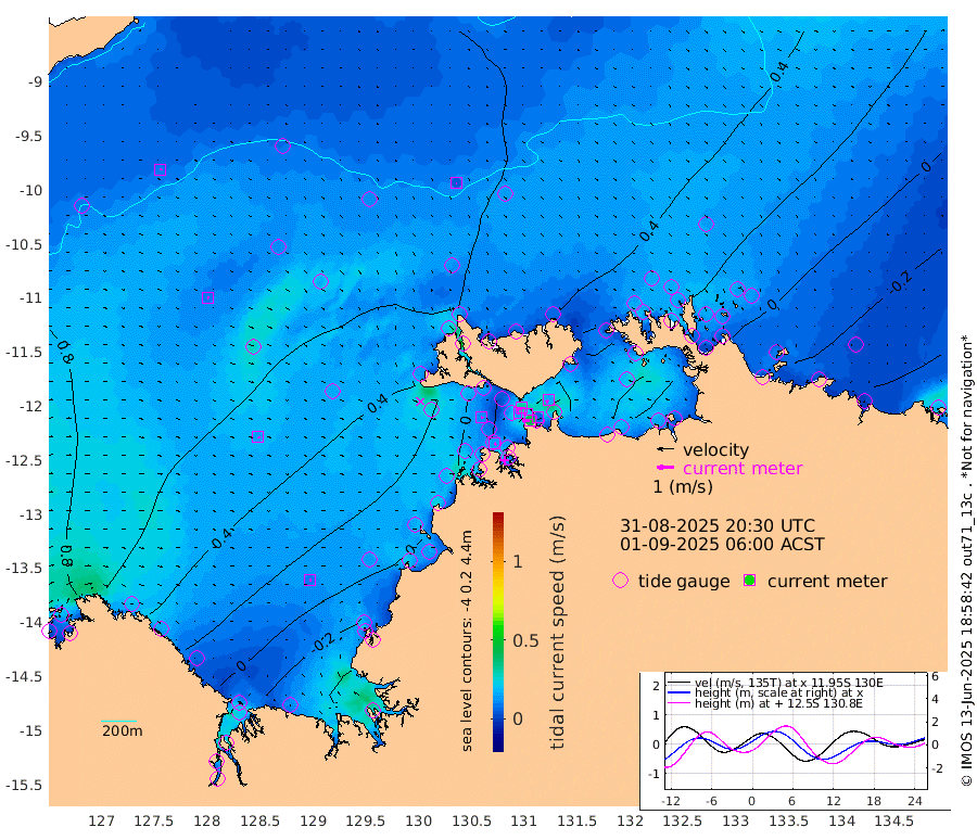 41cm/s -101T +4cm/s rms + 6cm/s 51T. Darwin_C1 52m 8cm/s -92T +4cm/s rms + 7cm/s -161T. Darwin_CW1 22m 14cm/s -109T +4cm/s rms + 8cm/s 61T. Darwin_CW2 34m 17cm/s -131T +3cm/s rms + 9cm/s 98T. Darwin_CW3 22m 20cm/s -91T +5cm/s rms + 7cm/s 88T. Darwin_C3 56m 31cm/s -115T +2cm/s rms + 9cm/s -126T. Darwin_CTbW 22m 5cm/s 112T +9cm/s rms + 2cm/s -110T. NWSLYN 196m 13cm/s 96T +1cm/s rms + 1cm/s -47T. DARBGF 30m 9cm/s 41T +7cm/s rms + 2cm/s -137T. ITFTIS 464m 8cm/s 74T +9cm/s rms + 1cm/s 74T. ITFMHB 146m 8cm/s 103T +4cm/s rms + 1cm/s -134T. ITFJBG 61m 15cm/s 93T +6cm/s rms + 4cm/s 121T. ITFFTB 108m 14cm/s 140T +4cm/s rms + 3cm/s 80T. NRSDAR 19m 72cm Carronade Island 72cm Guy Point 73cm Napier Broome Bay 63cm Lesueur Island 11cm Reveley Island 0cm Rocky Island -11cm Cape Domett 1cm Lacrosse Island -35cm Adolphus Island -28cm Pender Point -33cm Wyndham 70cm The Boxers 66cm Unnamed Shoal 77cm Loxton Shoal -25cm Pelican Island 78cm Calder Shoal 65cm Evans Shoal -71cm Quoin Island 0cm Port Keats 3cm Jones Point -95cm Catfish Island 19cm Cape Scott Offshore 122cm Cape Ford 13cm Anson Bay 64cm Goodrich Bank 27cm Peron Island North 32cm Point Jenny 34cm Native Point 32cm Fish Reef 26cm Tapa Bay 59cm Point Fawcett (Offshore) 28cm Burge Point 24cm Munkunuwa 49cm Beagle A 7cm Parsons Bank 28cm Fenton Patches 57cm Lynedoch Bank 2cm Hancox Shoal Area 6cm Nightcliff 10cm Darwin 27cm Charles Point Patches -1cm Glyde Point -27cm Chambers Bay -31cm Point Stuart -7cm Cape Hotham -24cm Christine Reef -38cm West Alligator Head -41cm East Field Island -16cm Two Hills Bay 67cm Newby Shoal -4cm Camp Point 26cm Medina Inlet South 54cm South Barlow Point 64cm St. Asaph Bay 64cm Cape Van Dieman 61cm Snake Bay 62cm Cache Point 78cm Echo Shoal 48cm Point Jahleel (Off) 20cm Cape Don 37cm Port Essington 33cm Smith Point - West 32cm NW Peacock Island 41cm North Of Jones Shoal 13cm Peacock Island 13cm Point David 28cm D'urville Point 32cm Money Shoal 7cm Copeland Island 13cm Cape Cockburn 15cm One Tree Point 14cm Hogmany Shoal 17cm New Year Island - West 12cm Grant Island -8cm Aurari Bay -22cm Cuthbert Point -2cm North Goulburn Island -25cm Paxie Shoal -40cm Entrance Island -66cm Yabooma Island