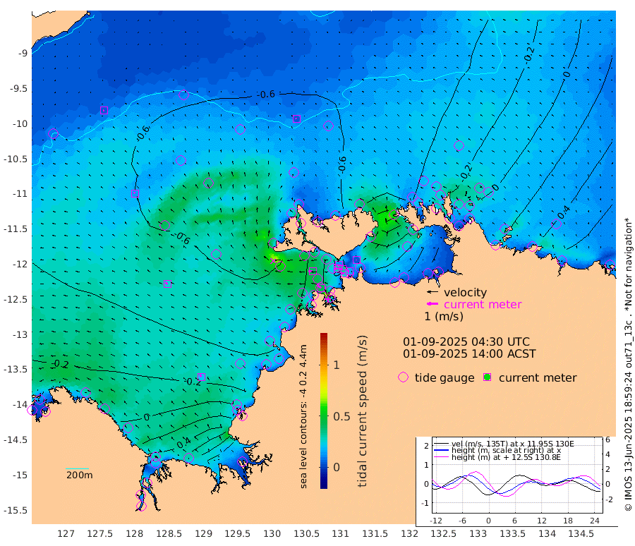 26cm/s -103T +4cm/s rms + 6cm/s 51T. Darwin_C1 52m 16cm/s -80T +4cm/s rms + 7cm/s -161T. Darwin_CW1 22m 29cm/s -106T +4cm/s rms + 8cm/s 61T. Darwin_CW2 34m 4cm/s -20T +3cm/s rms + 9cm/s 98T. Darwin_CW3 22m 32cm/s -94T +5cm/s rms + 7cm/s 88T. Darwin_C3 56m 12cm/s -116T +2cm/s rms + 9cm/s -126T. Darwin_CTbW 22m 6cm/s -44T +9cm/s rms + 2cm/s -110T. NWSLYN 196m 40cm/s -89T +1cm/s rms + 1cm/s -47T. DARBGF 30m 6cm/s -102T +7cm/s rms + 2cm/s -137T. ITFTIS 464m 14cm/s -24T +9cm/s rms + 1cm/s 74T. ITFMHB 146m 21cm/s -27T +4cm/s rms + 1cm/s -134T. ITFJBG 61m 25cm/s -52T +6cm/s rms + 4cm/s 121T. ITFFTB 108m 42cm/s -57T +4cm/s rms + 3cm/s 80T. NRSDAR 19m 3cm Carronade Island -3cm Guy Point 6cm Napier Broome Bay -14cm Lesueur Island -16cm Reveley Island -21cm Rocky Island 3cm Cape Domett 3cm Lacrosse Island 35cm Adolphus Island 78cm Pender Point 110cm Wyndham -63cm The Boxers -52cm Unnamed Shoal -67cm Loxton Shoal -2cm Pelican Island -77cm Calder Shoal -65cm Evans Shoal 85cm Quoin Island -43cm Port Keats -32cm Jones Point 194cm Catfish Island -59cm Cape Scott Offshore -184cm Cape Ford -62cm Anson Bay -70cm Goodrich Bank -70cm Peron Island North -84cm Point Jenny -87cm Native Point -77cm Fish Reef -85cm Tapa Bay -85cm Point Fawcett (Offshore) -81cm Burge Point -94cm Munkunuwa -88cm Beagle A -70cm Parsons Bank -79cm Fenton Patches -54cm Lynedoch Bank -59cm Hancox Shoal Area -64cm Nightcliff -66cm Darwin -80cm Charles Point Patches -10cm Glyde Point 53cm Chambers Bay 72cm Point Stuart 15cm Cape Hotham 39cm Christine Reef 85cm West Alligator Head 110cm East Field Island 38cm Two Hills Bay -80cm Newby Shoal 25cm Camp Point -82cm Medina Inlet South -88cm South Barlow Point -86cm St. Asaph Bay -72cm Cape Van Dieman -68cm Snake Bay -63cm Cache Point -50cm Echo Shoal -51cm Point Jahleel (Off) -23cm Cape Don -41cm Port Essington -44cm Smith Point - West -38cm NW Peacock Island -41cm North Of Jones Shoal -12cm Peacock Island -11cm Point David -37cm D'urville Point -26cm Money Shoal -6cm Copeland Island -6cm Cape Cockburn -11cm One Tree Point -9cm Hogmany Shoal -9cm New Year Island - West -10cm Grant Island 20cm Aurari Bay 31cm Cuthbert Point 9cm North Goulburn Island 45cm Paxie Shoal 54cm Entrance Island 92cm Yabooma Island