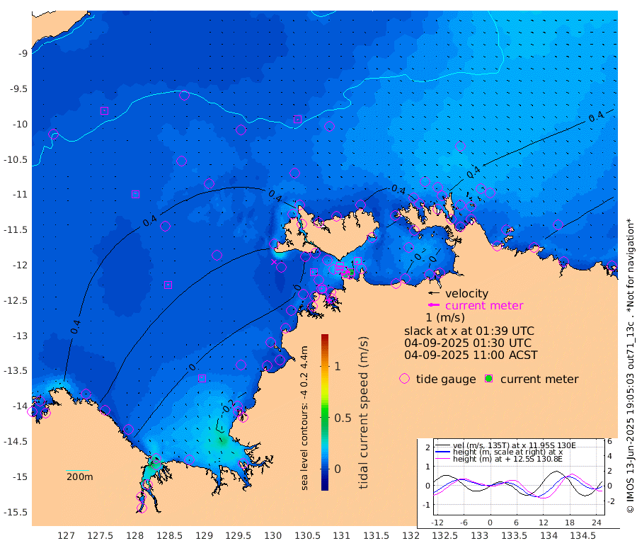 37cm/s -101T +4cm/s rms + 6cm/s 51T. Darwin_C1 52m 44cm/s -90T +4cm/s rms + 7cm/s -161T. Darwin_CW1 22m 20cm/s -110T +4cm/s rms + 8cm/s 61T. Darwin_CW2 34m 21cm/s -138T +3cm/s rms + 9cm/s 98T. Darwin_CW3 22m 21cm/s -92T +5cm/s rms + 7cm/s 88T. Darwin_C3 56m 21cm/s -113T +2cm/s rms + 9cm/s -126T. Darwin_CTbW 22m 5cm/s 132T +9cm/s rms + 2cm/s -110T. NWSLYN 196m 11cm/s -91T +1cm/s rms + 1cm/s -47T. DARBGF 30m 5cm/s 10T +7cm/s rms + 2cm/s -137T. ITFTIS 464m 8cm/s 15T +9cm/s rms + 1cm/s 74T. ITFMHB 146m 12cm/s -14T +4cm/s rms + 1cm/s -134T. ITFJBG 61m 8cm/s -11T +6cm/s rms + 4cm/s 121T. ITFFTB 108m 12cm/s -63T +4cm/s rms + 3cm/s 80T. NRSDAR 19m 46cm Carronade Island 49cm Guy Point 51cm Napier Broome Bay 28cm Lesueur Island -4cm Reveley Island -5cm Rocky Island -24cm Cape Domett -25cm Lacrosse Island -25cm Adolphus Island -1cm Pender Point 3cm Wyndham 34cm The Boxers 39cm Unnamed Shoal 50cm Loxton Shoal -33cm Pelican Island 35cm Calder Shoal 42cm Evans Shoal -44cm Quoin Island -37cm Port Keats -32cm Jones Point -64cm Catfish Island -23cm Cape Scott Offshore 13cm Cape Ford -30cm Anson Bay 41cm Goodrich Bank -14cm Peron Island North -20cm Point Jenny -17cm Native Point -27cm Fish Reef -22cm Tapa Bay 8cm Point Fawcett (Offshore) -28cm Burge Point -25cm Munkunuwa -18cm Beagle A -20cm Parsons Bank -32cm Fenton Patches 42cm Lynedoch Bank -22cm Hancox Shoal Area -39cm Nightcliff -26cm Darwin -17cm Charles Point Patches -15cm Glyde Point -17cm Chambers Bay -12cm Point Stuart -11cm Cape Hotham -12cm Christine Reef -17cm West Alligator Head -17cm East Field Island -3cm Two Hills Bay 13cm Newby Shoal -4cm Camp Point -23cm Medina Inlet South 17cm South Barlow Point 21cm St. Asaph Bay 40cm Cape Van Dieman 43cm Snake Bay 39cm Cache Point 44cm Echo Shoal 33cm Point Jahleel (Off) 20cm Cape Don 37cm Port Essington 35cm Smith Point - West 41cm NW Peacock Island 36cm North Of Jones Shoal 13cm Peacock Island 44cm Point David 39cm D'urville Point 42cm Money Shoal 40cm Copeland Island 49cm Cape Cockburn 40cm One Tree Point 61cm Hogmany Shoal 42cm New Year Island - West 46cm Grant Island 28cm Aurari Bay 35cm Cuthbert Point 37cm North Goulburn Island 30cm Paxie Shoal 29cm Entrance Island 17cm Yabooma Island