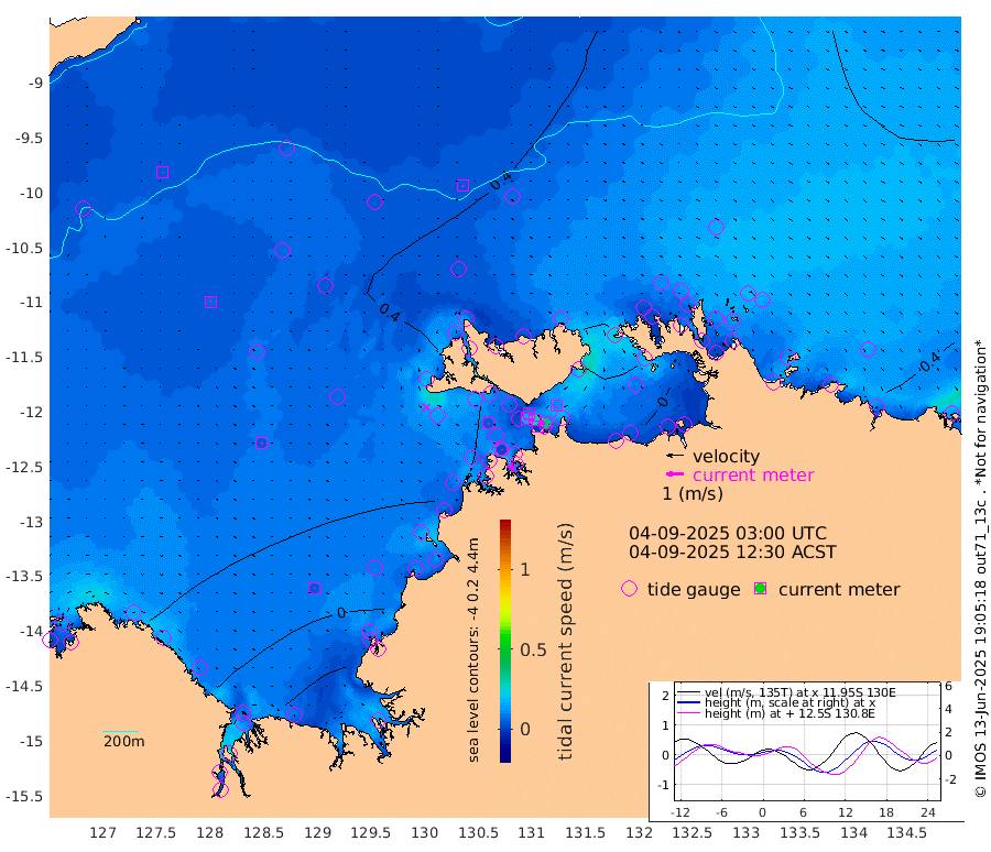 1cm/s 49T +4cm/s rms + 6cm/s 51T. Darwin_C1 52m 35cm/s -90T +4cm/s rms + 7cm/s -161T. Darwin_CW1 22m 16cm/s -110T +4cm/s rms + 8cm/s 61T. Darwin_CW2 34m 12cm/s -143T +3cm/s rms + 9cm/s 98T. Darwin_CW3 22m 29cm/s -93T +5cm/s rms + 7cm/s 88T. Darwin_C3 56m 10cm/s 57T +2cm/s rms + 9cm/s -126T. Darwin_CTbW 22m 6cm/s 142T +9cm/s rms + 2cm/s -110T. NWSLYN 196m 4cm/s 128T +1cm/s rms + 1cm/s -47T. DARBGF 30m 4cm/s 12T +7cm/s rms + 2cm/s -137T. ITFTIS 464m 6cm/s 27T +9cm/s rms + 1cm/s 74T. ITFMHB 146m 5cm/s 55T +4cm/s rms + 1cm/s -134T. ITFJBG 61m 4cm/s 82T +6cm/s rms + 4cm/s 121T. ITFFTB 108m 3cm/s 155T +4cm/s rms + 3cm/s 80T. NRSDAR 19m 25cm Carronade Island 26cm Guy Point 28cm Napier Broome Bay 12cm Lesueur Island -15cm Reveley Island -27cm Rocky Island -44cm Cape Domett -39cm Lacrosse Island -54cm Adolphus Island -49cm Pender Point -45cm Wyndham 24cm The Boxers 45cm Unnamed Shoal 27cm Loxton Shoal -43cm Pelican Island 23cm Calder Shoal 26cm Evans Shoal -79cm Quoin Island -39cm Port Keats -34cm Jones Point -66cm Catfish Island -14cm Cape Scott Offshore -13cm Cape Ford -14cm Anson Bay 32cm Goodrich Bank -8cm Peron Island North -6cm Point Jenny -4cm Native Point -17cm Fish Reef -8cm Tapa Bay 11cm Point Fawcett (Offshore) -20cm Burge Point -16cm Munkunuwa -6cm Beagle A -9cm Parsons Bank -19cm Fenton Patches 31cm Lynedoch Bank -9cm Hancox Shoal Area -19cm Nightcliff -20cm Darwin -13cm Charles Point Patches -12cm Glyde Point -17cm Chambers Bay -15cm Point Stuart -8cm Cape Hotham -10cm Christine Reef -20cm West Alligator Head -26cm East Field Island -2cm Two Hills Bay 13cm Newby Shoal -5cm Camp Point -16cm Medina Inlet South 18cm South Barlow Point 18cm St. Asaph Bay 34cm Cape Van Dieman 38cm Snake Bay 33cm Cache Point 23cm Echo Shoal 29cm Point Jahleel (Off) 22cm Cape Don 35cm Port Essington 37cm Smith Point - West 42cm NW Peacock Island 34cm North Of Jones Shoal 13cm Peacock Island 53cm Point David 43cm D'urville Point 42cm Money Shoal 51cm Copeland Island 60cm Cape Cockburn 46cm One Tree Point 69cm Hogmany Shoal 51cm New Year Island - West 54cm Grant Island 46cm Aurari Bay 50cm Cuthbert Point 49cm North Goulburn Island 46cm Paxie Shoal 48cm Entrance Island 40cm Yabooma Island