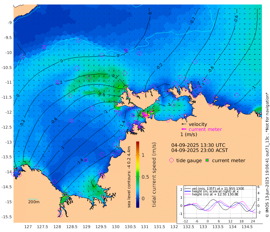 88cm/s -102T +4cm/s rms + 6cm/s 51T. Darwin_C1 52m 80cm/s -92T +4cm/s rms + 7cm/s -161T. Darwin_CW1 22m 42cm/s -105T +4cm/s rms + 8cm/s 61T. Darwin_CW2 34m 56cm/s -140T +3cm/s rms + 9cm/s 98T. Darwin_CW3 22m 69cm/s -89T +5cm/s rms + 7cm/s 88T. Darwin_C3 56m 51cm/s -116T +2cm/s rms + 9cm/s -126T. Darwin_CTbW 22m 4cm/s -113T +9cm/s rms + 2cm/s -110T. NWSLYN 196m 10cm/s -111T +1cm/s rms + 1cm/s -47T. DARBGF 30m 9cm/s 167T +7cm/s rms + 2cm/s -137T. ITFTIS 464m 13cm/s 179T +9cm/s rms + 1cm/s 74T. ITFMHB 146m 2cm/s 84T +4cm/s rms + 1cm/s -134T. ITFJBG 61m 9cm/s 149T +6cm/s rms + 4cm/s 121T. ITFFTB 108m 5cm/s -95T +4cm/s rms + 3cm/s 80T. NRSDAR 19m -15cm Carronade Island -15cm Guy Point -18cm Napier Broome Bay -84cm Lesueur Island -115cm Reveley Island -30cm Rocky Island -168cm Cape Domett -160cm Lacrosse Island -171cm Adolphus Island -150cm Pender Point -150cm Wyndham -41cm The Boxers -58cm Unnamed Shoal 10cm Loxton Shoal -182cm Pelican Island -20cm Calder Shoal 7cm Evans Shoal -206cm Quoin Island -169cm Port Keats -170cm Jones Point -219cm Catfish Island -128cm Cape Scott Offshore -113cm Cape Ford -144cm Anson Bay -10cm Goodrich Bank -115cm Peron Island North -118cm Point Jenny -118cm Native Point -123cm Fish Reef -137cm Tapa Bay -63cm Point Fawcett (Offshore) -139cm Burge Point -106cm Munkunuwa -103cm Beagle A -129cm Parsons Bank -139cm Fenton Patches -5cm Lynedoch Bank -140cm Hancox Shoal Area -148cm Nightcliff -157cm Darwin -148cm Charles Point Patches -130cm Glyde Point -125cm Chambers Bay -116cm Point Stuart -115cm Cape Hotham -107cm Christine Reef -122cm West Alligator Head -125cm East Field Island -99cm Two Hills Bay -75cm Newby Shoal -111cm Camp Point -126cm Medina Inlet South -45cm South Barlow Point -32cm St. Asaph Bay -11cm Cape Van Dieman -16cm Snake Bay -16cm Cache Point 14cm Echo Shoal -26cm Point Jahleel (Off) -59cm Cape Don -32cm Port Essington -28cm Smith Point - West -28cm NW Peacock Island -20cm North Of Jones Shoal -8cm Peacock Island -48cm Point David -31cm D'urville Point -34cm Money Shoal -49cm Copeland Island -59cm Cape Cockburn -45cm One Tree Point -63cm Hogmany Shoal -53cm New Year Island - West -51cm Grant Island -69cm Aurari Bay -76cm Cuthbert Point -64cm North Goulburn Island -93cm Paxie Shoal -95cm Entrance Island -110cm Yabooma Island