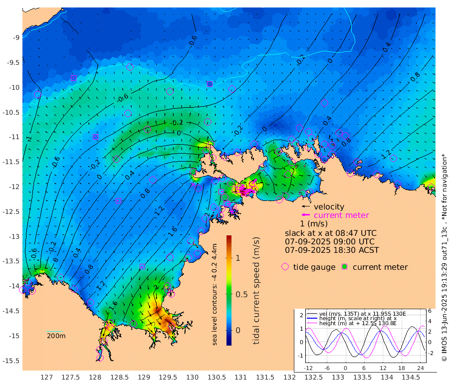 140cm/s 78T +4cm/s rms + 6cm/s 51T. Darwin_C1 52m 100cm/s 92T +4cm/s rms + 7cm/s -161T. Darwin_CW1 22m 86cm/s 72T +4cm/s rms + 8cm/s 61T. Darwin_CW2 34m 87cm/s 42T +3cm/s rms + 9cm/s 98T. Darwin_CW3 22m 127cm/s 89T +5cm/s rms + 7cm/s 88T. Darwin_C3 56m 65cm/s 65T +2cm/s rms + 9cm/s -126T. Darwin_CTbW 22m 4cm/s 7T +9cm/s rms + 2cm/s -110T. NWSLYN 196m 21cm/s 76T +1cm/s rms + 1cm/s -47T. DARBGF 30m 8cm/s -70T +7cm/s rms + 2cm/s -137T. ITFTIS 464m 10cm/s -52T +9cm/s rms + 1cm/s 74T. ITFMHB 146m 16cm/s -155T +4cm/s rms + 1cm/s -134T. ITFJBG 61m 11cm/s -86T +6cm/s rms + 4cm/s 121T. ITFFTB 108m 17cm/s 98T +4cm/s rms + 3cm/s 80T. NRSDAR 19m -108cm Carronade Island -108cm Guy Point -122cm Napier Broome Bay 13cm Lesueur Island 124cm Reveley Island 2cm Rocky Island 191cm Cape Domett 174cm Lacrosse Island 193cm Adolphus Island 112cm Pender Point 89cm Wyndham -16cm The Boxers 19cm Unnamed Shoal -84cm Loxton Shoal 233cm Pelican Island -32cm Calder Shoal -59cm Evans Shoal 231cm Quoin Island 227cm Port Keats 228cm Jones Point 157cm Catfish Island 162cm Cape Scott Offshore 170cm Cape Ford 193cm Anson Bay -28cm Goodrich Bank 157cm Peron Island North 159cm Point Jenny 158cm Native Point 168cm Fish Reef 192cm Tapa Bay 58cm Point Fawcett (Offshore) 200cm Burge Point 171cm Munkunuwa 129cm Beagle A 203cm Parsons Bank 195cm Fenton Patches -39cm Lynedoch Bank 209cm Hancox Shoal Area 217cm Nightcliff 226cm Darwin 201cm Charles Point Patches 163cm Glyde Point 132cm Chambers Bay 120cm Point Stuart 140cm Cape Hotham 115cm Christine Reef 126cm West Alligator Head 113cm East Field Island 105cm Two Hills Bay 51cm Newby Shoal 114cm Camp Point 178cm Medina Inlet South 45cm South Barlow Point 15cm St. Asaph Bay -23cm Cape Van Dieman -16cm Snake Bay -20cm Cache Point -102cm Echo Shoal 3cm Point Jahleel (Off) 53cm Cape Don 16cm Port Essington 17cm Smith Point - West 16cm NW Peacock Island -7cm North Of Jones Shoal 1cm Peacock Island 54cm Point David 25cm D'urville Point 16cm Money Shoal 59cm Copeland Island 66cm Cape Cockburn 43cm One Tree Point 71cm Hogmany Shoal 48cm New Year Island - West 54cm Grant Island 83cm Aurari Bay 97cm Cuthbert Point 77cm North Goulburn Island 112cm Paxie Shoal 134cm Entrance Island 166cm Yabooma Island