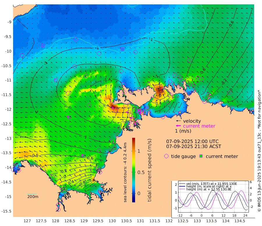 78cm/s -103T +4cm/s rms + 6cm/s 51T. Darwin_C1 52m 41cm/s -85T +4cm/s rms + 7cm/s -161T. Darwin_CW1 22m 39cm/s -107T +4cm/s rms + 8cm/s 61T. Darwin_CW2 34m 16cm/s -97T +3cm/s rms + 9cm/s 98T. Darwin_CW3 22m 32cm/s -94T +5cm/s rms + 7cm/s 88T. Darwin_C3 56m 51cm/s -116T +2cm/s rms + 9cm/s -126T. Darwin_CTbW 22m 12cm/s -32T +9cm/s rms + 2cm/s -110T. NWSLYN 196m 72cm/s -87T +1cm/s rms + 1cm/s -47T. DARBGF 30m 12cm/s -118T +7cm/s rms + 2cm/s -137T. ITFTIS 464m 20cm/s -39T +9cm/s rms + 1cm/s 74T. ITFMHB 146m 46cm/s -35T +4cm/s rms + 1cm/s -134T. ITFJBG 61m 51cm/s -55T +6cm/s rms + 4cm/s 121T. ITFFTB 108m 76cm/s -56T +4cm/s rms + 3cm/s 80T. NRSDAR 19m -17cm Carronade Island -11cm Guy Point -25cm Napier Broome Bay -8cm Lesueur Island 18cm Reveley Island -19cm Rocky Island 70cm Cape Domett 57cm Lacrosse Island 141cm Adolphus Island 197cm Pender Point 234cm Wyndham -106cm The Boxers -113cm Unnamed Shoal -89cm Loxton Shoal 63cm Pelican Island -115cm Calder Shoal -92cm Evans Shoal 224cm Quoin Island -18cm Port Keats -8cm Jones Point 230cm Catfish Island -76cm Cape Scott Offshore -185cm Cape Ford -89cm Anson Bay -104cm Goodrich Bank -93cm Peron Island North -127cm Point Jenny -128cm Native Point -113cm Fish Reef -111cm Tapa Bay -137cm Point Fawcett (Offshore) -106cm Burge Point -119cm Munkunuwa -134cm Beagle A -87cm Parsons Bank -104cm Fenton Patches -83cm Lynedoch Bank -65cm Hancox Shoal Area -84cm Nightcliff -71cm Darwin -95cm Charles Point Patches -6cm Glyde Point 80cm Chambers Bay 104cm Point Stuart 27cm Cape Hotham 60cm Christine Reef 126cm West Alligator Head 166cm East Field Island 48cm Two Hills Bay -135cm Newby Shoal 41cm Camp Point -108cm Medina Inlet South -133cm South Barlow Point -129cm St. Asaph Bay -112cm Cape Van Dieman -108cm Snake Bay -104cm Cache Point -69cm Echo Shoal -82cm Point Jahleel (Off) -52cm Cape Don -77cm Port Essington -81cm Smith Point - West -73cm NW Peacock Island -78cm North Of Jones Shoal -26cm Peacock Island -42cm Point David -76cm D'urville Point -62cm Money Shoal -35cm Copeland Island -50cm Cape Cockburn -46cm One Tree Point -36cm Hogmany Shoal -43cm New Year Island - West -41cm Grant Island -11cm Aurari Bay 3cm Cuthbert Point -22cm North Goulburn Island 24cm Paxie Shoal 45cm Entrance Island 97cm Yabooma Island