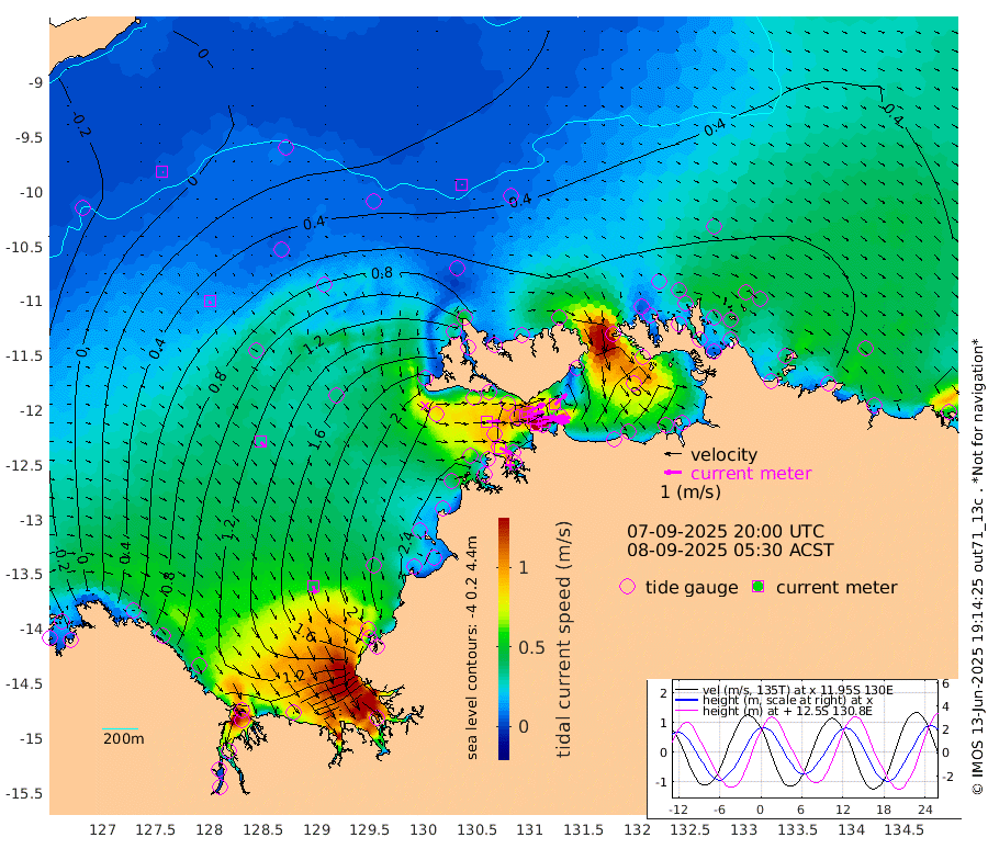 205cm/s 77T +4cm/s rms + 6cm/s 51T. Darwin_C1 52m 152cm/s 89T +4cm/s rms + 7cm/s -161T. Darwin_CW1 22m 112cm/s 74T +4cm/s rms + 8cm/s 61T. Darwin_CW2 34m 93cm/s 49T +3cm/s rms + 9cm/s 98T. Darwin_CW3 22m 149cm/s 88T +5cm/s rms + 7cm/s 88T. Darwin_C3 56m 112cm/s 65T +2cm/s rms + 9cm/s -126T. Darwin_CTbW 22m 3cm/s 34T +9cm/s rms + 2cm/s -110T. NWSLYN 196m 77cm/s 88T +1cm/s rms + 1cm/s -47T. DARBGF 30m 4cm/s 47T +7cm/s rms + 2cm/s -137T. ITFTIS 464m 14cm/s 169T +9cm/s rms + 1cm/s 74T. ITFMHB 146m 45cm/s 163T +4cm/s rms + 1cm/s -134T. ITFJBG 61m 34cm/s 140T +6cm/s rms + 4cm/s 121T. ITFFTB 108m 78cm/s 116T +4cm/s rms + 3cm/s 80T. NRSDAR 19m -75cm Carronade Island -81cm Guy Point -74cm Napier Broome Bay 24cm Lesueur Island 107cm Reveley Island 74cm Rocky Island 139cm Cape Domett 131cm Lacrosse Island 88cm Adolphus Island -26cm Pender Point -79cm Wyndham 71cm The Boxers 97cm Unnamed Shoal 3cm Loxton Shoal 163cm Pelican Island 71cm Calder Shoal 21cm Evans Shoal 60cm Quoin Island 231cm Port Keats 213cm Jones Point -47cm Catfish Island 206cm Cape Scott Offshore 287cm Cape Ford 239cm Anson Bay 50cm Goodrich Bank 216cm Peron Island North 240cm Point Jenny 242cm Native Point 244cm Fish Reef 255cm Tapa Bay 157cm Point Fawcett (Offshore) 271cm Burge Point 258cm Munkunuwa 228cm Beagle A 251cm Parsons Bank 264cm Fenton Patches 26cm Lynedoch Bank 231cm Hancox Shoal Area 265cm Nightcliff 259cm Darwin 247cm Charles Point Patches 148cm Glyde Point 47cm Chambers Bay 20cm Point Stuart 99cm Cape Hotham 52cm Christine Reef 12cm West Alligator Head -30cm East Field Island 50cm Two Hills Bay 166cm Newby Shoal 60cm Camp Point 250cm Medina Inlet South 146cm South Barlow Point 113cm St. Asaph Bay 59cm Cape Van Dieman 64cm Snake Bay 54cm Cache Point -30cm Echo Shoal 58cm Point Jahleel (Off) 76cm Cape Don 55cm Port Essington 60cm Smith Point - West 49cm NW Peacock Island 40cm North Of Jones Shoal 15cm Peacock Island 42cm Point David 56cm D'urville Point 33cm Money Shoal 39cm Copeland Island 55cm Cape Cockburn 42cm One Tree Point 31cm Hogmany Shoal 42cm New Year Island - West 43cm Grant Island 41cm Aurari Bay 33cm Cuthbert Point 43cm North Goulburn Island 26cm Paxie Shoal 25cm Entrance Island 1cm Yabooma Island