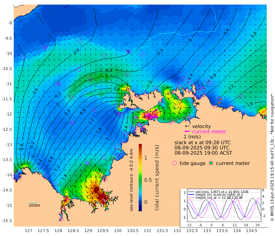 176cm/s 78T +4cm/s rms + 6cm/s 51T. Darwin_C1 52m 130cm/s 92T +4cm/s rms + 7cm/s -161T. Darwin_CW1 22m 110cm/s 73T +4cm/s rms + 8cm/s 61T. Darwin_CW2 34m 104cm/s 43T +3cm/s rms + 9cm/s 98T. Darwin_CW3 22m 166cm/s 89T +5cm/s rms + 7cm/s 88T. Darwin_C3 56m 83cm/s 65T +2cm/s rms + 9cm/s -126T. Darwin_CTbW 22m 4cm/s 23T +9cm/s rms + 2cm/s -110T. NWSLYN 196m 31cm/s 78T +1cm/s rms + 1cm/s -47T. DARBGF 30m 8cm/s -71T +7cm/s rms + 2cm/s -137T. ITFTIS 464m 9cm/s -71T +9cm/s rms + 1cm/s 74T. ITFMHB 146m 20cm/s -157T +4cm/s rms + 1cm/s -134T. ITFJBG 61m 11cm/s -98T +6cm/s rms + 4cm/s 121T. ITFFTB 108m 25cm/s 101T +4cm/s rms + 3cm/s 80T. NRSDAR 19m -114cm Carronade Island -112cm Guy Point -128cm Napier Broome Bay 24cm Lesueur Island 156cm Reveley Island 23cm Rocky Island 235cm Cape Domett 211cm Lacrosse Island 234cm Adolphus Island 136cm Pender Point 104cm Wyndham 0cm The Boxers 31cm Unnamed Shoal -79cm Loxton Shoal 281cm Pelican Island -17cm Calder Shoal -50cm Evans Shoal 271cm Quoin Island 280cm Port Keats 276cm Jones Point 171cm Catfish Island 204cm Cape Scott Offshore 237cm Cape Ford 239cm Anson Bay -16cm Goodrich Bank 202cm Peron Island North 206cm Point Jenny 205cm Native Point 215cm Fish Reef 242cm Tapa Bay 89cm Point Fawcett (Offshore) 254cm Burge Point 221cm Munkunuwa 170cm Beagle A 256cm Parsons Bank 245cm Fenton Patches -32cm Lynedoch Bank 259cm Hancox Shoal Area 267cm Nightcliff 281cm Darwin 254cm Charles Point Patches 198cm Glyde Point 152cm Chambers Bay 137cm Point Stuart 167cm Cape Hotham 137cm Christine Reef 142cm West Alligator Head 123cm East Field Island 125cm Two Hills Bay 83cm Newby Shoal 134cm Camp Point 228cm Medina Inlet South 74cm South Barlow Point 37cm St. Asaph Bay -10cm Cape Van Dieman -2cm Snake Bay -6cm Cache Point -105cm Echo Shoal 18cm Point Jahleel (Off) 74cm Cape Don 33cm Port Essington 34cm Smith Point - West 32cm NW Peacock Island 5cm North Of Jones Shoal 5cm Peacock Island 69cm Point David 42cm D'urville Point 28cm Money Shoal 73cm Copeland Island 86cm Cape Cockburn 58cm One Tree Point 90cm Hogmany Shoal 62cm New Year Island - West 70cm Grant Island 96cm Aurari Bay 115cm Cuthbert Point 94cm North Goulburn Island 127cm Paxie Shoal 152cm Entrance Island 182cm Yabooma Island