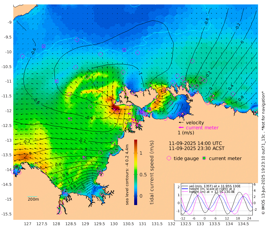 23cm/s 83T +4cm/s rms + 6cm/s 51T. Darwin_C1 52m 30cm/s 87T +4cm/s rms + 7cm/s -161T. Darwin_CW1 22m 6cm/s -100T +4cm/s rms + 8cm/s 61T. Darwin_CW2 34m 39cm/s 39T +3cm/s rms + 9cm/s 98T. Darwin_CW3 22m 24cm/s 97T +5cm/s rms + 7cm/s 88T. Darwin_C3 56m 8cm/s 74T +2cm/s rms + 9cm/s -126T. Darwin_CTbW 22m 8cm/s -19T +9cm/s rms + 2cm/s -110T. NWSLYN 196m 72cm/s -84T +1cm/s rms + 1cm/s -47T. DARBGF 30m 13cm/s -108T +7cm/s rms + 2cm/s -137T. ITFTIS 464m 18cm/s -48T +9cm/s rms + 1cm/s 74T. ITFMHB 146m 51cm/s -37T +4cm/s rms + 1cm/s -134T. ITFJBG 61m 55cm/s -55T +6cm/s rms + 4cm/s 121T. ITFFTB 108m 88cm/s -54T +4cm/s rms + 3cm/s 80T. NRSDAR 19m 73cm Carronade Island 85cm Guy Point 72cm Napier Broome Bay 85cm Lesueur Island 121cm Reveley Island 45cm Rocky Island 205cm Cape Domett 182cm Lacrosse Island 284cm Adolphus Island 341cm Pender Point 389cm Wyndham -53cm The Boxers -79cm Unnamed Shoal -63cm Loxton Shoal 193cm Pelican Island -76cm Calder Shoal -68cm Evans Shoal 372cm Quoin Island 104cm Port Keats 94cm Jones Point 400cm Catfish Island 14cm Cape Scott Offshore -94cm Cape Ford 2cm Anson Bay -81cm Goodrich Bank -13cm Peron Island North -28cm Point Jenny -33cm Native Point -28cm Fish Reef -14cm Tapa Bay -80cm Point Fawcett (Offshore) -4cm Burge Point -48cm Munkunuwa -49cm Beagle A 2cm Parsons Bank -4cm Fenton Patches -65cm Lynedoch Bank 34cm Hancox Shoal Area 21cm Nightcliff 25cm Darwin -2cm Charles Point Patches 87cm Glyde Point 184cm Chambers Bay 203cm Point Stuart 112cm Cape Hotham 172cm Christine Reef 233cm West Alligator Head 276cm East Field Island 134cm Two Hills Bay -45cm Newby Shoal 127cm Camp Point -25cm Medina Inlet South -93cm South Barlow Point -92cm St. Asaph Bay -89cm Cape Van Dieman -89cm Snake Bay -72cm Cache Point -48cm Echo Shoal -47cm Point Jahleel (Off) 6cm Cape Don -44cm Port Essington -43cm Smith Point - West -37cm NW Peacock Island -50cm North Of Jones Shoal -17cm Peacock Island -8cm Point David -39cm D'urville Point -29cm Money Shoal 0cm Copeland Island -1cm Cape Cockburn -11cm One Tree Point 19cm Hogmany Shoal -4cm New Year Island - West 1cm Grant Island 28cm Aurari Bay 65cm Cuthbert Point 25cm North Goulburn Island 86cm Paxie Shoal 111cm Entrance Island 166cm Yabooma Island