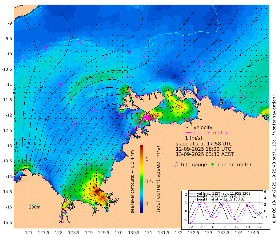 165cm/s -102T +4cm/s rms + 6cm/s 51T. Darwin_C1 52m 116cm/s -90T +4cm/s rms + 7cm/s -161T. Darwin_CW1 22m 106cm/s -107T +4cm/s rms + 8cm/s 61T. Darwin_CW2 34m 73cm/s -132T +3cm/s rms + 9cm/s 98T. Darwin_CW3 22m 157cm/s -91T +5cm/s rms + 7cm/s 88T. Darwin_C3 56m 91cm/s -115T +2cm/s rms + 9cm/s -126T. Darwin_CTbW 22m 6cm/s 143T +9cm/s rms + 2cm/s -110T. NWSLYN 196m 27cm/s -102T +1cm/s rms + 1cm/s -47T. DARBGF 30m 9cm/s 62T +7cm/s rms + 2cm/s -137T. ITFTIS 464m 12cm/s 67T +9cm/s rms + 1cm/s 74T. ITFMHB 146m 19cm/s 20T +4cm/s rms + 1cm/s -134T. ITFJBG 61m 17cm/s 65T +6cm/s rms + 4cm/s 121T. ITFFTB 108m 21cm/s -89T +4cm/s rms + 3cm/s 80T. NRSDAR 19m 152cm Carronade Island 154cm Guy Point 155cm Napier Broome Bay 50cm Lesueur Island -99cm Reveley Island -52cm Rocky Island -161cm Cape Domett -131cm Lacrosse Island -153cm Adolphus Island -86cm Pender Point -45cm Wyndham 42cm The Boxers 11cm Unnamed Shoal 95cm Loxton Shoal -193cm Pelican Island 50cm Calder Shoal 67cm Evans Shoal -194cm Quoin Island -191cm Port Keats -194cm Jones Point -94cm Catfish Island -132cm Cape Scott Offshore -136cm Cape Ford -158cm Anson Bay 45cm Goodrich Bank -138cm Peron Island North -130cm Point Jenny -130cm Native Point -145cm Fish Reef -159cm Tapa Bay -38cm Point Fawcett (Offshore) -175cm Burge Point -171cm Munkunuwa -93cm Beagle A -192cm Parsons Bank -156cm Fenton Patches 54cm Lynedoch Bank -178cm Hancox Shoal Area -179cm Nightcliff -199cm Darwin -165cm Charles Point Patches -129cm Glyde Point -87cm Chambers Bay -87cm Point Stuart -107cm Cape Hotham -77cm Christine Reef -94cm West Alligator Head -68cm East Field Island -80cm Two Hills Bay -19cm Newby Shoal -69cm Camp Point -161cm Medina Inlet South -34cm South Barlow Point 4cm St. Asaph Bay 39cm Cape Van Dieman 29cm Snake Bay 40cm Cache Point 127cm Echo Shoal 16cm Point Jahleel (Off) -35cm Cape Don 1cm Port Essington 1cm Smith Point - West 4cm NW Peacock Island 27cm North Of Jones Shoal 6cm Peacock Island -27cm Point David -5cm D'urville Point 14cm Money Shoal -31cm Copeland Island -38cm Cape Cockburn -21cm One Tree Point -33cm Hogmany Shoal -16cm New Year Island - West -28cm Grant Island -46cm Aurari Bay -65cm Cuthbert Point -48cm North Goulburn Island -71cm Paxie Shoal -94cm Entrance Island -113cm Yabooma Island