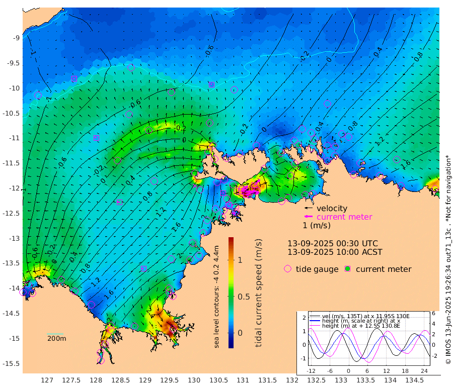 171cm/s 78T +4cm/s rms + 6cm/s 51T. Darwin_C1 52m 117cm/s 92T +4cm/s rms + 7cm/s -161T. Darwin_CW1 22m 95cm/s 73T +4cm/s rms + 8cm/s 61T. Darwin_CW2 34m 104cm/s 43T +3cm/s rms + 9cm/s 98T. Darwin_CW3 22m 158cm/s 89T +5cm/s rms + 7cm/s 88T. Darwin_C3 56m 85cm/s 65T +2cm/s rms + 9cm/s -126T. Darwin_CTbW 22m 11cm/s -17T +9cm/s rms + 2cm/s -110T. NWSLYN 196m 8cm/s 3T +1cm/s rms + 1cm/s -47T. DARBGF 30m 11cm/s -87T +7cm/s rms + 2cm/s -137T. ITFTIS 464m 16cm/s -50T +9cm/s rms + 1cm/s 74T. ITFMHB 146m 18cm/s -94T +4cm/s rms + 1cm/s -134T. ITFJBG 61m 29cm/s -71T +6cm/s rms + 4cm/s 121T. ITFFTB 108m 14cm/s -7T +4cm/s rms + 3cm/s 80T. NRSDAR 19m -97cm Carronade Island -103cm Guy Point -97cm Napier Broome Bay 22cm Lesueur Island 146cm Reveley Island 77cm Rocky Island 236cm Cape Domett 202cm Lacrosse Island 256cm Adolphus Island 199cm Pender Point 181cm Wyndham -20cm The Boxers 19cm Unnamed Shoal -87cm Loxton Shoal 260cm Pelican Island -42cm Calder Shoal -64cm Evans Shoal 309cm Quoin Island 237cm Port Keats 242cm Jones Point 226cm Catfish Island 147cm Cape Scott Offshore 139cm Cape Ford 171cm Anson Bay -38cm Goodrich Bank 154cm Peron Island North 138cm Point Jenny 137cm Native Point 157cm Fish Reef 170cm Tapa Bay 35cm Point Fawcett (Offshore) 194cm Burge Point 161cm Munkunuwa 107cm Beagle A 208cm Parsons Bank 181cm Fenton Patches -42cm Lynedoch Bank 202cm Hancox Shoal Area 199cm Nightcliff 228cm Darwin 188cm Charles Point Patches 181cm Glyde Point 160cm Chambers Bay 170cm Point Stuart 165cm Cape Hotham 145cm Christine Reef 184cm West Alligator Head 176cm East Field Island 145cm Two Hills Bay 50cm Newby Shoal 134cm Camp Point 170cm Medina Inlet South 32cm South Barlow Point -8cm St. Asaph Bay -34cm Cape Van Dieman -20cm Snake Bay -29cm Cache Point -115cm Echo Shoal 1cm Point Jahleel (Off) 66cm Cape Don 20cm Port Essington 19cm Smith Point - West 22cm NW Peacock Island -11cm North Of Jones Shoal 0cm Peacock Island 66cm Point David 31cm D'urville Point 17cm Money Shoal 70cm Copeland Island 90cm Cape Cockburn 57cm One Tree Point 86cm Hogmany Shoal 61cm New Year Island - West 72cm Grant Island 99cm Aurari Bay 128cm Cuthbert Point 97cm North Goulburn Island 133cm Paxie Shoal 166cm Entrance Island 194cm Yabooma Island