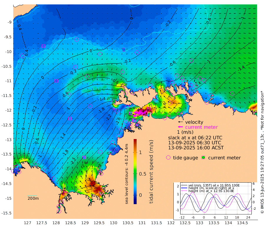 241cm/s -101T +4cm/s rms + 6cm/s 51T. Darwin_C1 52m 180cm/s -90T +4cm/s rms + 7cm/s -161T. Darwin_CW1 22m 124cm/s -106T +4cm/s rms + 8cm/s 61T. Darwin_CW2 34m 115cm/s -135T +3cm/s rms + 9cm/s 98T. Darwin_CW3 22m 198cm/s -91T +5cm/s rms + 7cm/s 88T. Darwin_C3 56m 138cm/s -115T +2cm/s rms + 9cm/s -126T. Darwin_CTbW 22m 7cm/s -148T +9cm/s rms + 2cm/s -110T. NWSLYN 196m 31cm/s -105T +1cm/s rms + 1cm/s -47T. DARBGF 30m 9cm/s 111T +7cm/s rms + 2cm/s -137T. ITFTIS 464m 8cm/s 95T +9cm/s rms + 1cm/s 74T. ITFMHB 146m 15cm/s 43T +4cm/s rms + 1cm/s -134T. ITFJBG 61m 15cm/s 96T +6cm/s rms + 4cm/s 121T. ITFFTB 108m 19cm/s -95T +4cm/s rms + 3cm/s 80T. NRSDAR 19m 27cm Carronade Island 25cm Guy Point 27cm Napier Broome Bay -104cm Lesueur Island -216cm Reveley Island -108cm Rocky Island -314cm Cape Domett -282cm Lacrosse Island -323cm Adolphus Island -238cm Pender Point -217cm Wyndham -62cm The Boxers -78cm Unnamed Shoal 15cm Loxton Shoal -338cm Pelican Island -42cm Calder Shoal -6cm Evans Shoal -368cm Quoin Island -331cm Port Keats -316cm Jones Point -288cm Catfish Island -245cm Cape Scott Offshore -282cm Cape Ford -270cm Anson Bay -29cm Goodrich Bank -254cm Peron Island North -243cm Point Jenny -240cm Native Point -258cm Fish Reef -273cm Tapa Bay -136cm Point Fawcett (Offshore) -294cm Burge Point -251cm Munkunuwa -209cm Beagle A -295cm Parsons Bank -279cm Fenton Patches -15cm Lynedoch Bank -291cm Hancox Shoal Area -296cm Nightcliff -324cm Darwin -296cm Charles Point Patches -245cm Glyde Point -199cm Chambers Bay -197cm Point Stuart -215cm Cape Hotham -190cm Christine Reef -207cm West Alligator Head -189cm East Field Island -185cm Two Hills Bay -156cm Newby Shoal -176cm Camp Point -269cm Medina Inlet South -117cm South Barlow Point -78cm St. Asaph Bay -33cm Cape Van Dieman -44cm Snake Bay -43cm Cache Point 49cm Echo Shoal -65cm Point Jahleel (Off) -126cm Cape Don -79cm Port Essington -81cm Smith Point - West -78cm NW Peacock Island -54cm North Of Jones Shoal -21cm Peacock Island -103cm Point David -87cm D'urville Point -68cm Money Shoal -105cm Copeland Island -142cm Cape Cockburn -101cm One Tree Point -137cm Hogmany Shoal -103cm New Year Island - West -113cm Grant Island -126cm Aurari Bay -155cm Cuthbert Point -133cm North Goulburn Island -156cm Paxie Shoal -176cm Entrance Island -192cm Yabooma Island