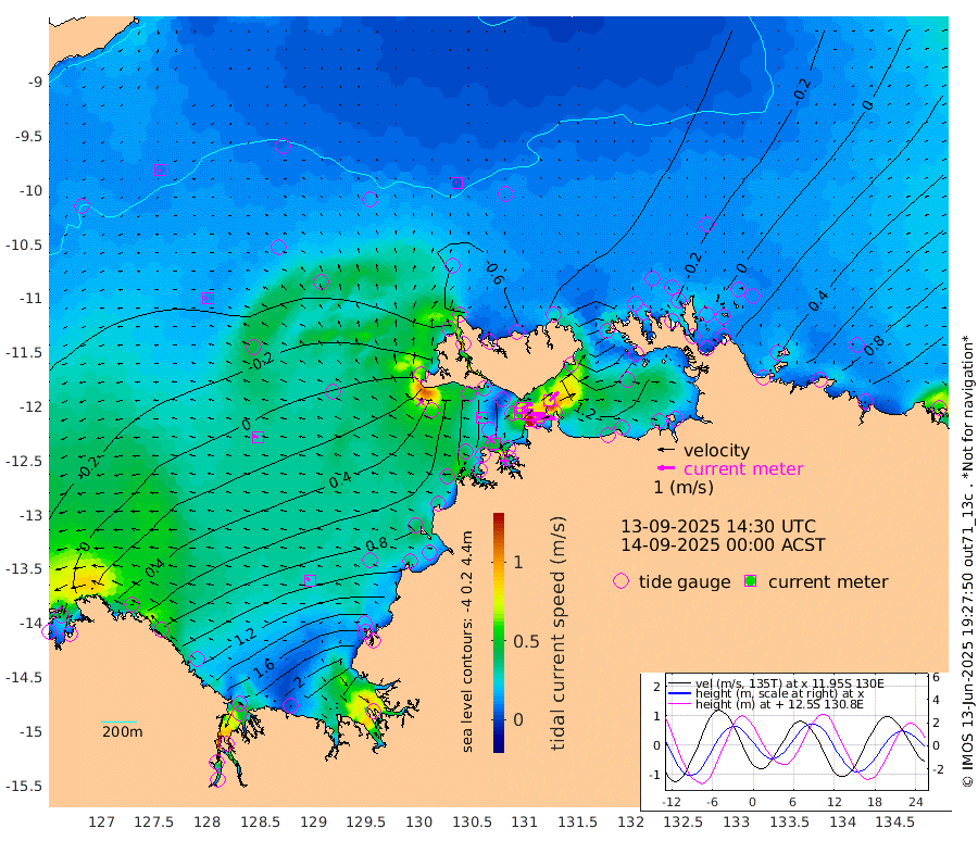 124cm/s 79T +4cm/s rms + 6cm/s 51T. Darwin_C1 52m 97cm/s 91T +4cm/s rms + 7cm/s -161T. Darwin_CW1 22m 53cm/s 70T +4cm/s rms + 8cm/s 61T. Darwin_CW2 34m 74cm/s 47T +3cm/s rms + 9cm/s 98T. Darwin_CW3 22m 97cm/s 90T +5cm/s rms + 7cm/s 88T. Darwin_C3 56m 68cm/s 66T +2cm/s rms + 9cm/s -126T. Darwin_CTbW 22m 5cm/s -9T +9cm/s rms + 2cm/s -110T. NWSLYN 196m 29cm/s -74T +1cm/s rms + 1cm/s -47T. DARBGF 30m 10cm/s -114T +7cm/s rms + 2cm/s -137T. ITFTIS 464m 11cm/s -97T +9cm/s rms + 1cm/s 74T. ITFMHB 146m 25cm/s -52T +4cm/s rms + 1cm/s -134T. ITFJBG 61m 31cm/s -65T +6cm/s rms + 4cm/s 121T. ITFFTB 108m 47cm/s -50T +4cm/s rms + 3cm/s 80T. NRSDAR 19m 50cm Carronade Island 60cm Guy Point 52cm Napier Broome Bay 86cm Lesueur Island 154cm Reveley Island 78cm Rocky Island 233cm Cape Domett 211cm Lacrosse Island 272cm Adolphus Island 287cm Pender Point 306cm Wyndham -10cm The Boxers -28cm Unnamed Shoal -44cm Loxton Shoal 231cm Pelican Island -29cm Calder Shoal -39cm Evans Shoal 341cm Quoin Island 178cm Port Keats 164cm Jones Point 352cm Catfish Island 100cm Cape Scott Offshore 42cm Cape Ford 100cm Anson Bay -45cm Goodrich Bank 83cm Peron Island North 78cm Point Jenny 73cm Native Point 79cm Fish Reef 92cm Tapa Bay 5cm Point Fawcett (Offshore) 105cm Burge Point 68cm Munkunuwa 49cm Beagle A 105cm Parsons Bank 97cm Fenton Patches -42cm Lynedoch Bank 121cm Hancox Shoal Area 120cm Nightcliff 122cm Darwin 96cm Charles Point Patches 134cm Glyde Point 180cm Chambers Bay 190cm Point Stuart 139cm Cape Hotham 173cm Christine Reef 214cm West Alligator Head 230cm East Field Island 144cm Two Hills Bay 31cm Newby Shoal 131cm Camp Point 82cm Medina Inlet South -17cm South Barlow Point -27cm St. Asaph Bay -47cm Cape Van Dieman -47cm Snake Bay -32cm Cache Point -46cm Echo Shoal -11cm Point Jahleel (Off) 43cm Cape Don -9cm Port Essington -6cm Smith Point - West -7cm NW Peacock Island -20cm North Of Jones Shoal -6cm Peacock Island 12cm Point David -6cm D'urville Point -9cm Money Shoal 18cm Copeland Island 28cm Cape Cockburn 12cm One Tree Point 38cm Hogmany Shoal 14cm New Year Island - West 21cm Grant Island 39cm Aurari Bay 73cm Cuthbert Point 43cm North Goulburn Island 88cm Paxie Shoal 105cm Entrance Island 141cm Yabooma Island