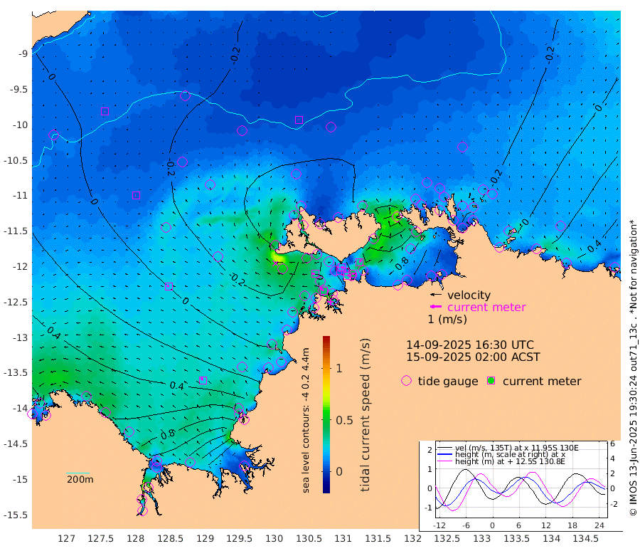 29cm/s 79T +4cm/s rms + 6cm/s 51T. Darwin_C1 52m 41cm/s 90T +4cm/s rms + 7cm/s -161T. Darwin_CW1 22m 8cm/s -116T +4cm/s rms + 8cm/s 61T. Darwin_CW2 34m 32cm/s 37T +3cm/s rms + 9cm/s 98T. Darwin_CW3 22m 10cm/s 105T +5cm/s rms + 7cm/s 88T. Darwin_C3 56m 18cm/s 71T +2cm/s rms + 9cm/s -126T. Darwin_CTbW 22m 2cm/s 17T +9cm/s rms + 2cm/s -110T. NWSLYN 196m 32cm/s -84T +1cm/s rms + 1cm/s -47T. DARBGF 30m 4cm/s -100T +7cm/s rms + 2cm/s -137T. ITFTIS 464m 4cm/s -70T +9cm/s rms + 1cm/s 74T. ITFMHB 146m 24cm/s -31T +4cm/s rms + 1cm/s -134T. ITFJBG 61m 22cm/s -50T +6cm/s rms + 4cm/s 121T. ITFFTB 108m 37cm/s -55T +4cm/s rms + 3cm/s 80T. NRSDAR 19m 122cm Carronade Island 130cm Guy Point 127cm Napier Broome Bay 102cm Lesueur Island 95cm Reveley Island 51cm Rocky Island 137cm Cape Domett 133cm Lacrosse Island 168cm Adolphus Island 221cm Pender Point 255cm Wyndham 10cm The Boxers -18cm Unnamed Shoal -2cm Loxton Shoal 116cm Pelican Island -4cm Calder Shoal -11cm Evans Shoal 207cm Quoin Island 75cm Port Keats 62cm Jones Point 266cm Catfish Island 29cm Cape Scott Offshore -18cm Cape Ford 18cm Anson Bay -26cm Goodrich Bank 8cm Peron Island North 15cm Point Jenny 11cm Native Point 7cm Fish Reef 13cm Tapa Bay -14cm Point Fawcett (Offshore) 21cm Burge Point -14cm Munkunuwa 7cm Beagle A 5cm Parsons Bank 22cm Fenton Patches -20cm Lynedoch Bank 26cm Hancox Shoal Area 29cm Nightcliff 17cm Darwin 8cm Charles Point Patches 61cm Glyde Point 123cm Chambers Bay 132cm Point Stuart 75cm Cape Hotham 122cm Christine Reef 151cm West Alligator Head 178cm East Field Island 90cm Two Hills Bay 22cm Newby Shoal 87cm Camp Point 1cm Medina Inlet South -35cm South Barlow Point -26cm St. Asaph Bay -30cm Cape Van Dieman -36cm Snake Bay -17cm Cache Point 13cm Echo Shoal -9cm Point Jahleel (Off) 17cm Cape Don -18cm Port Essington -16cm Smith Point - West -16cm NW Peacock Island -16cm North Of Jones Shoal -7cm Peacock Island -14cm Point David -20cm D'urville Point -13cm Money Shoal -11cm Copeland Island -8cm Cape Cockburn -11cm One Tree Point 2cm Hogmany Shoal -6cm New Year Island - West -6cm Grant Island 2cm Aurari Bay 22cm Cuthbert Point 4cm North Goulburn Island 36cm Paxie Shoal 40cm Entrance Island 62cm Yabooma Island