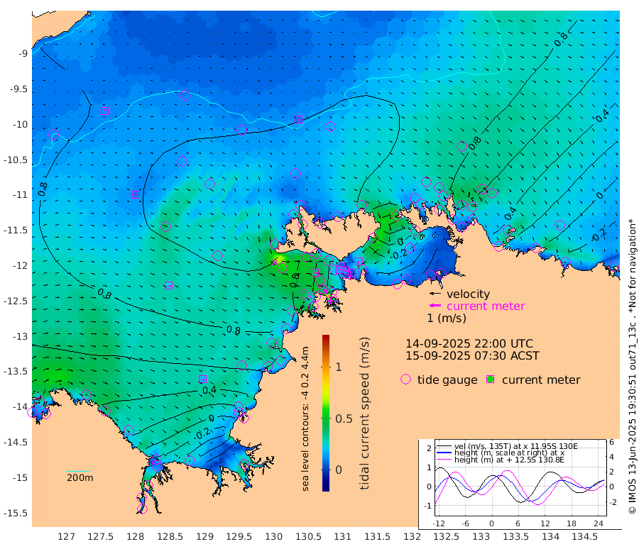 2cm/s 98T +4cm/s rms + 6cm/s 51T. Darwin_C1 52m 4cm/s 61T +4cm/s rms + 7cm/s -161T. Darwin_CW1 22m 16cm/s 79T +4cm/s rms + 8cm/s 61T. Darwin_CW2 34m 19cm/s -140T +3cm/s rms + 9cm/s 98T. Darwin_CW3 22m 14cm/s 85T +5cm/s rms + 7cm/s 88T. Darwin_C3 56m 6cm/s 58T +2cm/s rms + 9cm/s -126T. Darwin_CTbW 22m 9cm/s 124T +9cm/s rms + 2cm/s -110T. NWSLYN 196m 39cm/s 93T +1cm/s rms + 1cm/s -47T. DARBGF 30m 11cm/s 36T +7cm/s rms + 2cm/s -137T. ITFTIS 464m 10cm/s 67T +9cm/s rms + 1cm/s 74T. ITFMHB 146m 19cm/s 133T +4cm/s rms + 1cm/s -134T. ITFJBG 61m 23cm/s 106T +6cm/s rms + 4cm/s 121T. ITFFTB 108m 39cm/s 125T +4cm/s rms + 3cm/s 80T. NRSDAR 19m 10cm Carronade Island 8cm Guy Point 12cm Napier Broome Bay 32cm Lesueur Island -5cm Reveley Island -9cm Rocky Island -25cm Cape Domett -20cm Lacrosse Island -50cm Adolphus Island -97cm Pender Point -117cm Wyndham 90cm The Boxers 94cm Unnamed Shoal 94cm Loxton Shoal -21cm Pelican Island 99cm Calder Shoal 88cm Evans Shoal -89cm Quoin Island 25cm Port Keats 17cm Jones Point -145cm Catfish Island 57cm Cape Scott Offshore 136cm Cape Ford 66cm Anson Bay 97cm Goodrich Bank 74cm Peron Island North 71cm Point Jenny 74cm Native Point 74cm Fish Reef 71cm Tapa Bay 100cm Point Fawcett (Offshore) 67cm Burge Point 72cm Munkunuwa 83cm Beagle A 61cm Parsons Bank 64cm Fenton Patches 89cm Lynedoch Bank 48cm Hancox Shoal Area 53cm Nightcliff 67cm Darwin 88cm Charles Point Patches 14cm Glyde Point -50cm Chambers Bay -69cm Point Stuart -9cm Cape Hotham -46cm Christine Reef -87cm West Alligator Head -109cm East Field Island -26cm Two Hills Bay 96cm Newby Shoal -13cm Camp Point 79cm Medina Inlet South 108cm South Barlow Point 104cm St. Asaph Bay 100cm Cape Van Dieman 105cm Snake Bay 93cm Cache Point 79cm Echo Shoal 78cm Point Jahleel (Off) 50cm Cape Don 81cm Port Essington 77cm Smith Point - West 76cm NW Peacock Island 86cm North Of Jones Shoal 29cm Peacock Island 59cm Point David 77cm D'urville Point 77cm Money Shoal 53cm Copeland Island 71cm Cape Cockburn 64cm One Tree Point 59cm Hogmany Shoal 62cm New Year Island - West 59cm Grant Island 36cm Aurari Bay 21cm Cuthbert Point 44cm North Goulburn Island 10cm Paxie Shoal -9cm Entrance Island -40cm Yabooma Island