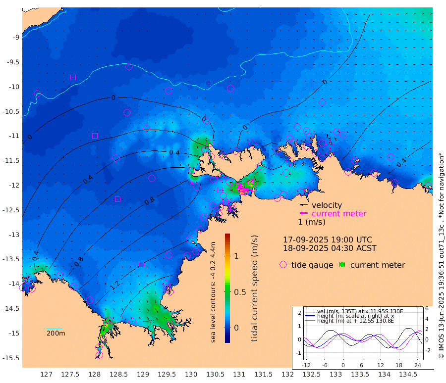 101cm/s 78T +4cm/s rms + 6cm/s 51T. Darwin_C1 52m 94cm/s 92T +4cm/s rms + 7cm/s -161T. Darwin_CW1 22m 57cm/s 73T +4cm/s rms + 8cm/s 61T. Darwin_CW2 34m 61cm/s 44T +3cm/s rms + 9cm/s 98T. Darwin_CW3 22m 87cm/s 90T +5cm/s rms + 7cm/s 88T. Darwin_C3 56m 56cm/s 66T +2cm/s rms + 9cm/s -126T. Darwin_CTbW 22m 3cm/s 32T +9cm/s rms + 2cm/s -110T. NWSLYN 196m 16cm/s 74T +1cm/s rms + 1cm/s -47T. DARBGF 30m 3cm/s -8T +7cm/s rms + 2cm/s -137T. ITFTIS 464m 3cm/s -163T +9cm/s rms + 1cm/s 74T. ITFMHB 146m 7cm/s -163T +4cm/s rms + 1cm/s -134T. ITFJBG 61m 1cm/s -127T +6cm/s rms + 4cm/s 121T. ITFFTB 108m 12cm/s 109T +4cm/s rms + 3cm/s 80T. NRSDAR 19m 44cm Carronade Island 45cm Guy Point 50cm Napier Broome Bay 89cm Lesueur Island 128cm Reveley Island 78cm Rocky Island 179cm Cape Domett 170cm Lacrosse Island 167cm Adolphus Island 160cm Pender Point 151cm Wyndham 46cm The Boxers 43cm Unnamed Shoal 1cm Loxton Shoal 175cm Pelican Island 34cm Calder Shoal 1cm Evans Shoal 185cm Quoin Island 177cm Port Keats 171cm Jones Point 165cm Catfish Island 129cm Cape Scott Offshore 170cm Cape Ford 137cm Anson Bay 6cm Goodrich Bank 119cm Peron Island North 134cm Point Jenny 132cm Native Point 136cm Fish Reef 143cm Tapa Bay 72cm Point Fawcett (Offshore) 158cm Burge Point 129cm Munkunuwa 122cm Beagle A 133cm Parsons Bank 153cm Fenton Patches -2cm Lynedoch Bank 135cm Hancox Shoal Area 151cm Nightcliff 152cm Darwin 139cm Charles Point Patches 122cm Glyde Point 110cm Chambers Bay 106cm Point Stuart 105cm Cape Hotham 104cm Christine Reef 116cm West Alligator Head 115cm East Field Island 88cm Two Hills Bay 95cm Newby Shoal 95cm Camp Point 134cm Medina Inlet South 49cm South Barlow Point 39cm St. Asaph Bay 8cm Cape Van Dieman 6cm Snake Bay 13cm Cache Point -7cm Echo Shoal 20cm Point Jahleel (Off) 45cm Cape Don 11cm Port Essington 10cm Smith Point - West 4cm NW Peacock Island 1cm North Of Jones Shoal 0cm Peacock Island 3cm Point David 4cm D'urville Point 0cm Money Shoal 2cm Copeland Island 8cm Cape Cockburn 4cm One Tree Point 7cm Hogmany Shoal 8cm New Year Island - West 7cm Grant Island 11cm Aurari Bay 17cm Cuthbert Point 13cm North Goulburn Island 29cm Paxie Shoal 29cm Entrance Island 29cm Yabooma Island